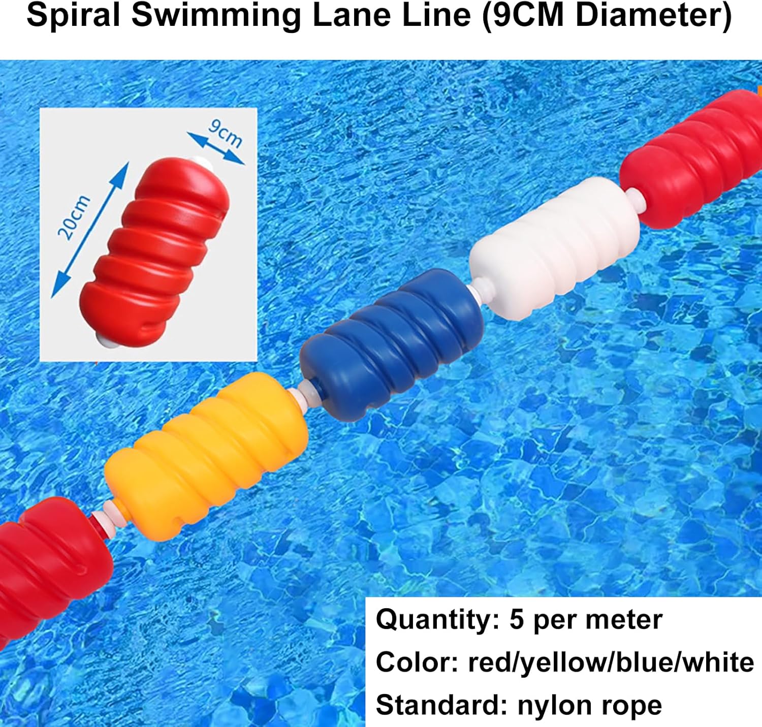 Cima di sicurezza: realizzata in corda di nylon e boa in polietilene, la boa è realizzata in polietilene molto resistente e leggera. Tuttavia, non si crepa né sbiadisce a causa dell'esposizione alla luce solare e all'acqua. Parametri del prodotto: la cima di sicurezza da 1 metro è composta da 5 boe, ciascuna lunga 20 cm e larga 9 cm. La cima può soddisfare le esigenze di voi e della piscina e le boe integrate possono essere spostate. Visibilità sicura ed efficace: le boe sono colorate e facili da individuare in acqua, distinguendo chiaramente le estremità profonde e basse della piscina e le corsie. Facile da installare: l'installazione è più semplice e comoda. È possibile installare la corda o l'occhiello e poi fissarli con ganci, il che è molto stabile. Ampia gamma di utilizzi: questa corda di sicurezza non è adatta solo per piscine e feste in piscina, ma può essere utilizzata anche per delimitare aree pericolose e trasformare il tuo spazio esterno in un'area di allenamento per le competizioni o in una corsia per il nuoto.
