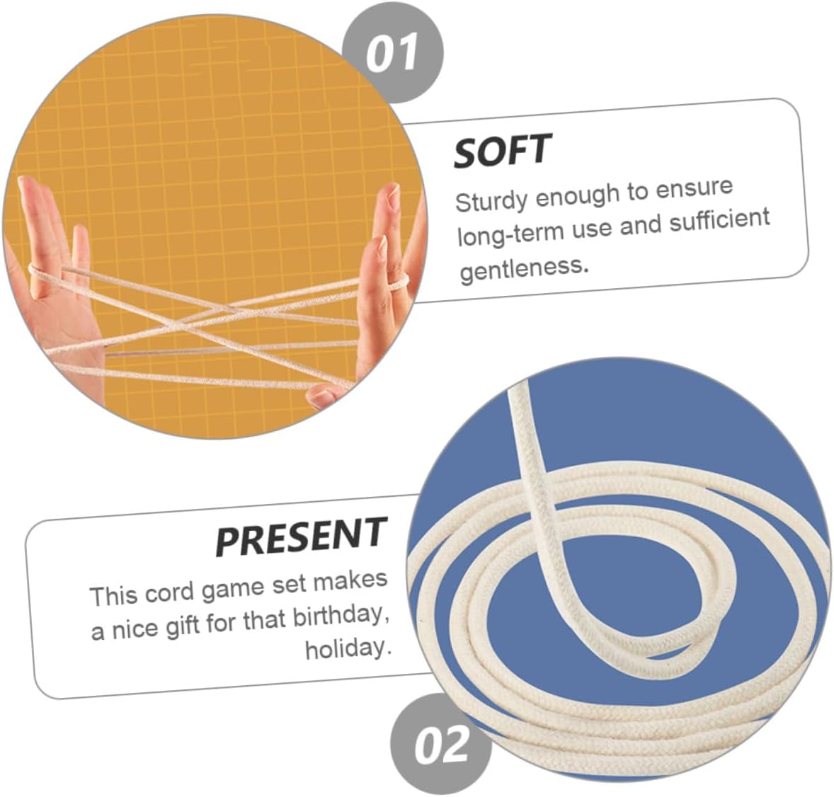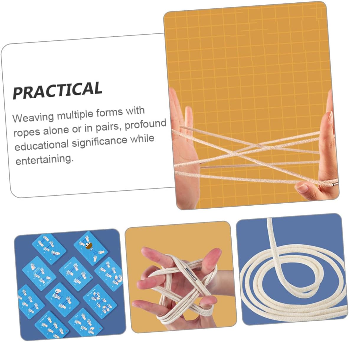 Con i nodi: tieni manine dei più intrattenute per ore, in pratica gli esempi all'interno e stupirai e familiari, tirando la Con corda elastica: ti porterà divertimento dell'infanzia, per famiglie, scuole e viaggi, giocattoli creativi Da tavolo per districare corde: abbastanza robusto da garantire un a lungo termine e sufficientemente delicato da garantire dita non si feriscano durante l'intrattenimento, giocattoli con corda elastica Tiro alla fune: corde essere usate come bomboniere, premi e riempitivi per calze, tenere persone divertite, tira una corda da guerra Con dita infilate: svilupperà capacità dei come la manualità cerebrale, la capacità afferrare, sviluppo intellettuale, la coordinazione sensoriale, , mano-occhio, l'elastico per saltare