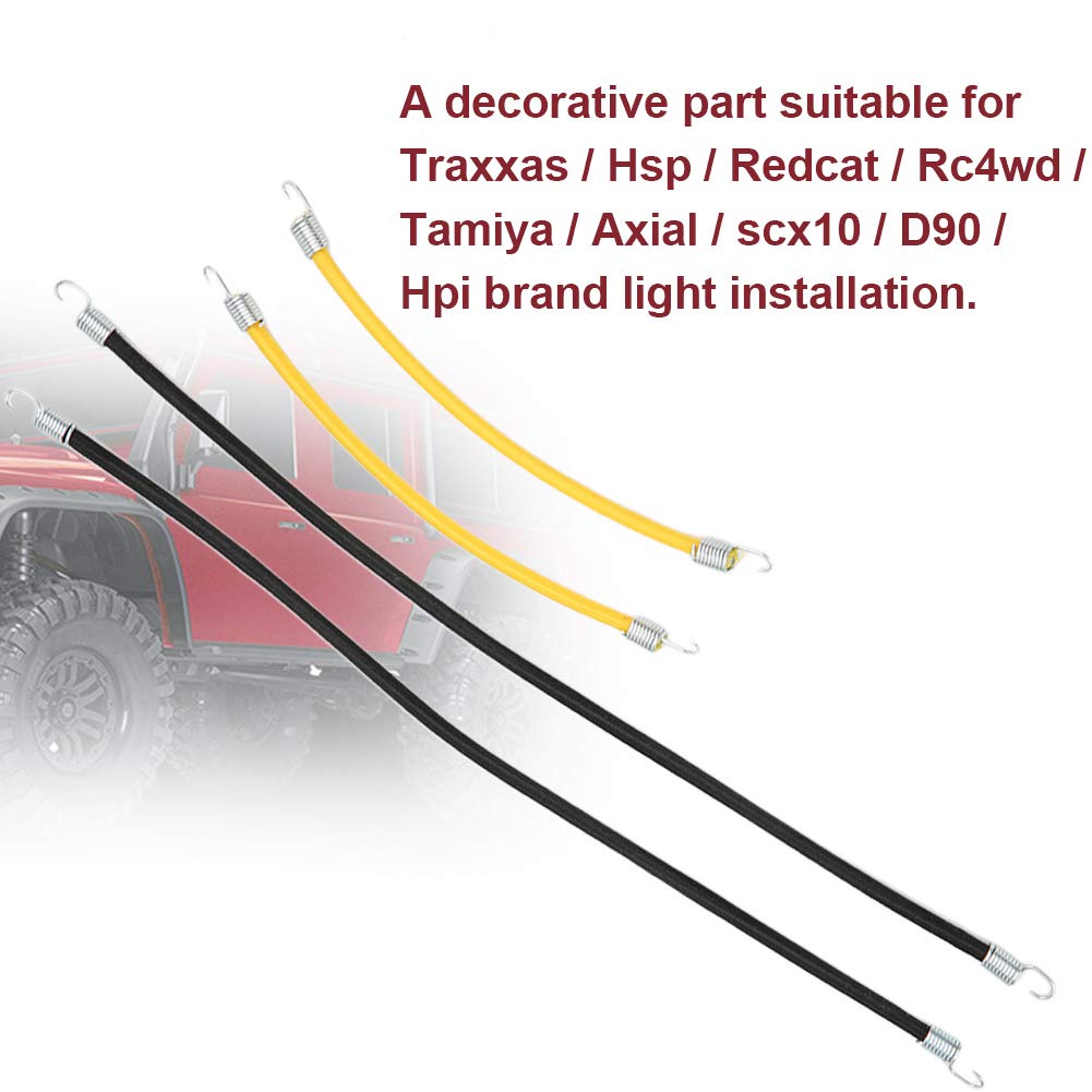 [Materiale di alta qualità] Realizzati con materiali premium Queste corde di portapacchi RC sono progettate per essere forti e durevoli pur rimanendo leggeri per una facile maneggevolezza. La costruzione robusta garantisce prestazioni durature anche in uso frequente. [Eccellente elastico] con un'elasticità superiore la corda nera può estendersi fino a 48 cm e la corda gialla fino a 21 cm fornendo flessibilità per varie applicazioni. Il design elastico consente il fissaggio sicuro degli articoli sulla tua auto RC. [Compatibilità universale] perfettamente adatto per una vasta gamma di marchi RC tra cui HSP Axial SCX10 D90 e HPI. Queste corde sono ideali per aggiungere elementi funzionali e decorativi ai veicoli a telecomando. [Design elegante] La combinazione di corde nere e gialle non solo migliora il fascino visivo della tua auto RC, ma aggiunge anche un look sportivo e robusto. Queste corde versatili sono perfette per la personalizzazione e la personalizzazione delle auto modello. [Easy Installation & Versatility] Progettato per l'installazione rapida e senza problemi che queste corde possono contenere vari piccoli articoli in modo sicuro. La loro tenacia e adattabilità li rendono perfetti per molteplici usi dai portapacchi agli accenti decorativi sulla tua auto RC.