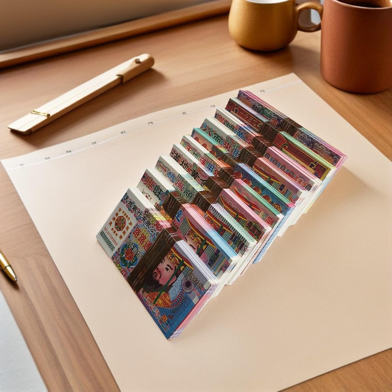 Denaro - banconota - il denaro ancestrale ai tuoi antenati in modo che abbiano un rapporto migliore con tutti gli antenati. È uno strumento che ci permette di prenderci cura dei nostri antenati e in cambio loro si prendono cura di noi. È naturale che le persone cerchino altri che rappresentino i loro migliori interessi. portarti. Banconota – questa è un'usanza tradizionale di tutto il popolo cinese e in questo modo puoi benedire tutti i parenti e gli amici con la pace. Denaro sacrificale - denaro degli antenati da bruciare - per i funerali, il giorno della pulizia delle tombe, il compleanno degli antenati, la festa dei fantasmi affamati (15 luglio), il giorno dei defunti, la festa di Qingming (5 aprile). Bruciare denaro ancestrale: la cultura tradizionale per augurare saggezza, navigazione tranquilla, salute, ricchezza e prosperità. Accessori sacrificali - Carta per idoli cinesi - Queste carte sono molto colorate e luminose. adatto per la festa ancestrale.