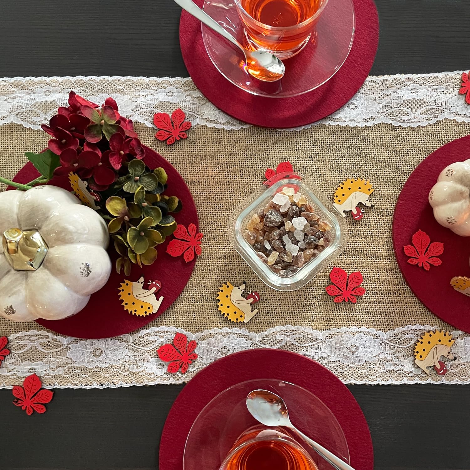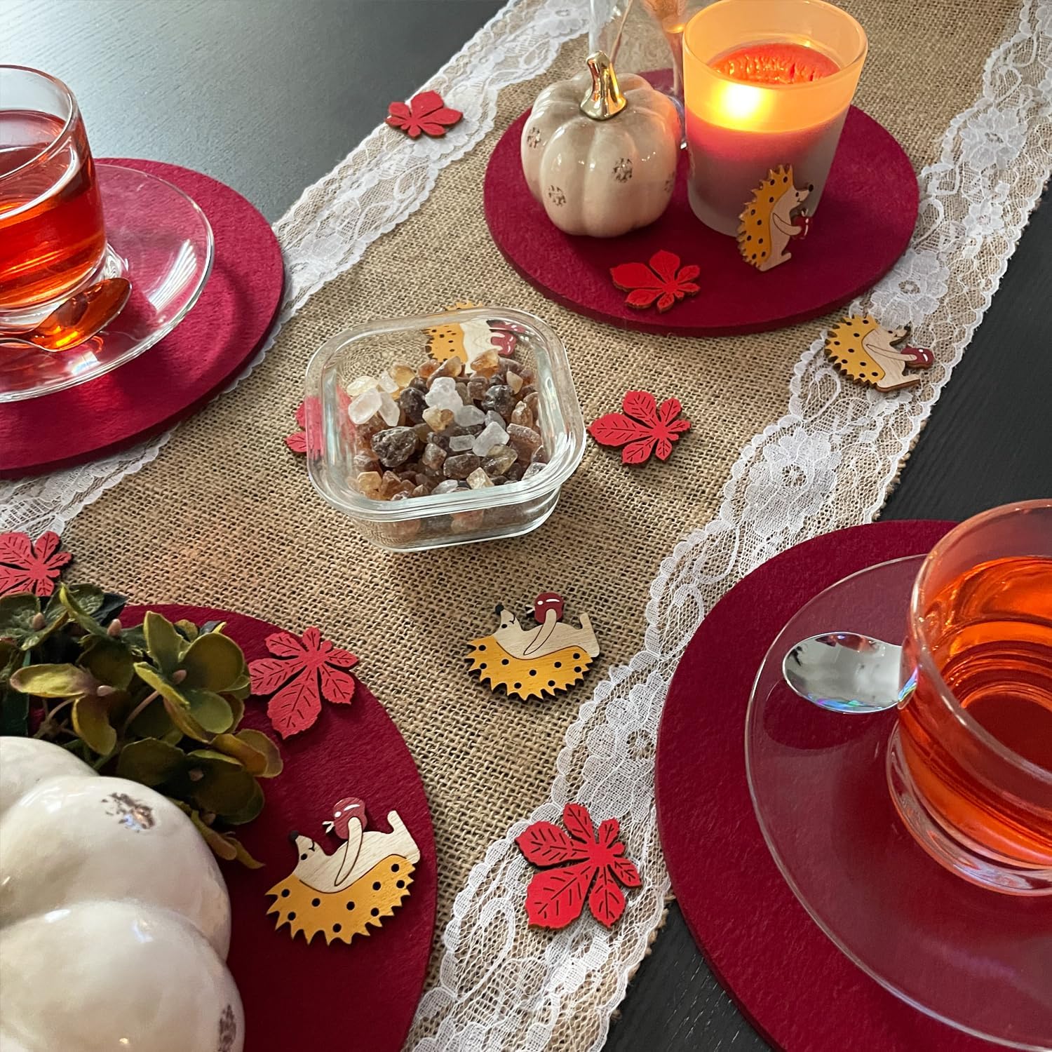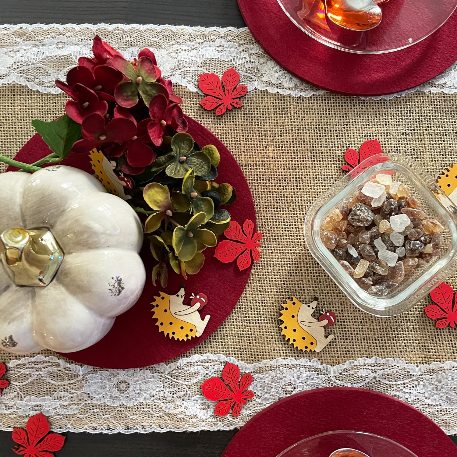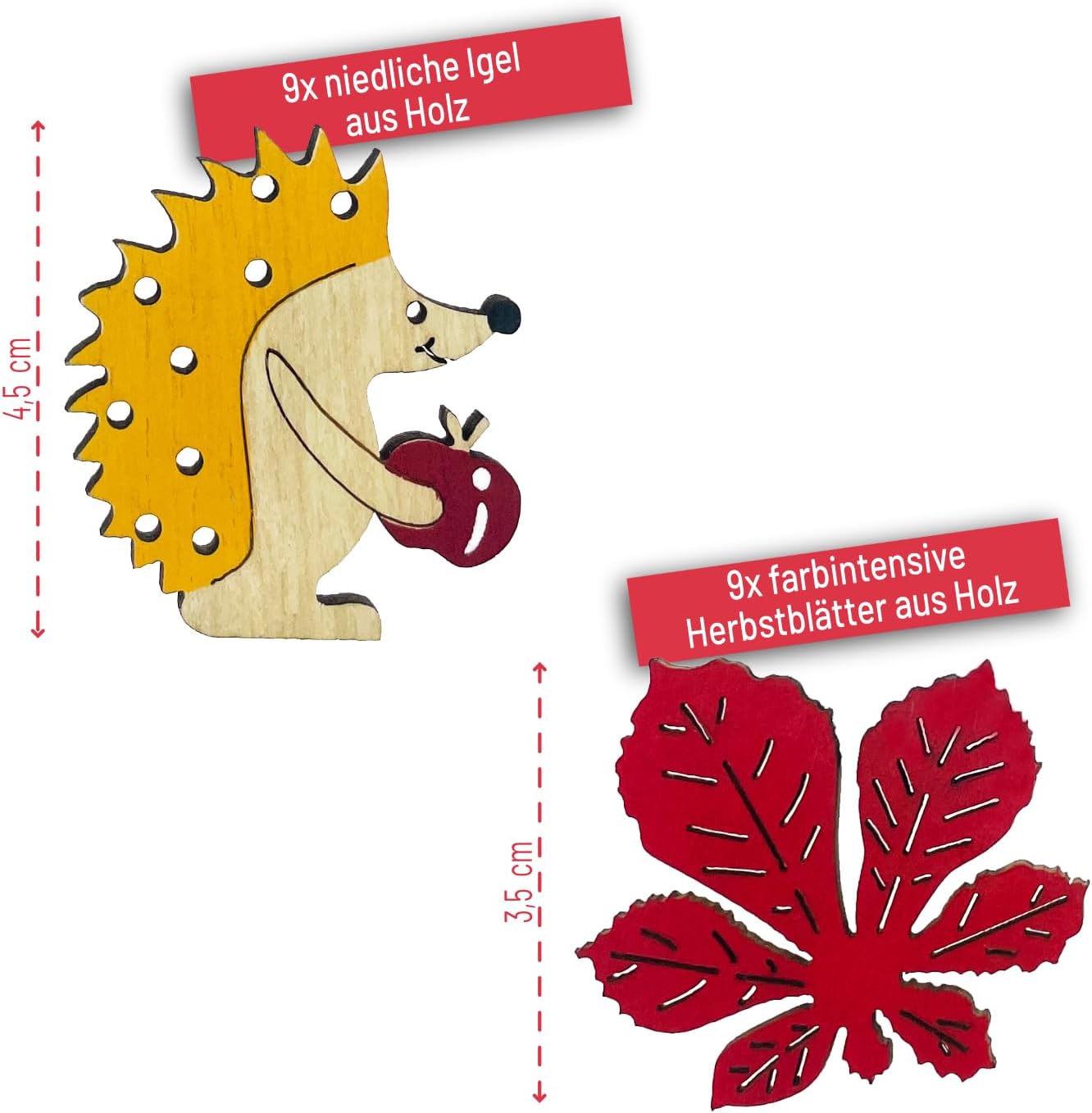 Contenuto: questo colorato set di coriandoli in legno per l'autunno è composto da 18 figure disegnate con cura, tra cui 9 graziosi ricci e 9 delicate foglie di acero. Perfetto per la tua decorazione creativa fai-da-te per evocare un'atmosfera autunnale in ogni casa! Colori vivaci: i ricci presentano legno naturale e toni gialli, sormontati da una mela rossa. Le foglie di acero rosso completano perfettamente i colori autunnali e danno vita alle decorazioni della tua tavola. Materiale: legno Grandi coriandoli per una grande gioia: con una dimensione di 4,5 cm per i ricci e 3,5 cm per le foglie d'acero, le figure sono perfettamente proporzionate per adattarsi a diverse idee decorative. Usi versatili: ideale come decorazione creativa per la tavola, per il fai da te o come punto culminante nella tua decorazione fai-da-te. Che si tratti di una festa autunnale, di una cena accogliente o di una decorazione stagionale, le figure in legno si adattano armoniosamente a qualsiasi arredamento e creano un'atmosfera calda e invitante.