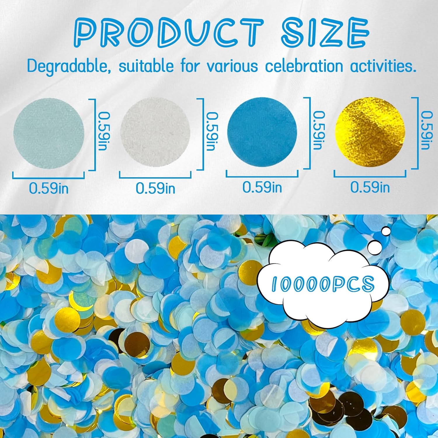 Ecologici e belli: i nostri coriandoli biodegradabili sono realizzati con materiali ecologici, perfetti per matrimoni e feste senza danneggiare l'ambiente. Include 10.000 pezzi per un'ampia decorazione. Splendido mix di colori: presenta un'abbagliante miscela blu dorata di coriandoli rotondi, aggiungendo un tocco di lusso alla tua tavola di nozze. Ideale per feste eleganti. Perfetti per i matrimoni: eleva il tuo grande giorno con coriandoli biodegradabili per matrimoni, progettati per migliorare la decorazione della tavola pur essendo gentili con il pianeta. Quantità generosa: ogni confezione contiene 80 g di coriandoli biodegradabili di alta qualità, assicurandoti di avere un sacco per centrotavola, servizi fotografici e lanci in corridoio. Versatili e sicuri: questi coriandoli rotondi sono leggeri, facili da spargere e si dissolvono naturalmente, rendendoli ideali per eventi interni ed esterni.
