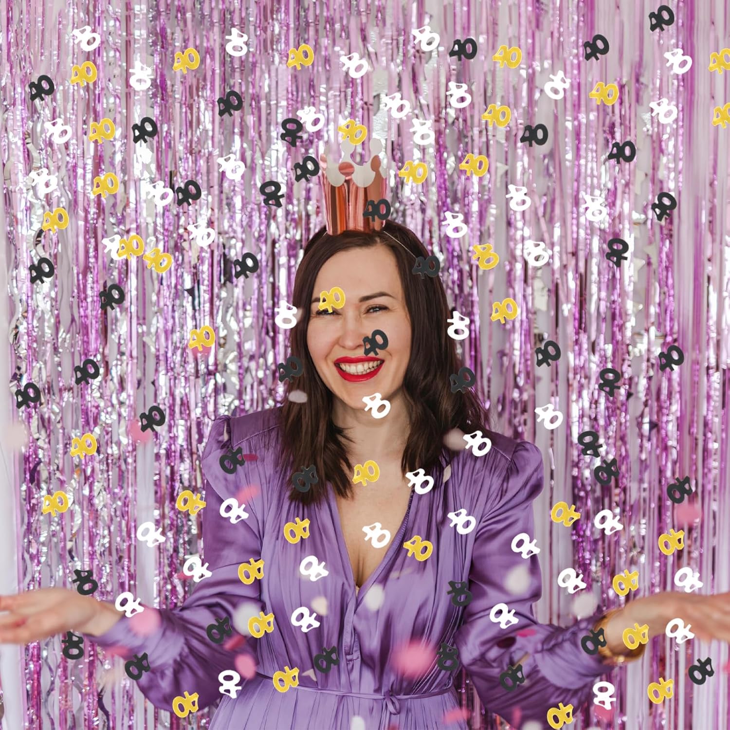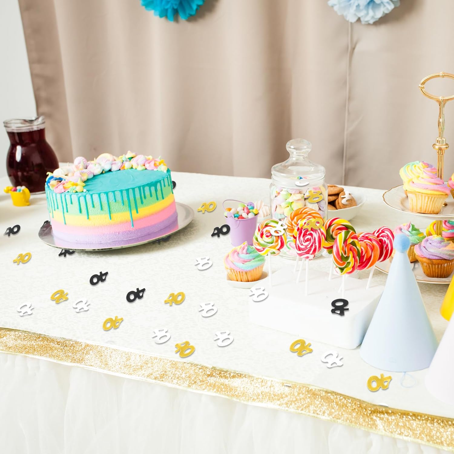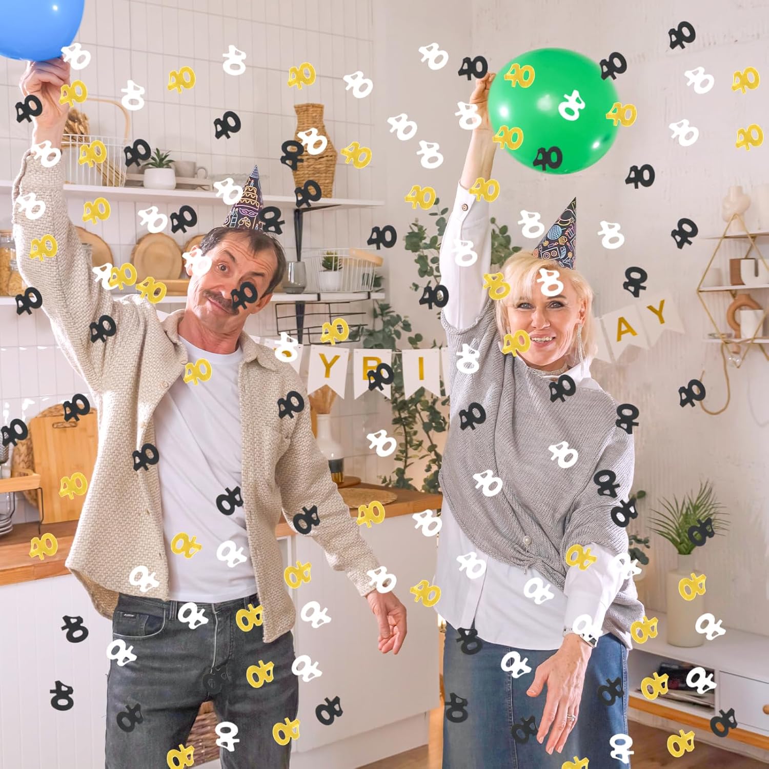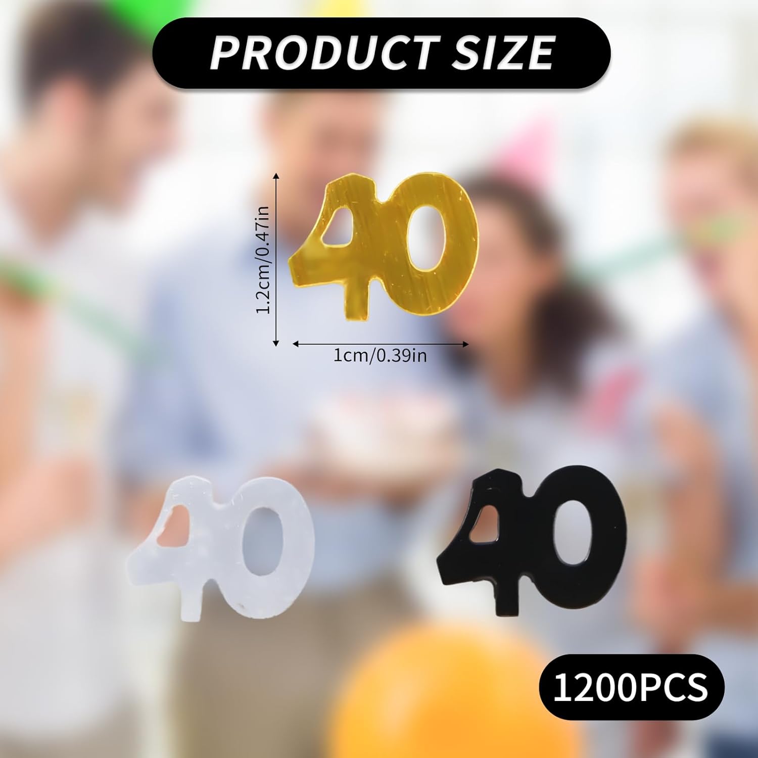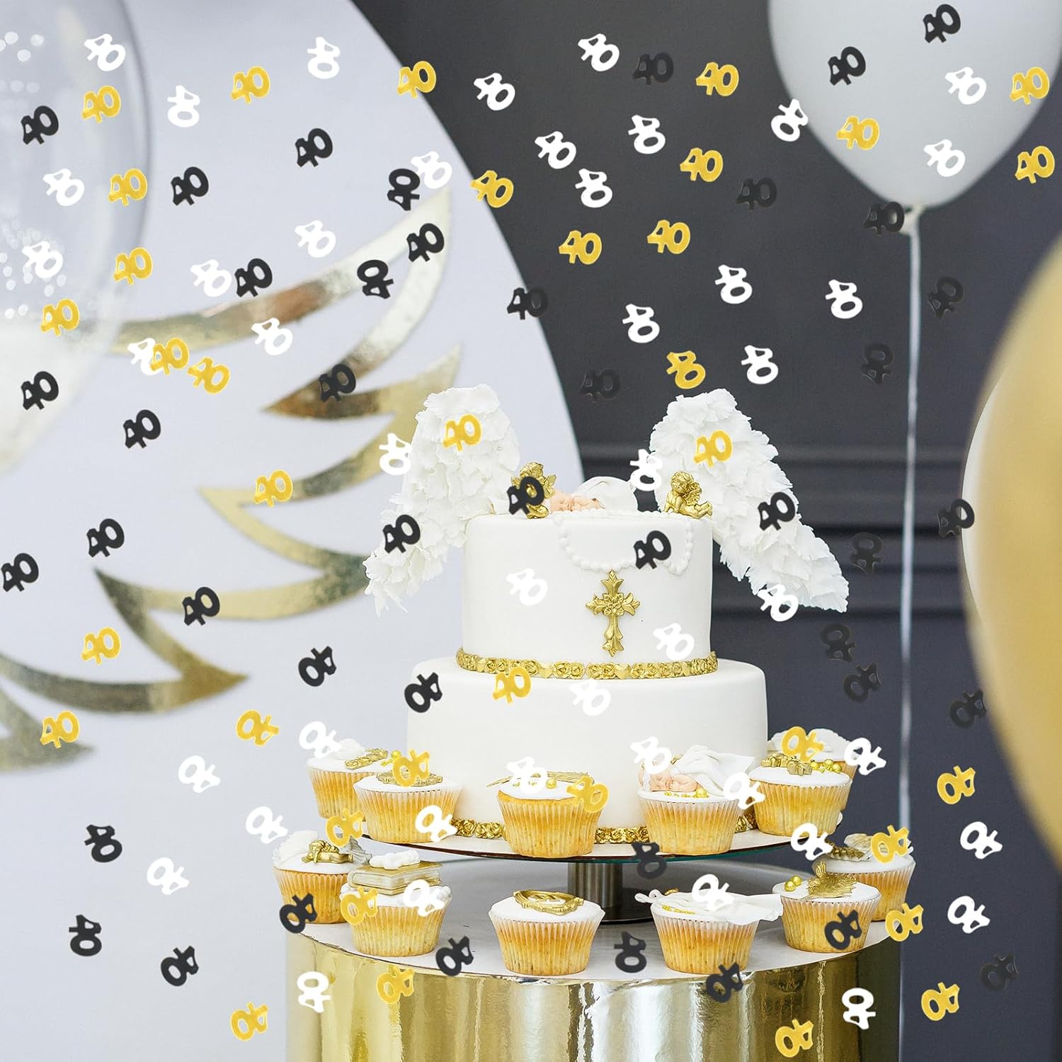Coriandoli di compleanno: festeggia con stile con il nostro set di 1200 vivaci coriandoli di compleanno. Con una varietà di disegni e colori, questi coriandoli sono perfetti per valorizzare la decorazione della tua festa di compleanno. Celebrazione del 40° compleanno: migliora la tua festa del 40° compleanno con i nostri lussuosi coriandoli neri e dorati. Realizzata con materiali durevoli e di alta qualità, questa elegante decorazione aggiunge un tocco di raffinatezza e stravaganza al tuo giorno speciale. CONFETTI DECORATIVI VERSATILI: questi coriandoli versatili sono perfetti per decorazioni da tavola, confezioni regalo, artigianato e altro ancora. Cospargilo ovunque per creare un'atmosfera festosa o usa il nastro adesivo per un'esposizione divertente su pareti e finestre. La sicurezza prima di tutto: tieni presente che i nostri coriandoli sono piccoli e possono rappresentare un rischio di soffocamento. Tenere fuori dalla portata dei bambini sotto i 6 anni. Si consiglia la supervisione di un adulto per un utilizzo sicuro durante le attività di decorazione. Soddisfazione garantita: mettiamo al primo posto la tua felicità. Se non sei completamente soddisfatto del tuo acquisto, contattaci per un rimborso completo o una sostituzione senza problemi. La vostra soddisfazione è la nostra priorità.
