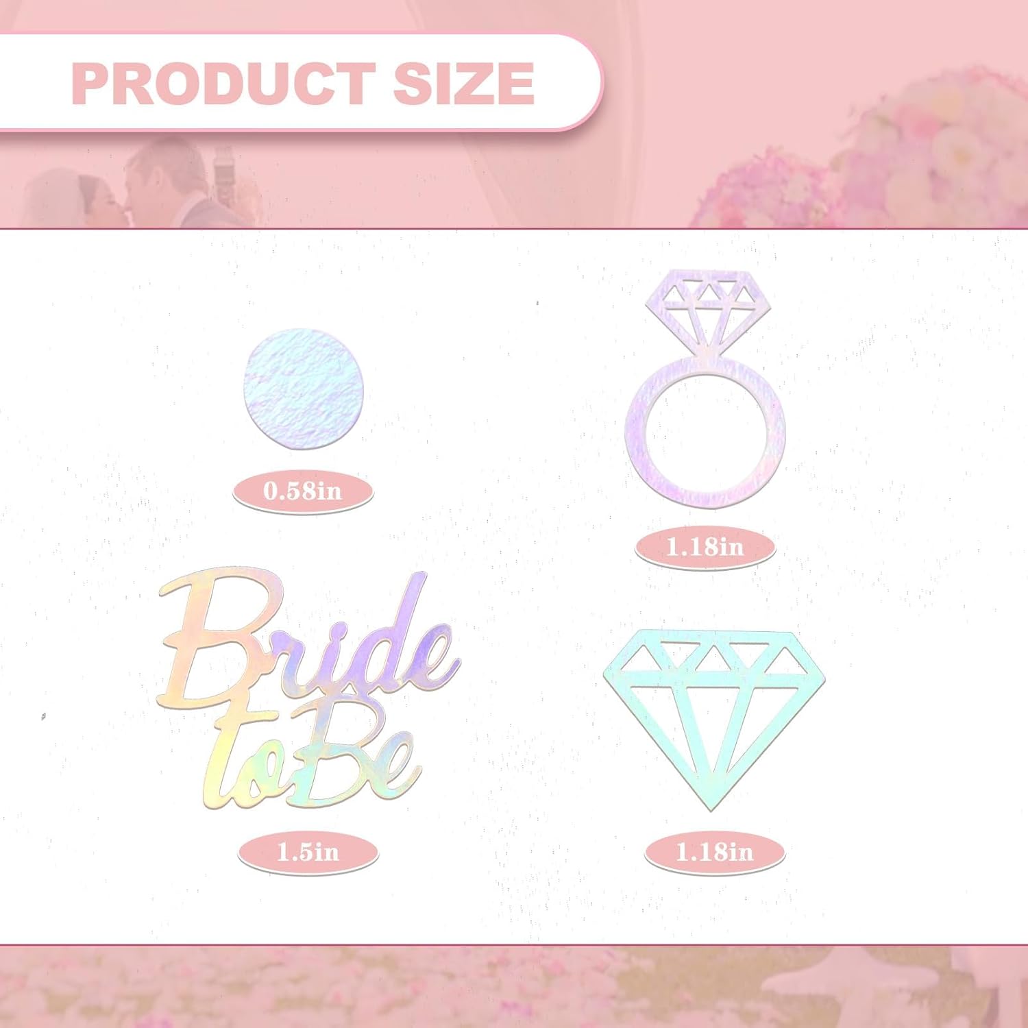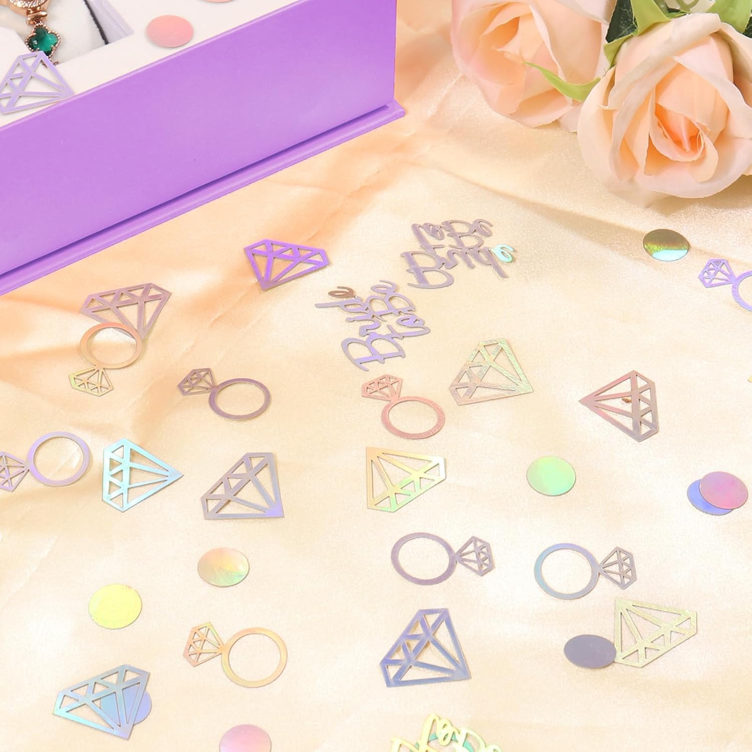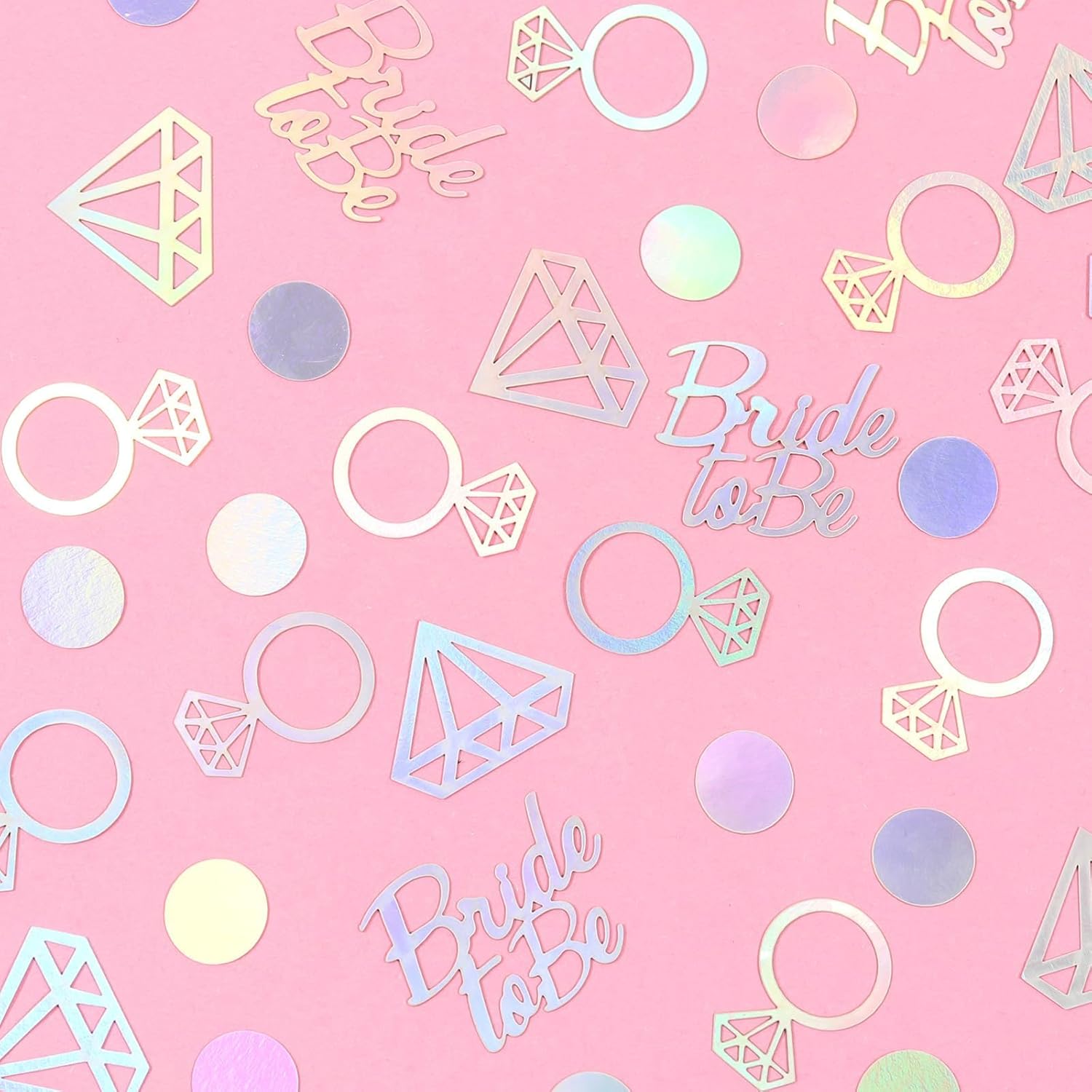 Elegante design iridescente: aggiungi brillantezza alla tua celebrazione con coriandoli di carta iridescenti con futura sposa, diamanti, anelli e punti - ideali per feste in discoteca, addio al nubilato, fidanzamenti e feste delle damigelle d'onore Decorazione versatile: perfetti per feste di fidanzamento, addio al nubilato e feste delle damigelle, questi sorprendenti coriandoli migliorano ogni evento Decorazione della tavola semplice: distribuisci queste forme trendy sui tavoli per una decorazione rapida e spettacolare per stupire i tuoi ospiti a qualsiasi fidanzamento o addio al nubilato Materiale di alta qualità: realizzato in materiale iridescente di alta qualità cartoncino, questi coriandoli sono resistenti, leggeri e perfetti per lasciare un'impressione bella e duratura Set da 100 pezzi: include un set da 100 pezzi di coriandoli che forniscono un'ampia copertura per tavoli, sacchetti regalo o progetti fai-da-te, essenziali per le decorazioni delle feste delle damigelle d'onore