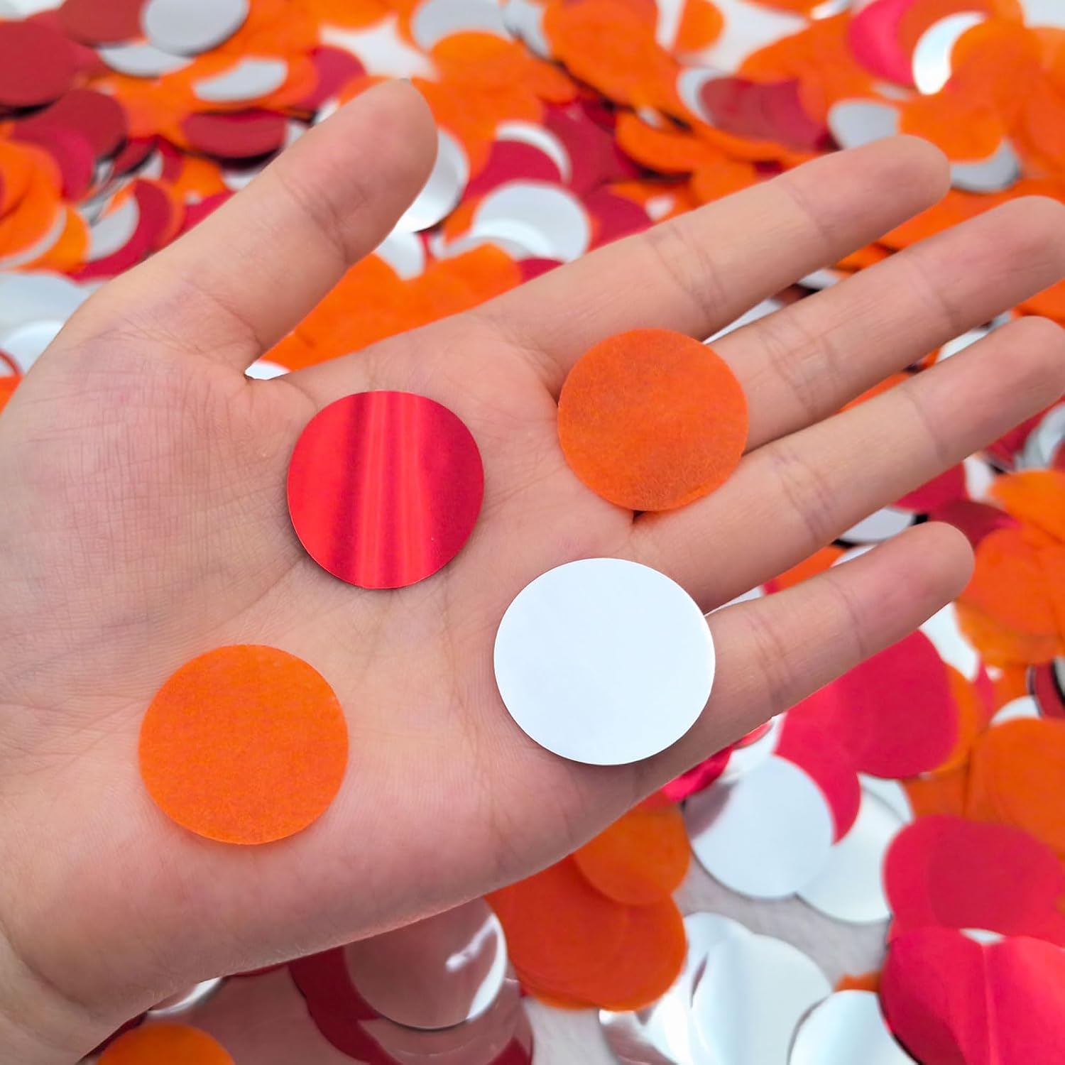 Celebrazione vibrante: preparati a migliorare i tuoi eventi con 5000 fogli di coriandoli di carta colorati. Ogni cerchio da 1,6" di diametro aggiunge un tocco festoso, perfetto per decorazioni autunnali, feste di compleanno, matrimoni o qualsiasi altra celebrazione 🌈Divertimento multifunzionale: questi versatili coriandoli non sono solo per i tavoli. Usali per cospargere pavimenti, letti o anche palloncini. Crea un momento indimenticabile alla tua festa con adorabili coriandoli che riuniranno tutti in gioia! Pulizia senza sforzo: dì addio alle preoccupazioni di pulizia! I nostri coriandoli nuziali sono semplicissimi da usare: basta lanciarli in aria e guardare la magia accadere. Quando il divertimento inizia è finita, una rapida spazzata o un aspirapolvere rendono la pulizia un gioco da ragazzi Sorprendi i tuoi ospiti: stupisci i tuoi amici e la tua famiglia con i nostri bellissimi coriandoli da tavola arancione-rosso-argento Perfetti per celebrare traguardi importanti, questa splendida decorazione lascerà a bocca aperta i tuoi ospiti e porterà sorrisi ovunque. Infinite possibilità: ravviva ogni occasione con i nostri coriandoli Gender Reveal.