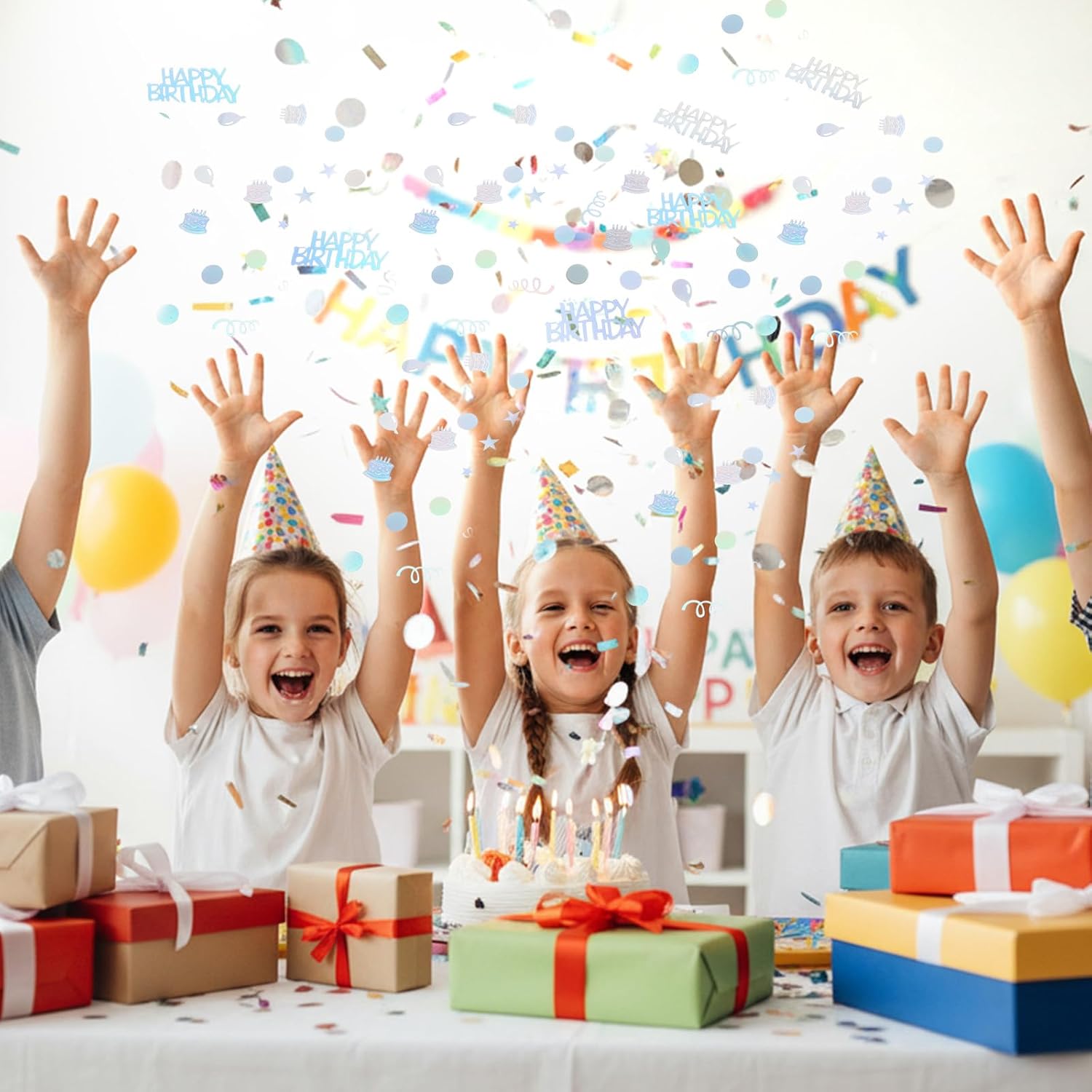 Contenuto della confezione: Riceverai due confezioni di coriandoli di compleanno color arcobaleno in diverse forme. Questa quantità generosa è perfetta per decorare grandi tavoli da festa o molteplici progetti fai-da-te Colori arcobaleno: questi coriandoli per compleanno presentano uno splendido design arcobaleno, i coriandoli da tavolo aggiungono un tocco romantico e sognante a qualsiasi festa di compleanno Forme diverse: oltre alle tradizionali forme di lettere, questi coriandoli per feste sono disponibili anche in una varietà di forme divertenti, come stelle, lune e cerchi, perfetti per qualsiasi festa a tema di compleanno Facile da pulire: questi coriandoli pastello sono leggeri e facili da galleggiare, ma anche facili da pulire. Basta spazzare i coriandoli glitter dopo la festa, decorazioni da tavola per la festa di compleanno, risparmiando tempo e fatica. Versatili: questi coriandoli decorativi per l'aula sono adatti non solo per feste di compleanno, ma anche per matrimoni, lauree, vacanze e altre occasioni. La versatilità dei coriandoli Happy Birthday li rende una scelta perfetta per le decorazioni delle feste