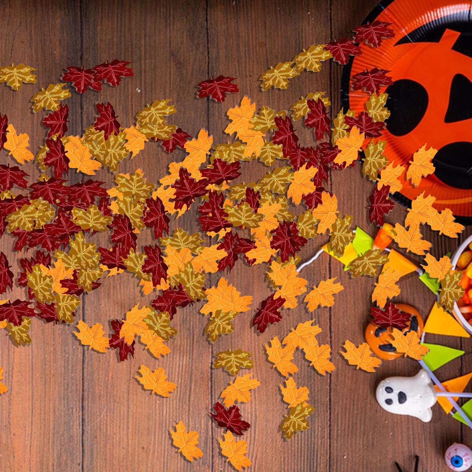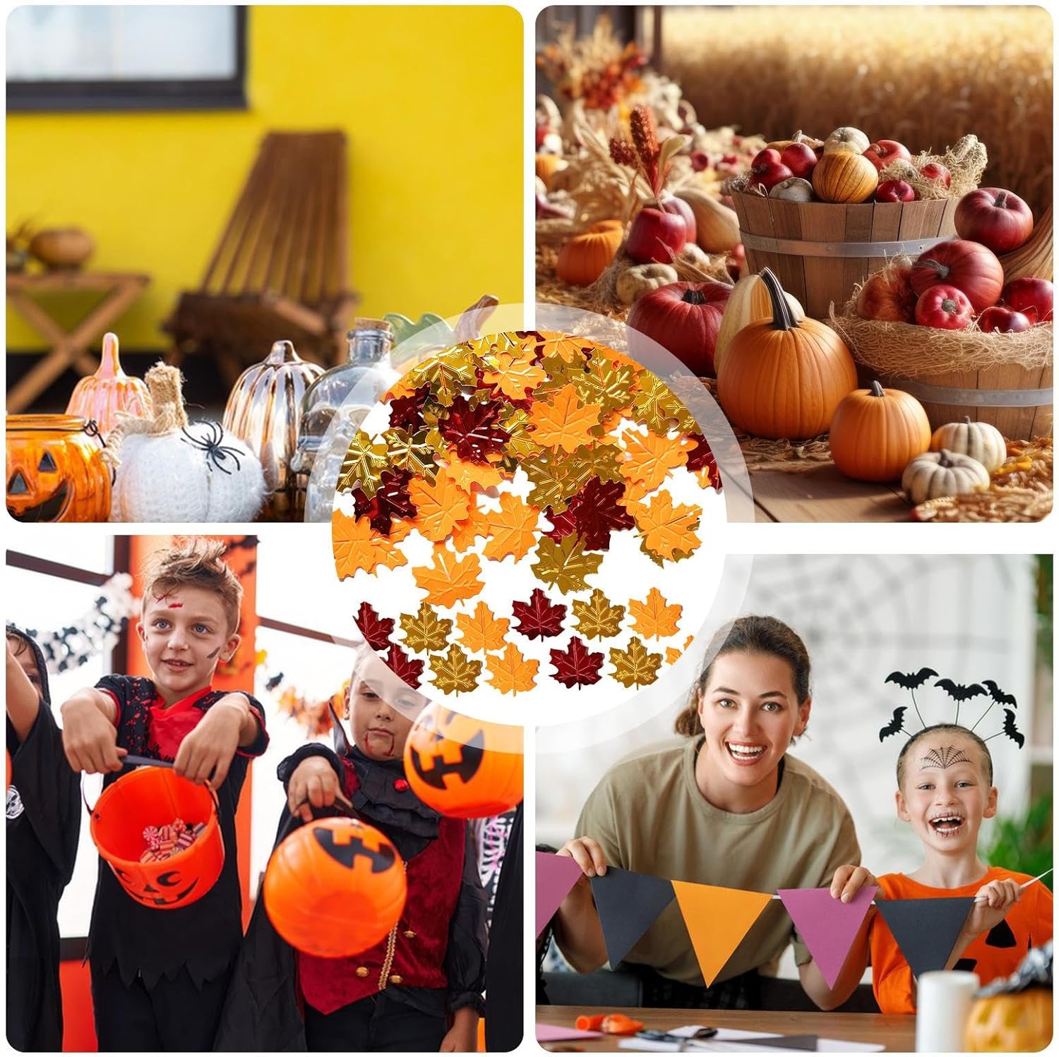 DECORAZIONI ACCATTIVANTI: Realizzati in PVC per resistenza e lucentezza, questi graziosi e accattivanti coriandoli con foglie autunnali sono perfetti per eventi a tema, aggiungendo un tocco festoso a ogni occasione. Design classico del Ringraziamento: dai un tocco classico alla tua celebrazione del Ringraziamento utilizzando coriandoli con foglie autunnali. Caratterizzato da elementi del Ringraziamento in oro, giallo e arancione, esalta l'atmosfera festosa. Festeggia l'autunno: i coriandoli con foglie autunnali sono un'aggiunta perfetta alle decorazioni della tua festa, creando centrotavola colorati per un'atmosfera festosa e . Ampiamente usato: un'aggiunta perfetta ai tuoi must-have creativi, usa questi coriandoli con foglie autunnali per decorare cartoline di Halloween, album di ritagli e altro ancora. Versatile per riempire scatole di scelta, bottiglie di vetro e inviti. Buona scelta per i regali: una scelta saggia per la famiglia e gli amici durante le festività natalizie; Le decorazioni di coriandoli della festa di carnevale del Ringraziamento aggiungono un tocco festoso.