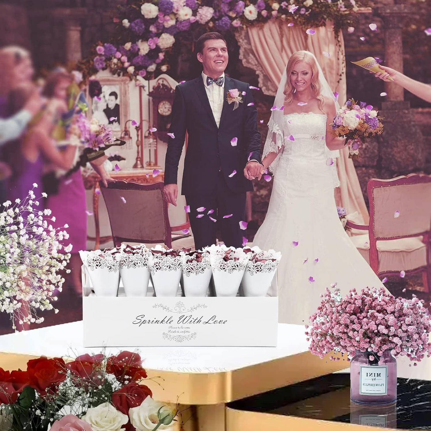 Confezione: il set di coriandoli nuziali Mbsomnus contiene 30 coni di rose di carta, petali di rosa essiccati da 150 g e un porta coni di coriandoli a 30 fori. (Nota: inviamo le materie prime, vi servirà realizzare i coriandoli e montare il supporto). I coriandoli nuziali Mbsomnus sono realizzati con petali di rosa essiccati naturali e biodegradabili al 100%, attraverso l'avanzata tecnologia di tostatura elettrica e il confezionamento sottovuoto, possono in gran parte mantenere la loro interezza, colore brillante e fragranza floreale di lunga durata! Abbiamo preparato una quantità super grande da 150 g, sufficiente per riempire 30 coni di carta, permettendoti di trasmettere tutta la tua benedizione agli sposi con i petali! Il cono di carta Mbsomnus è realizzato in cartone spesso, non facile da rompere, ben modellato! La parte superiore è progettata con un motivo a rose scavate unico e squisito, che mostra l'atmosfera romantica e piacevole! Il cono di carta rosa Mbsomnus viene fornito con nastro biadesivo sul lato, quindi non è necessario preparare nastro aggiuntivo, rendendolo più facile e veloce da usare! Perfetto per coriandoli, petali di fiori, caramelle, cioccolato, ecc. Il porta coni per coriandoli nuziali Mbsomnus contiene 30 fori, che possono ospitare 30 coni di carta per gli ospiti. Con i 2 strati superiore e inferiore, il supporto per cono di coriandoli Mbsomnus può fissare notevolmente le estremità superiore e inferiore del cono di carta per evitare che cada. Dimensioni: 36x21x15 cm. Il set di coriandoli nuziali Mbsomnus può essere ampiamente applicato a varie feste come matrimoni, anniversari, commemorazioni di anniversari, nonché ristoranti, feste aziendali, registrazioni, decorazioni di torte, decorazioni di sfondi fotografici, ecc., permettendoti di trascorrere la benedizione sincera!