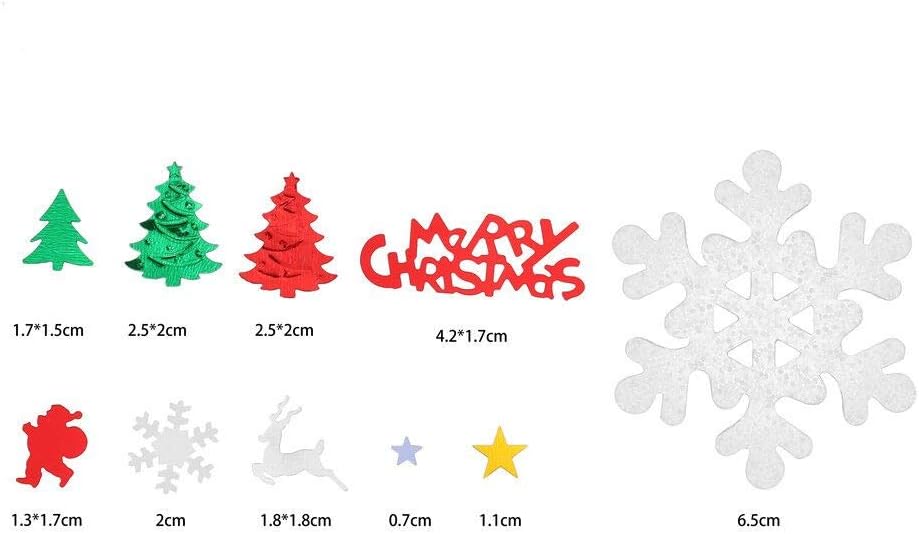 Materiale: queste paillettes natalizie sono realizzate in PVC, resistenti e riutilizzabili, creando scintillii per la tavola di Natale, confezioni regalo e decorazioni per cartoline. Dimensioni: questi coriandoli natalizi misurano circa 0,7 cm/6,5 cm/2,56 pollici, dimensioni assortite. Confezione: coriandoli glitter natalizi da 100 g, questi adorabili coriandoli perfetti per le decorazioni natalizie. Disegni: 10 disegni diversi assortiti: albero di Natale, fiocchi di neve, Babbo Natale, renne, stelle, coriandoli molto lucenti e adorabili per la decorazione della tavola di Natale. Suggerimenti caldi: piccoli oggetti possono causare la deglutizione per errore. Si prega di tenere i coriandoli lontano dalla portata dei bambini. Il suggerimento è che i bambini sotto i sei anni non dovrebbero essere autorizzati a usarli. Da utilizzare sotto la supervisione di un adulto.