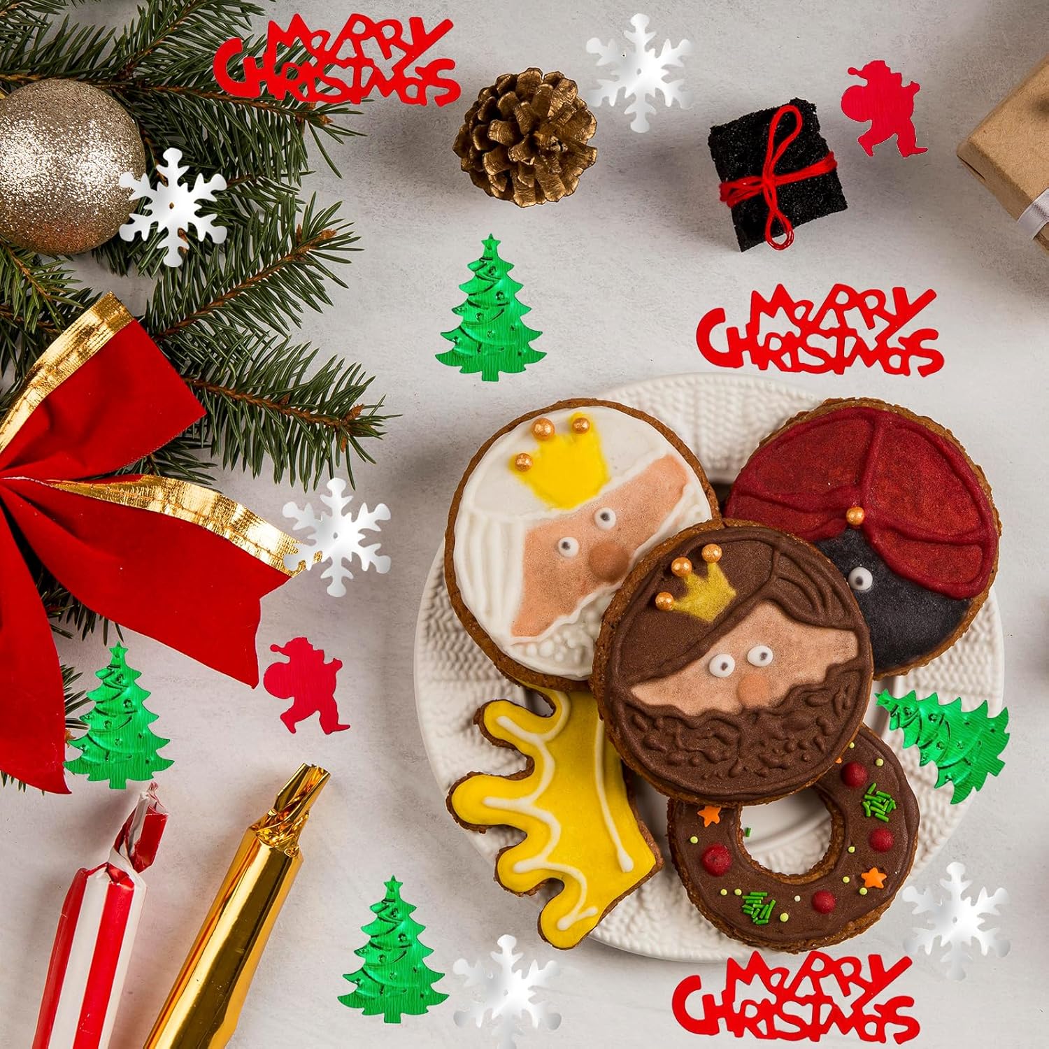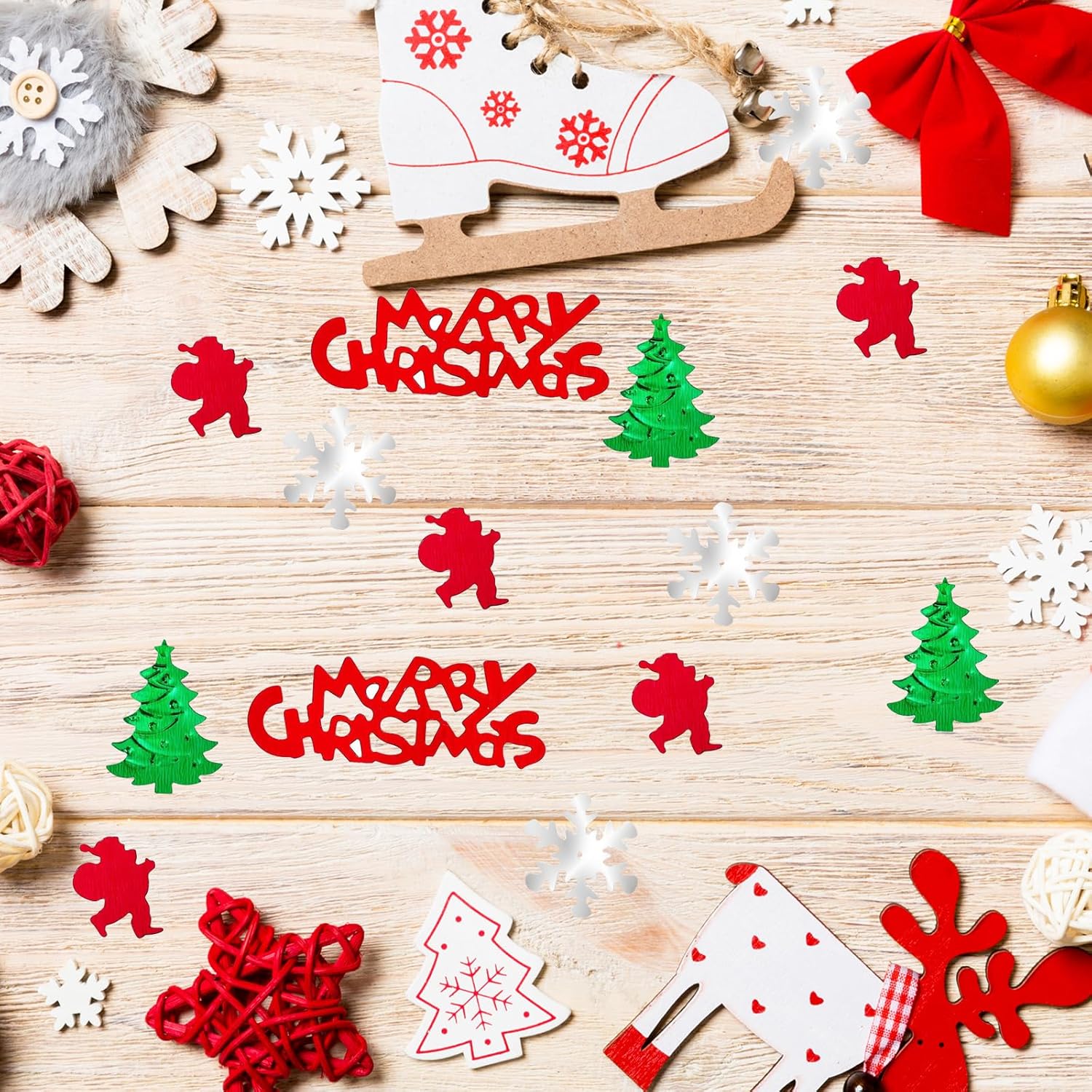 Mix di coriandoli natalizi festivi: festeggia la stagione con un emozionante mix di lettere rosse di "Buon Natale", Babbo Natale, alberi colorati e fiocchi di neve lucenti. Perfetto per esporre cartoline di Natale, inviti o sacchetti regalo con giocosa eleganza. Decorazioni durevoli e riutilizzabili: i nostri coriandoli natalizi sono realizzati con materiali di alta qualità, garantendo durata e brillantezza festosa. Progettate per un tema natalizio tradizionale, queste deliziose decorazioni portano gioia a qualsiasi festa di Natale Decorazioni natalizie versatili: elevano i tuoi raduni natalizi Usa questi coriandoli per sorprendere i tuoi ospiti in biglietti, sacchetti regalo o come decorazione da tavola. Diventa creativo facendoli aderire ai vestiti con la colla per tessuti per un tocco divertente e festoso. GRANDE DIVERTIMENTO: Ogni confezione contiene circa 2000 vivaci coriandoli da 45 grammi, con una varietà di disegni festivi. Ideale per feste di Natale, artigianato o eventi festivi, diffondi gioia e brillantezza ovunque. Promemoria per la sicurezza dei bambini: tieni presente che la nostra carta colorata contiene piccoli pezzi. Tenere fuori dalla portata dei bambini sotto i 6 anni. Raccomandiamo la supervisione di un adulto per garantire un'esperienza di decorazione sicura e piacevole durante le festività natalizie
