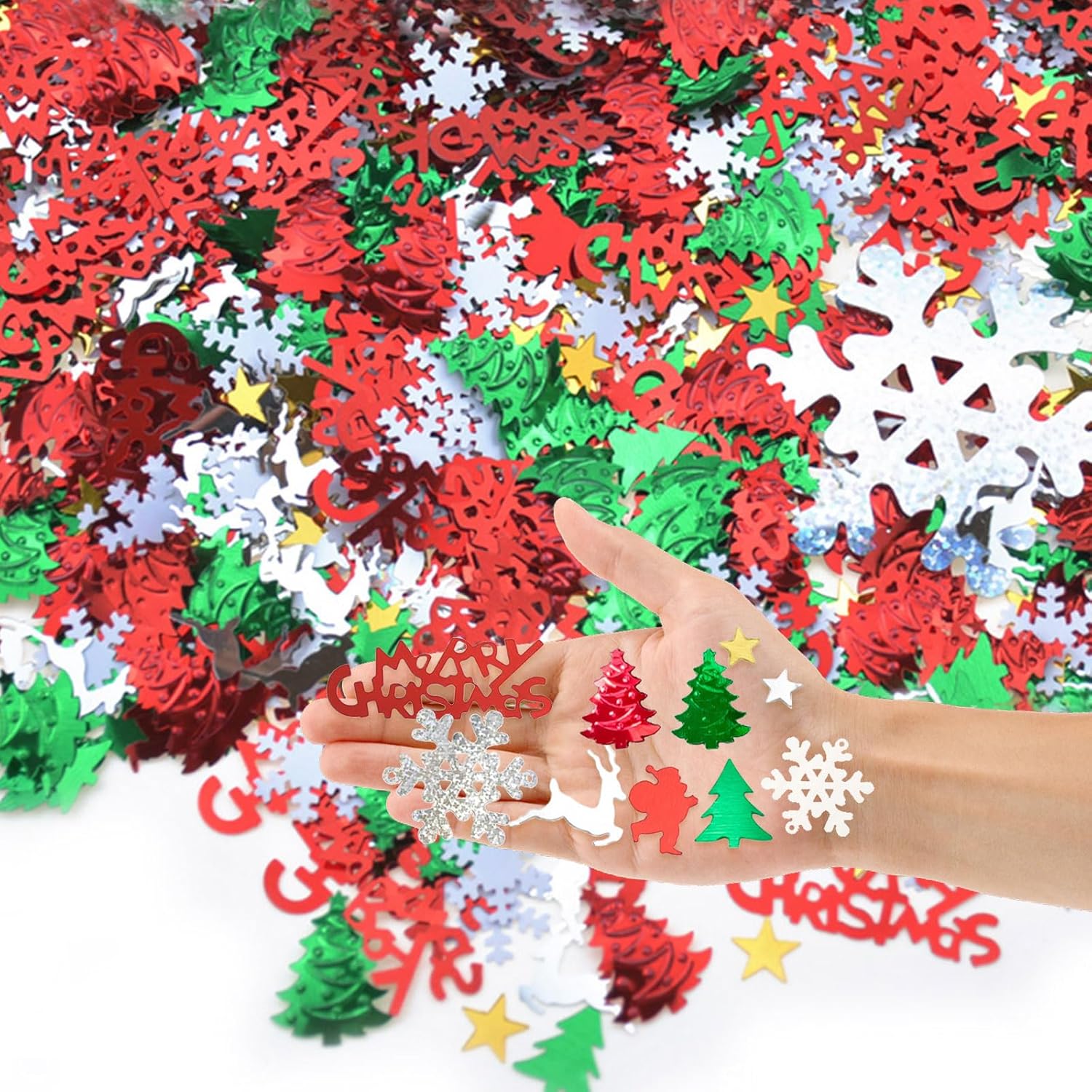 Contenuto della confezione: riceverete ca. 500 pezzi di coriandoli da tavola glitterati, 15 g. Contiene lettere di buon Natale, albero di Natale, Babbo Natale, alci, stelle e altri elementi classici. Un'ottima combinazione per una festa di compleanno di Natale. Materiale premium: questa decorazione per la tavola di Natale di compleanno è realizzata in PVC, ideale come decorazione per la tavola per feste di Natale, ecc. ⭐ 【Usa la tua immaginazione】: è ideale anche per tavola, torte e piccoli oggetti, albero di Natale, decorazioni per sacchetti regalo e così via. Non limitarti a questi luoghi, lascia correre la tua immaginazione e rendili più utili. Decorazioni natalizie: i coriandoli colorati non sono adatti solo per decorazioni di compleanno per ragazzi, ragazze, uomini e donne, ma anche per decorazioni da tavola, sacchetti regalo, artigianato, decorazioni per biglietti di auguri, decorazioni per confezioni regalo e altre decorazioni. Design carino e unico: donano alla tua festa un'atmosfera romantica. I nostri coriandoli natalizi realizzati con una combinazione di colori classici come rosso, verde, giallo e argento saranno una bellissima aggiunta alla decorazione della tua festa invernale o alla decorazione natalizia.