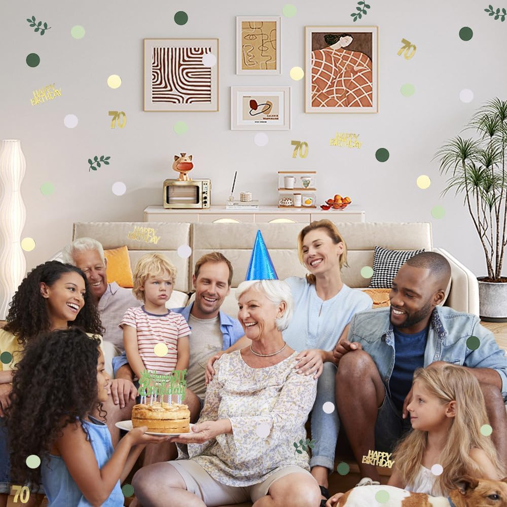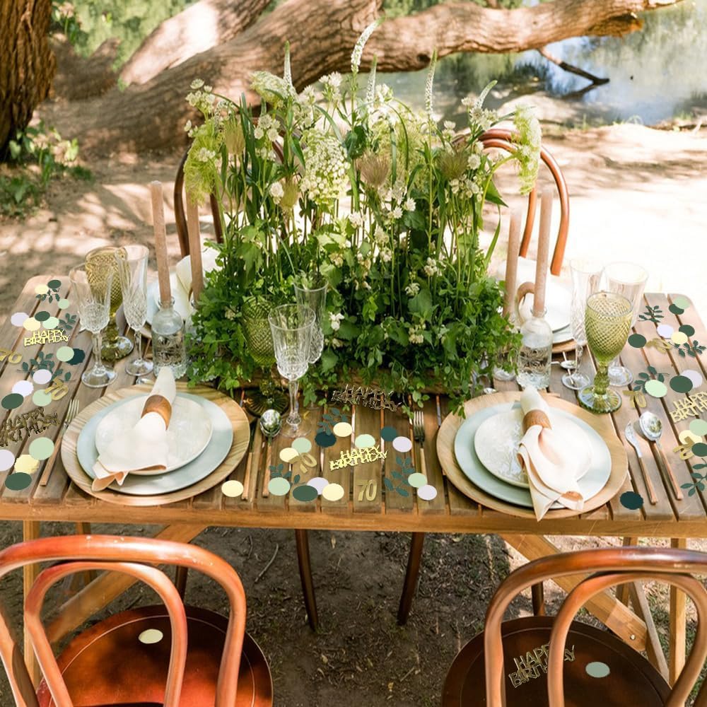 Coriandoli verdi per il 70° compleanno - Decorazioni da tavola per il 70° compleanno - Coriandoli per torta di compleanno - Coriandoli in lamina verde oro - Decorazione per il 70° compleanno
