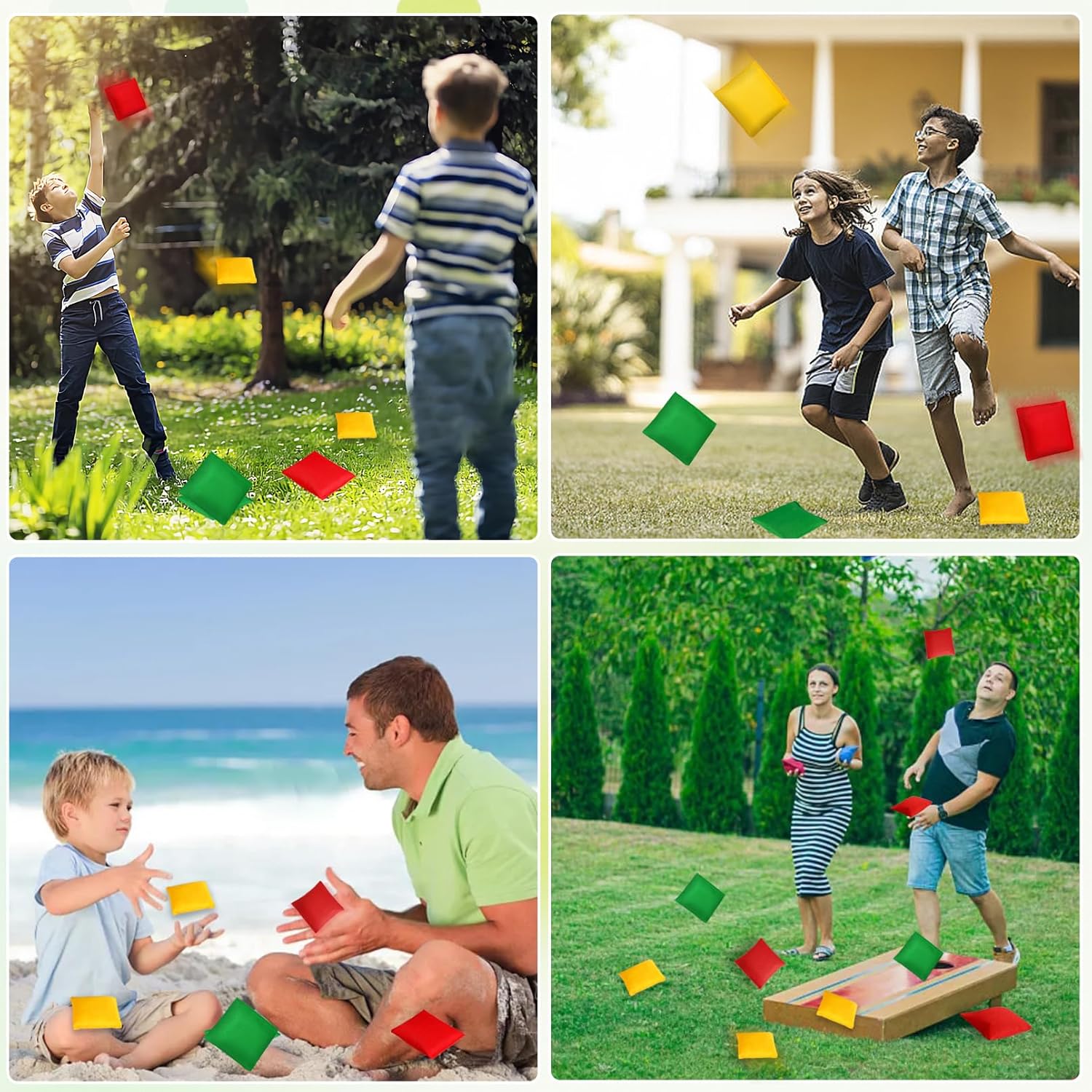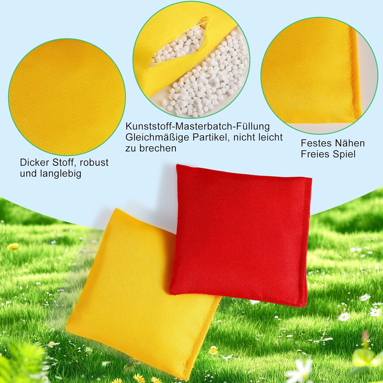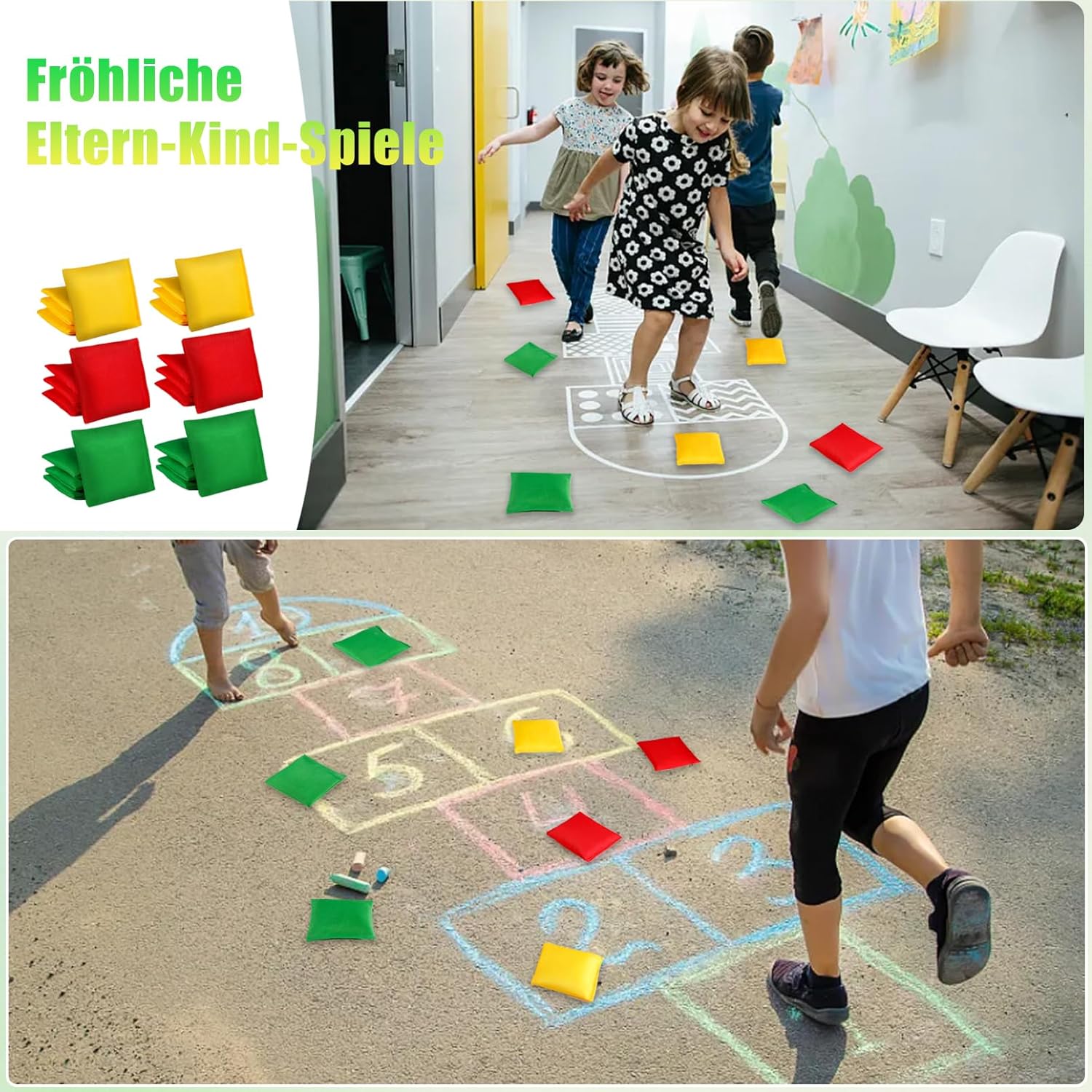 Pouf: 24 pouf colorati in totale, di cui 8 in rosso, giallo e verde, in ogni colore. 1 sacchetto nero con coulisse per riporre e organizzare comodamente Piccole dimensioni: le borse misurano 10 x 10 cm, facili da impugnare e lanciare e sono adatte per il gioco quotidiano dei bambini. Diversi colori conferiscono al pouf una vivace atmosfera. Anche un regalo meraviglioso per i bambini Materiale di alta qualità: questi sacchetti sono realizzati in particelle di plastica e tessuto di nylon, sono resistenti e non si strappano facilmente. Le cuciture di precisione rinforzate garantiscono una lunga durata in molti giochi senza che le particelle di plastica cadano a pezzi Supporta la coordinazione: i nostri piccoli sacchi di fagioli sono divertenti ed educativi, non solo possono allenare le loro abilità motorie attraverso giochi di lancio e cattura, ma anche allenare il loro corpo per mantenersi in forma Gioco divertente: puoi giocare all'aperto in qualsiasi momento, ad es. in spiaggia, in giardino, al parco o in qualsiasi altro luogo, anche per Halloween, Natale, riunioni di famiglia all'aperto e altre occasioni