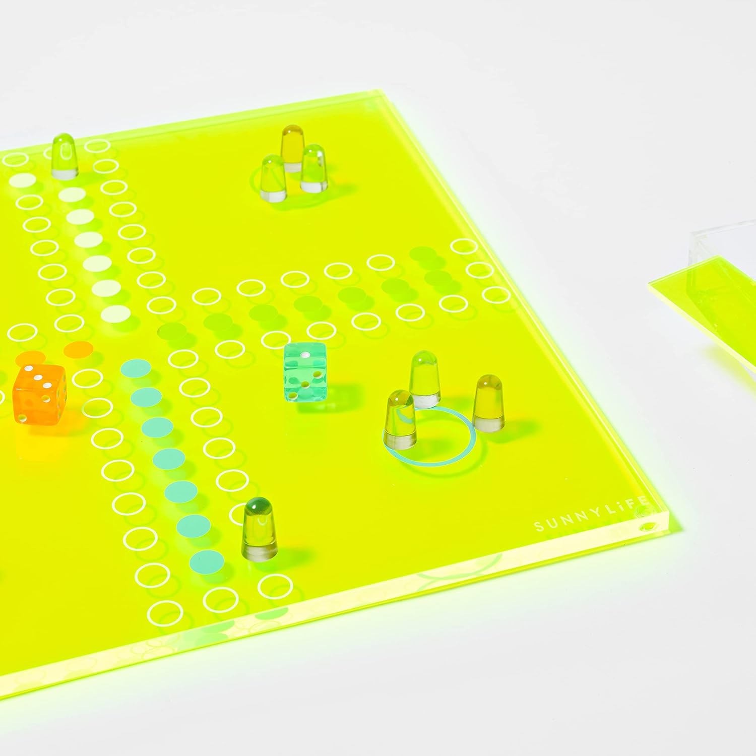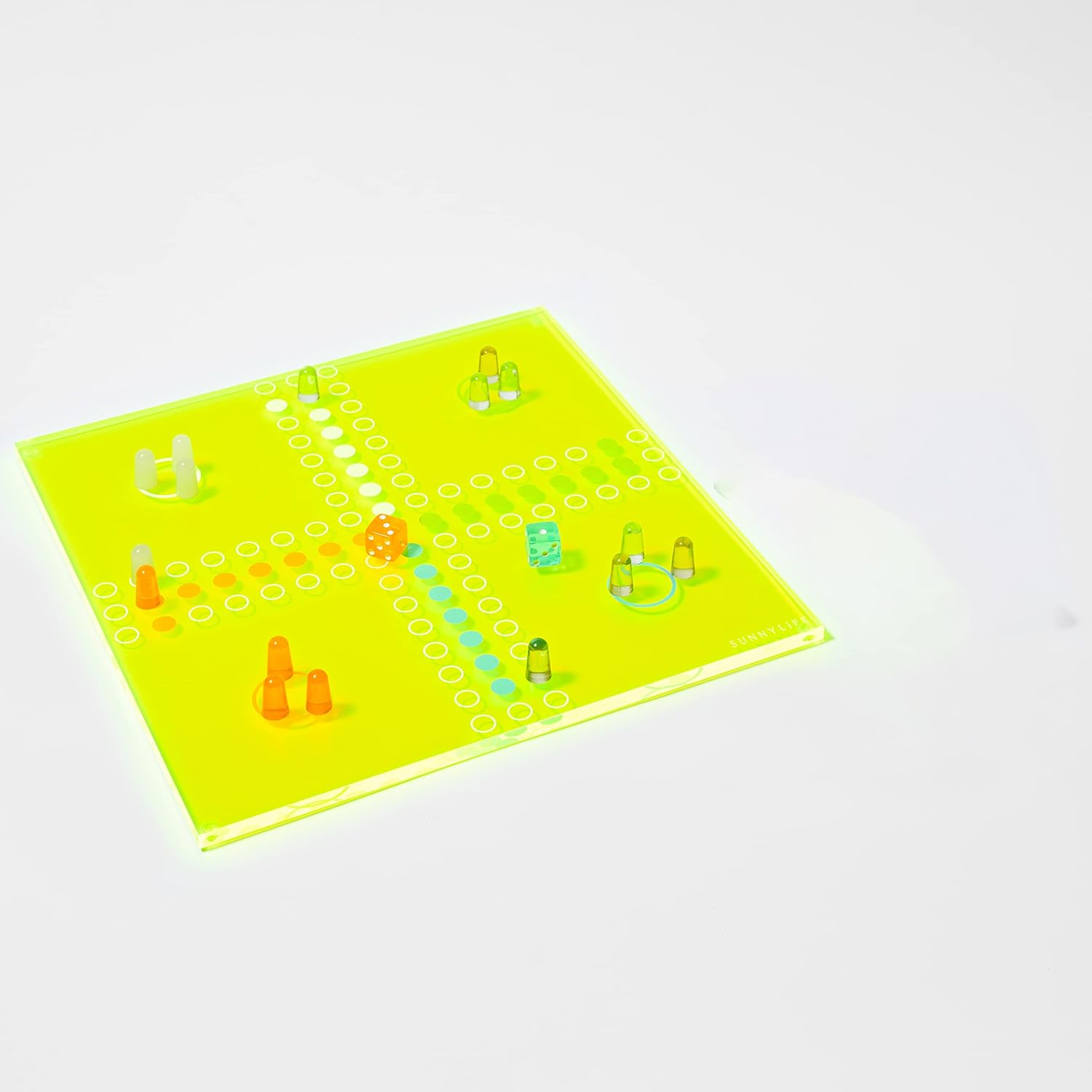 La nostra edizione limitata e la lussuosa gamma di giochi Lucite nella nuova scintillante combinazione di colori al neon si ispira alla calda luce solare che attraversa il cielo in una calda giornata estiva. Illumina istantaneamente la tua casa con un lampo di neon e mantieni il gioco in mostra per attirare i tuoi concorrenti. Un caleidoscopio di impattanti toni al neon ha immediatamente ridisegnato questo classico gioco nella stratosfera reattiva retrò. Inizia un atteggiamento disco-boogie con un movimento del polso. Ditali luminosi al mandarino, celeste, lime e limone faranno muovere le dita in un istante.