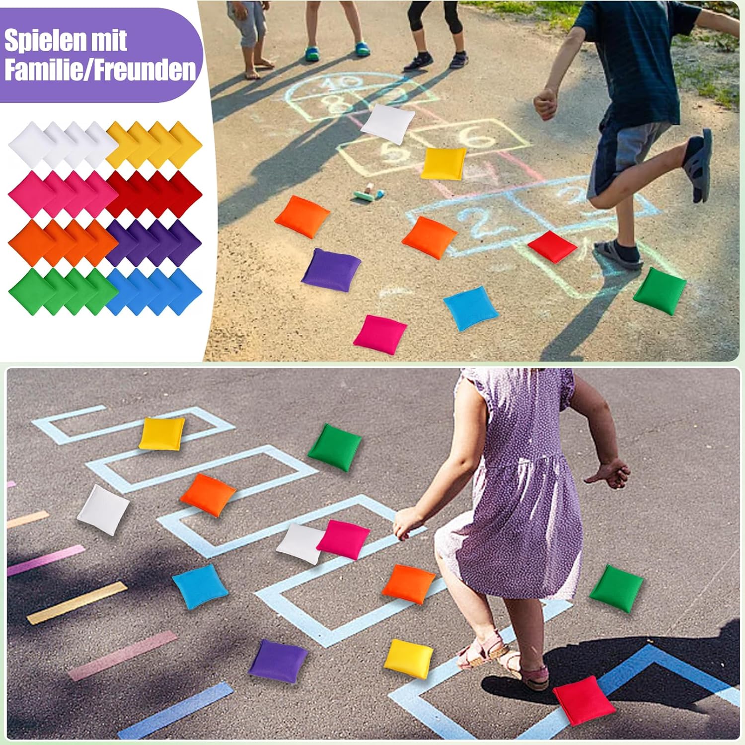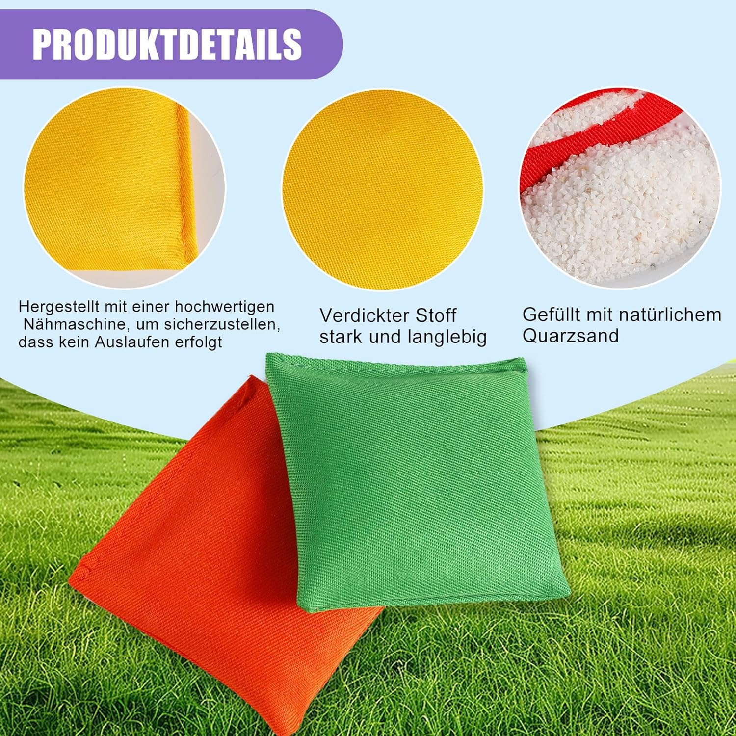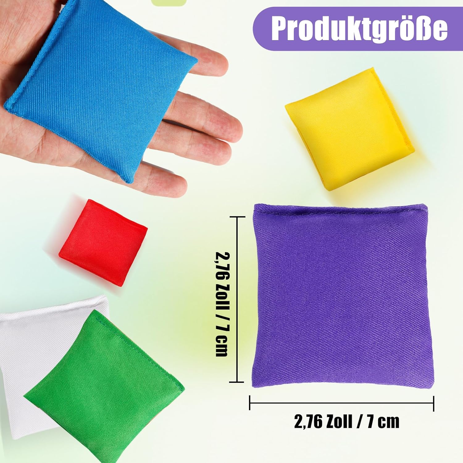 Confezione conveniente: in totale sono inclusi 32 sacchetti per cornhole nella confezione; in diversi colori, tra cui rosso, rosa, viola, verde, giallo, arancione, blu e bianco, abbastanza per soddisfare le vostre esigenze di gioco Compatto e leggero: con dimensioni di 7 x 7 cm, i nostri sacchetti per cornhole sono compatti e leggeri, quindi sono facili da trasportare. Grazie alle loro dimensioni più piccole sono facili da lanciare e catturare, rendendo il tuo gioco ancora più divertente Materiale di alta qualità: il piccolo sacchetto per cornhole è realizzato in poliestere di alta qualità, robusto e infrangibile e garantisce una lunga durata. Il pouf è riempito con sabbia di quarzo che garantisce la distribuzione del peso e la stabilità Pouf classici: questi sacchetti per cornhole sono molto divertenti; i bambini possono sviluppare la coordinazione occhio-mano attraverso un gioco di tiro e di rifugio e anche fare un po' di movimento per rimanere sani Regalo divertente: il sacchetto cornhole è la scelta ideale per giochi di famiglia, giochi di festa o giochi di squadra. Sono anche un'ottima idea regalo per chi ama i giochi interattivi ed emozionanti