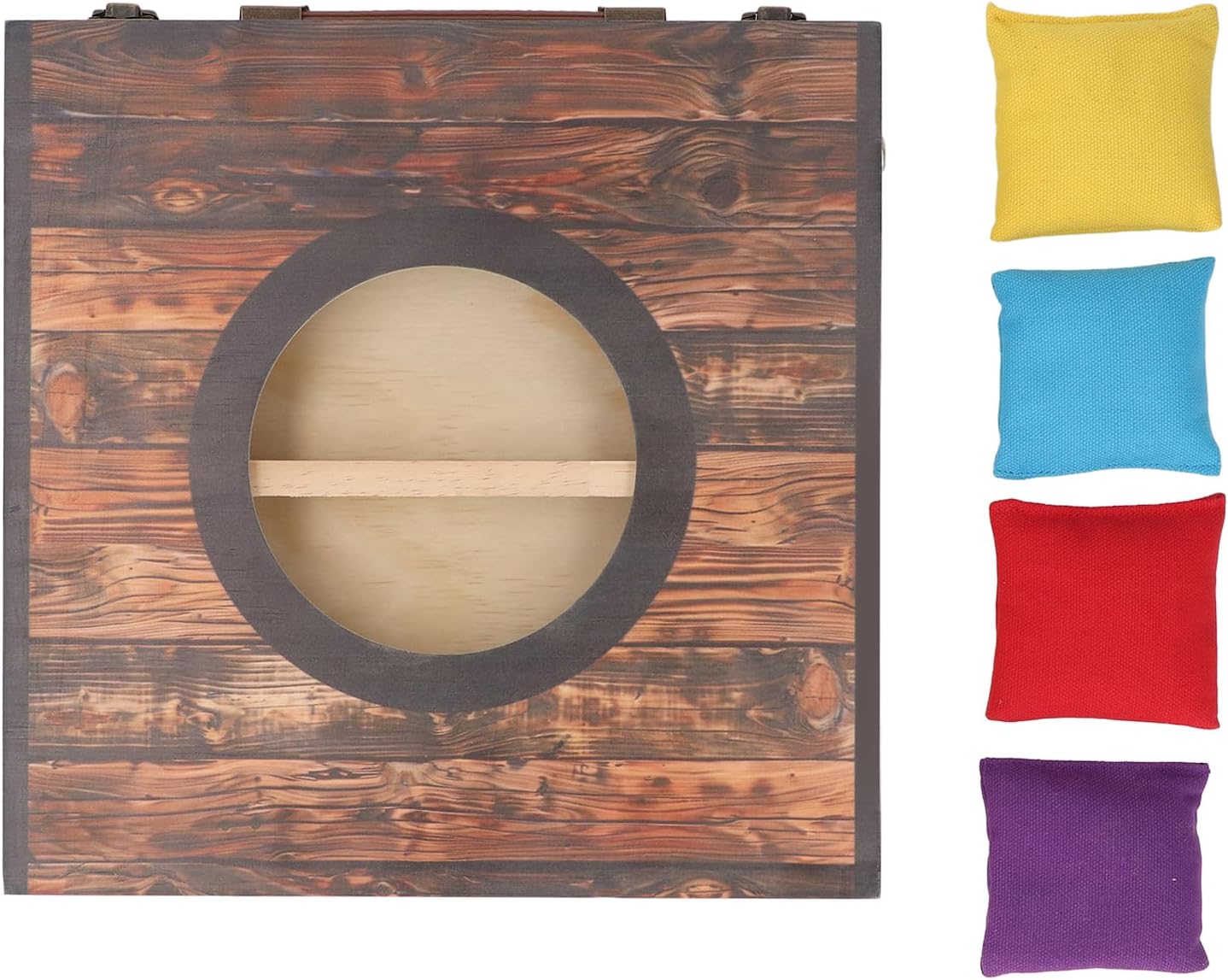 Tecnologia a pressatura a calore: il set da gioco con pouf è protetto dalla tecnologia a pressatura a caldo e offre un'elevata resistenza ai graffi, in modo che il set rimanga nella sua forma originale anche con un uso regolare. Struttura robusta: questo set da gioco interattivo Cornhole in legno ad alta resistenza offre una presa stabile e garantisce che la tavola rimanga stabile e stabile anche durante i pouf intensi. Rivestimento impermeabile: il set da gioco Cornhole per esterni presenta un rivestimento idrorepellente sul telaio e sulle gambe. Questa vernice a base d'acqua aumenta la sua durata ed è adatta sia per uso interno che esterno. Divertimento interattivo: le gambe pieghevoli di questo set da gioco Cornhole in legno garantiscono una facile conservazione e trasporto, rendendolo un gioco interattivo ideale per diverse occasioni. Design portatile: grazie al suo design portatile, il gioco di tiro a sacco è per feste, campeggio, riunioni ed eventi in cortile, ecc.
