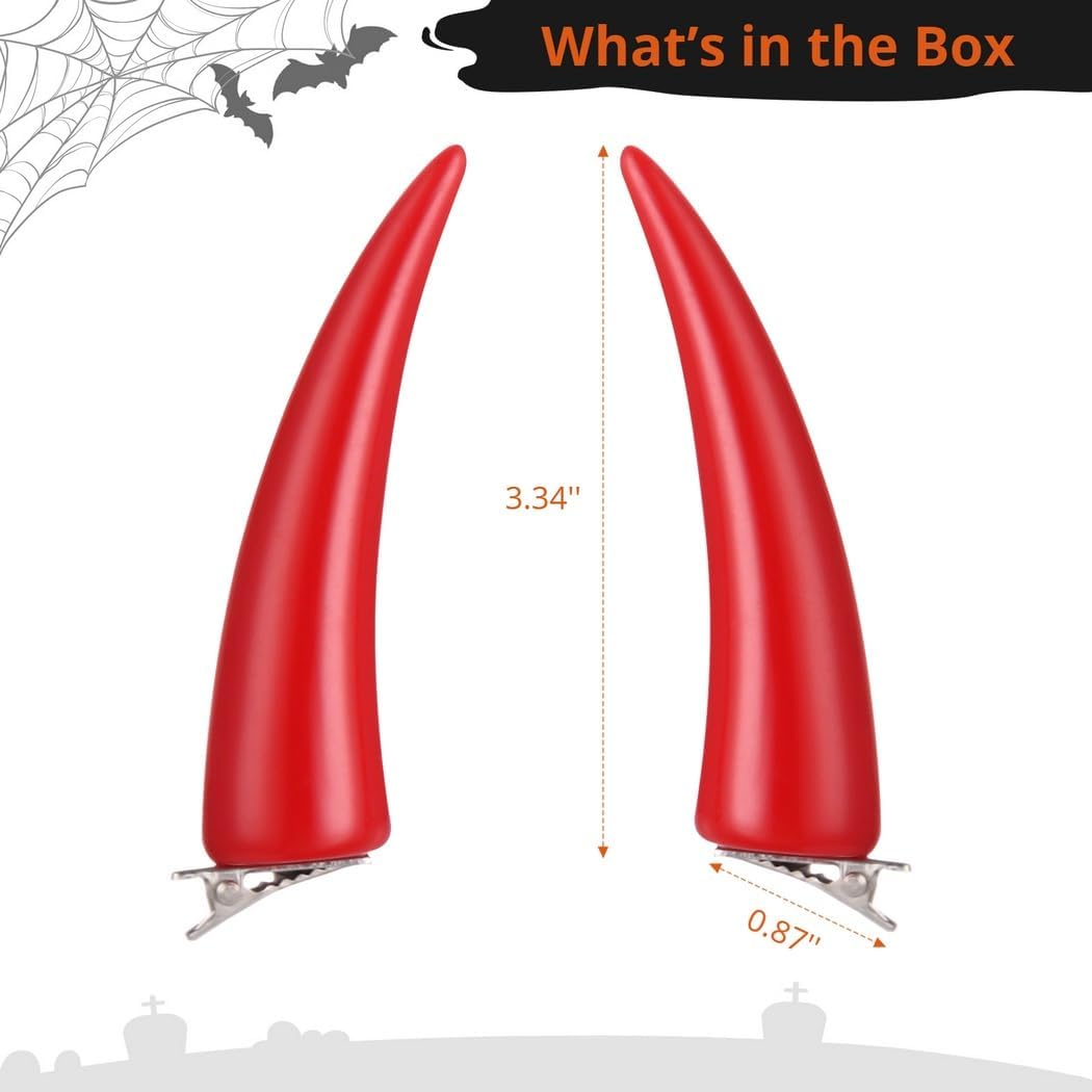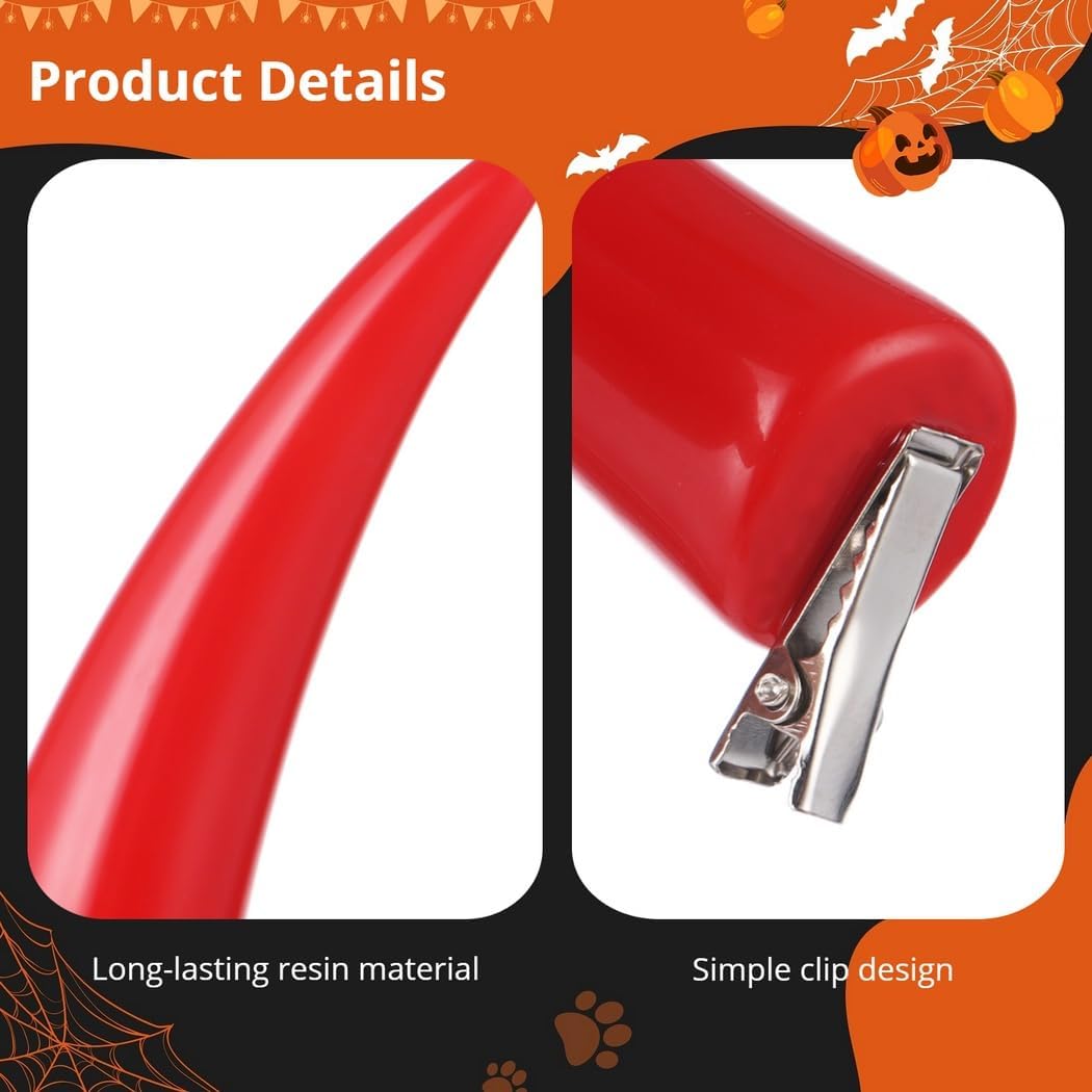 Colore: rosso. Materiale: resina, lega. Dimensioni: 2,2 x 8,9 cm (larghezza x altezza). La confezione include: 1 paio di corna da diavolo. Nota: - Si prega di fare riferimento alla misura. Si prega di considerare un piccolo margine di errore nelle misure. - Potrebbe esserci una piccola differenza di colore a causa del monitor, della fotocamera o di altri fattori, si prega di fare riferimento all'articolo fisico.