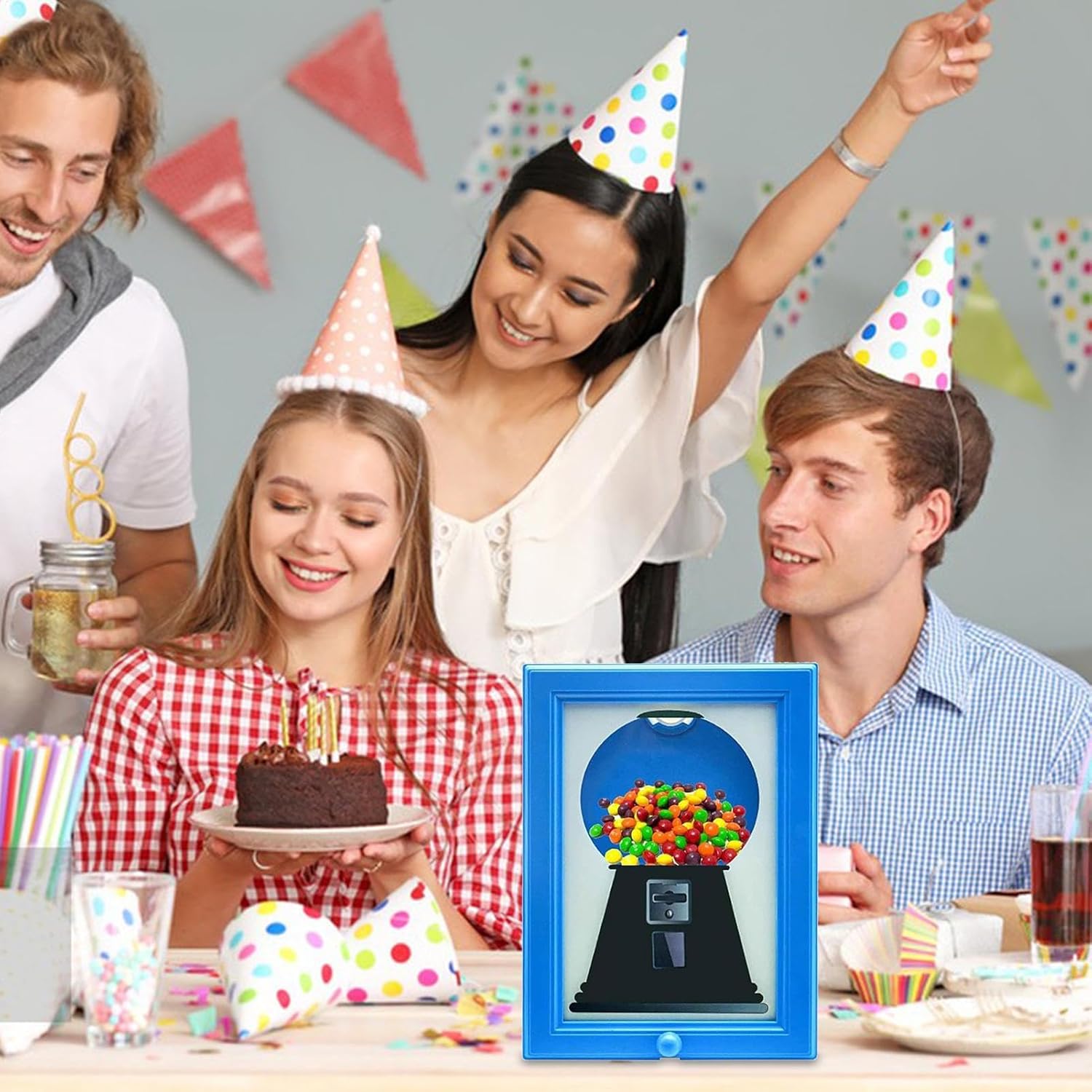 Utilizzo variabile: display multi-posizione come stazione da tavolo o decorazione da parete, trasformazione semplice tra contenitore per caramelle e cornice per molteplici utilizzi, con soluzione salvaspazio Regalo funzionale con valore emotivo: questa creazione unica combina elementi giocosi con un fascino sentimentale – dona dolcetti alla gioia dei vostri ospiti mentre le foto amorevoli attirano l'attenzione, perfette per ambienti domestici e aziendali Facile da usare: questo pratico dispenser di caramelle combina funzionalità e decorazione attraverso un meccanismo a pulsante intuitivo che consente di distribuire facilmente gli snack e allo stesso tempo funge da dettaglio giocoso per la casa Costruzione robusta: il dispenser di caramelle in acrilico con robusto telaio in ABS combina un design accattivante come elegante accessorio per la casa con pratico contenitore per snack nella vita quotidiana moderna, a prova di perdite e organizzato in qualsiasi momento Pratico dispenser per dolcetti: questo dispenser di caramelle con cornice è perfetto come dispenser di regali per feste, come ringraziamento per insegnanti o come stazione di caramelle in negozio. È progettato come porta dolcetti divisibile e offre un'eccellente idea regalo per feste, posto di lavoro o espressione di gratitudine in modo indimenticabile.