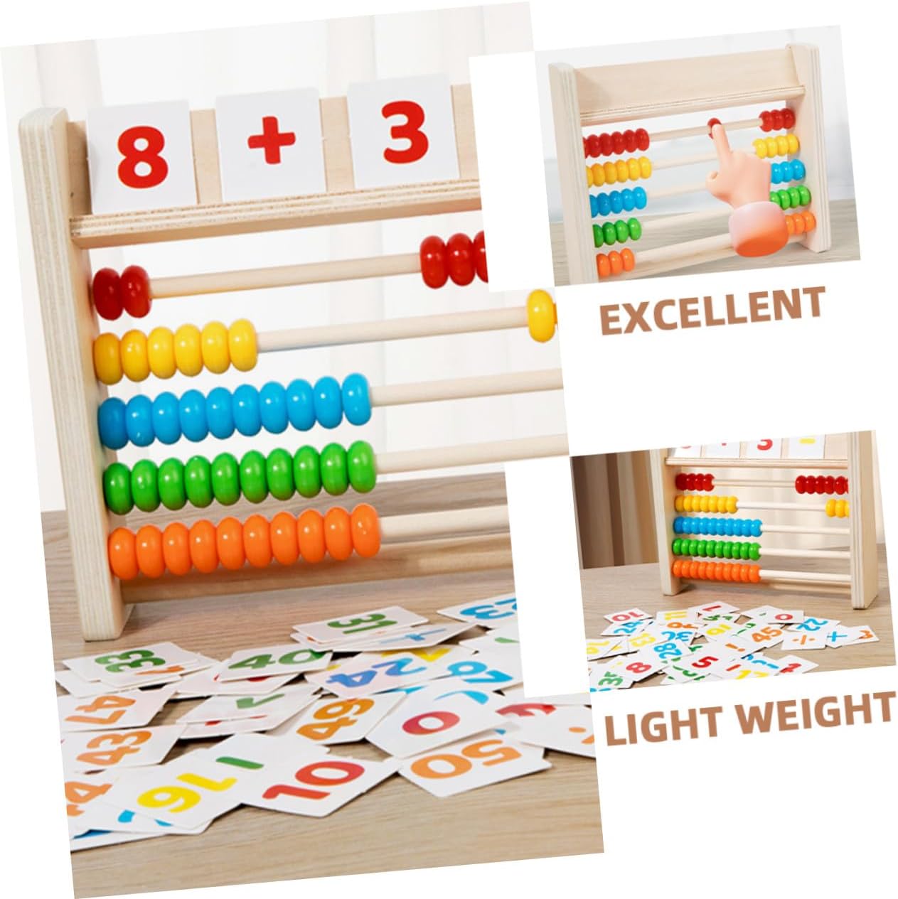 Strumenti di calcolo e conteggio: il cognitivo per imparare la matematica e i colori è molto adatto per migliorare le tue abilità matematiche, abaco aritmetico, giocattoli per bambini: un ottimo regalo per un compleanno o nella vita di tutti i giorni. È un bel modo per tuo figlio di giocare a questo gioco di relazione genitore-figlio. Abaco per la scuola materna Per lo sviluppo del cervello: bordi e angoli lisci, sicuro senza sbavature, il prodotto è ben lucidato e non fa male alle mani quando viene utilizzato, abaco aritmetico in legno Matematica per la scuola materna: il design accattivante di questo prodotto attira l'attenzione dei bambini, per imparare i numeri per i più piccoli Abaco per studenti: il giocattolo educativo è un eccellente strumento didattico per sviluppare la coordinazione occhio-mano dei bambini e l'apprendimento in età prescolare