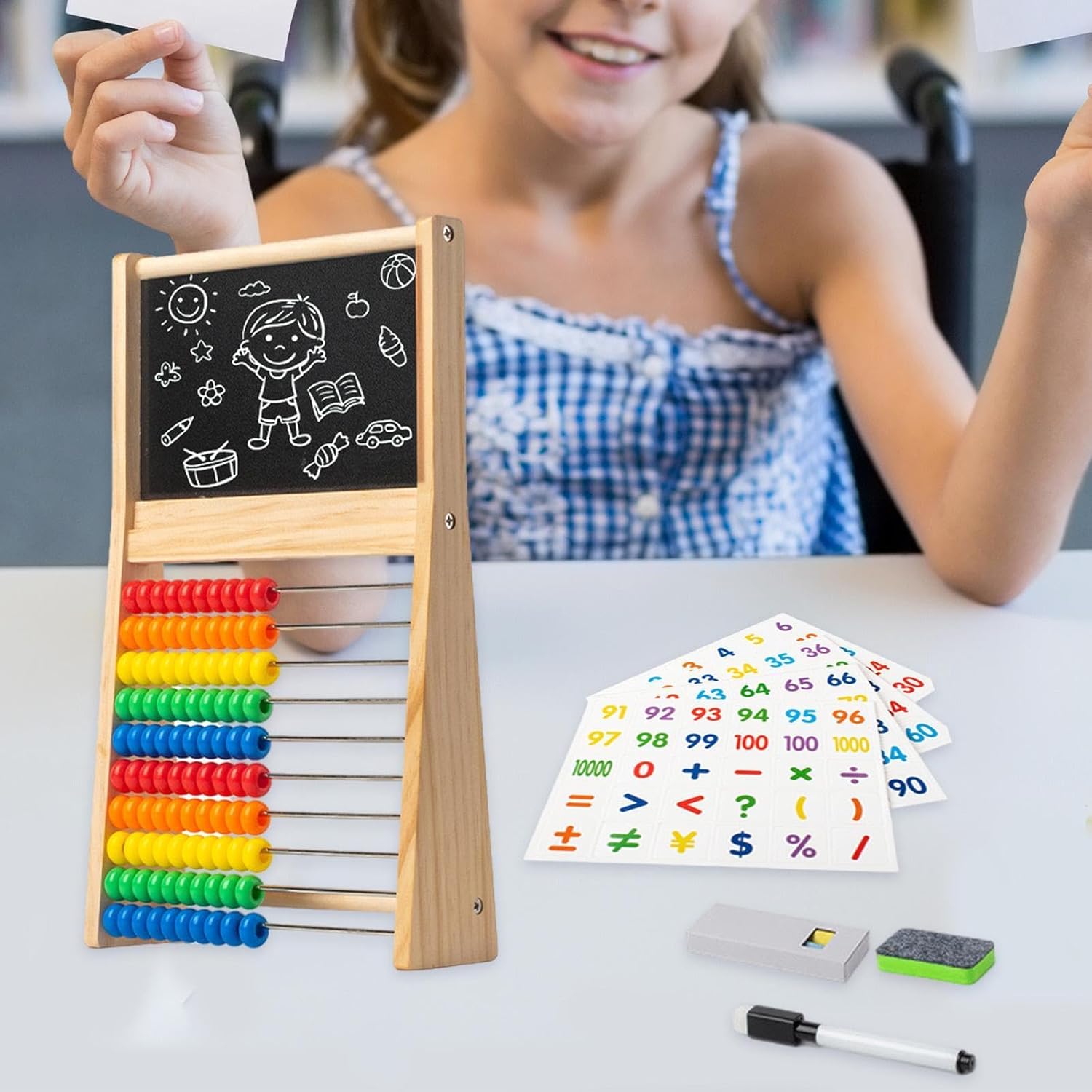 【Ausili per l'apprendimento】: quello per i bambini promuove il pensiero logico. Cambia la perla aritmetica per riconoscere il numero, promuovere la percezione dei colori e aiutare il bambino a distinguere i colori. 【Educazione iniziale】: conteggio dei giocattoli matematici, riconoscimento del . Può essere utilizzato per contare e contare. 【Materiale didattico】: tavolo da disegno, simpatico aiuto per l'apprendimento della matematica per bambini, addizione matematica, sottrazione, scrittura e aritmetica. 【Ottimo regalo】 Quello con cornice in legno è un regalo adorabile ed educativo per ragazzi e ragazze. 【Tavolo da disegno】: il giocattolo educativo per il conteggio è realizzato in legno con tavolo per formule, carte, penna e cancellino per lavagna, il tavolo è adatto per la pittura con il gesso.