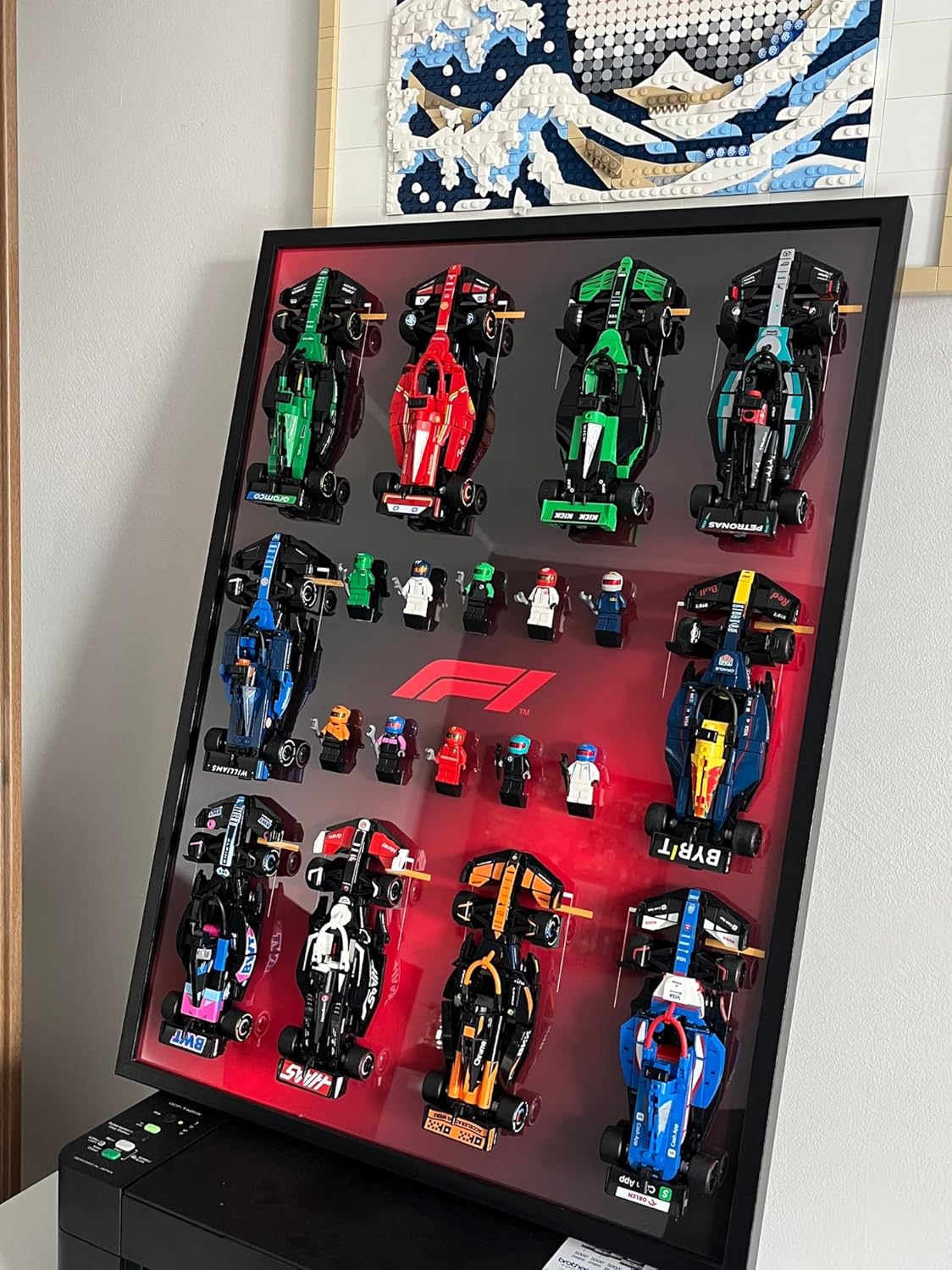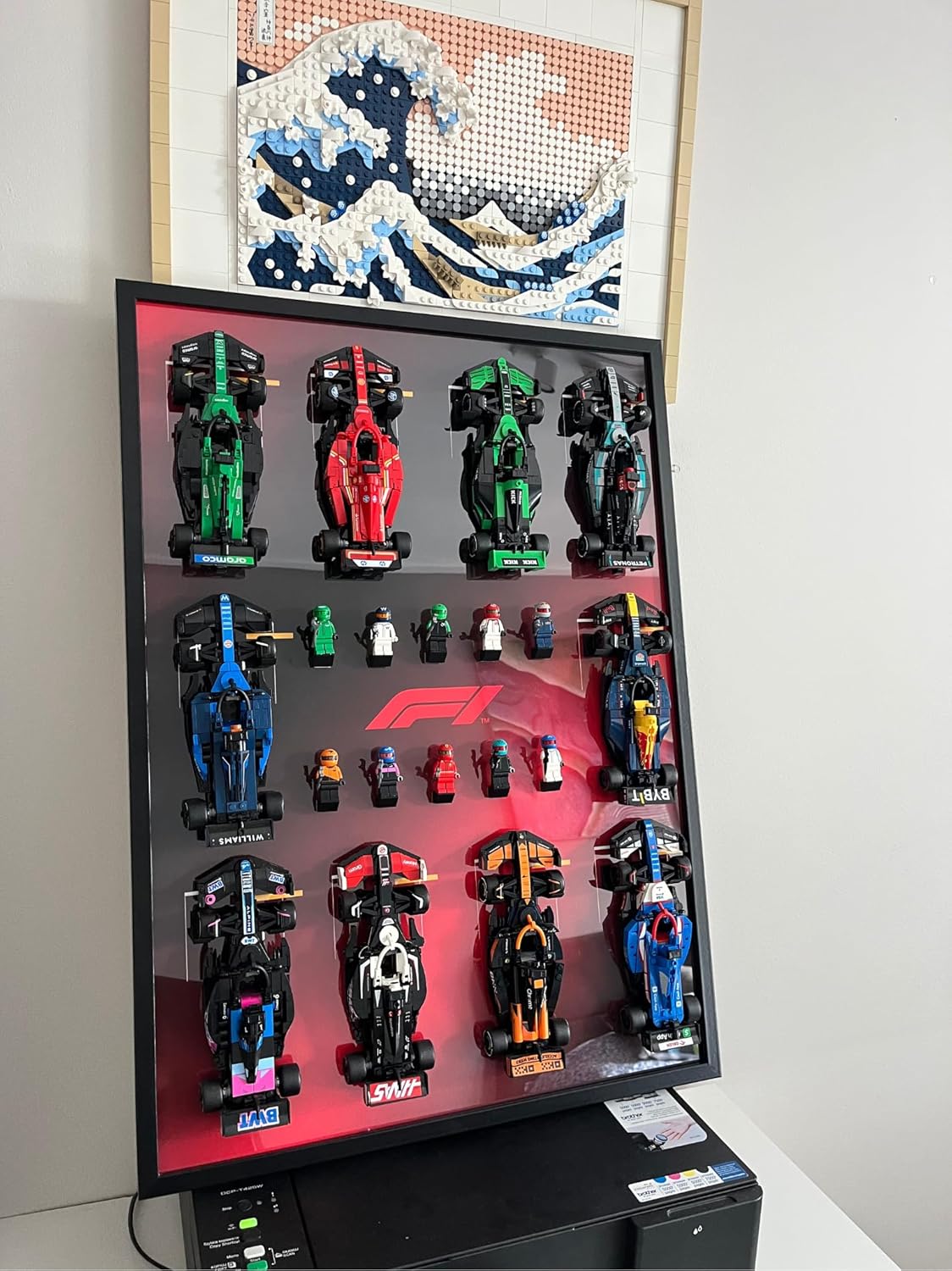 Cornice da collezione in legno per modelli LEGO x F1 (50 cm x 70 cm) con supporti stampati in 3D Mostra i tuoi modelli dell'ultima collezione LEGO in collaborazione con F1, lanciata il 1 marzo 2025, in un modo unico ed elegante! Materiali di alta qualità: la struttura è realizzata in legno naturale, che conferisce tutta eleganza e durata. Supporti 3D precisi: supporti appositamente progettati, stampati con tecnologia 3D da filamenti durevoli e selezionati, garantiscono un montaggio stabile ed estetico dei modelli. Spazio per minifigure: il telaio ha uno spazio dedicato per visualizzare i minifigure del conducente di ciascuna delle auto da corsa disponibili nella serie LEGO x F1. Si prega di notare: l'offerta si applica solo al telaio. I modelli LEGO e le minifigure mostrati nelle immagini non sono inclusi nel set e devono essere acquistati separatamente