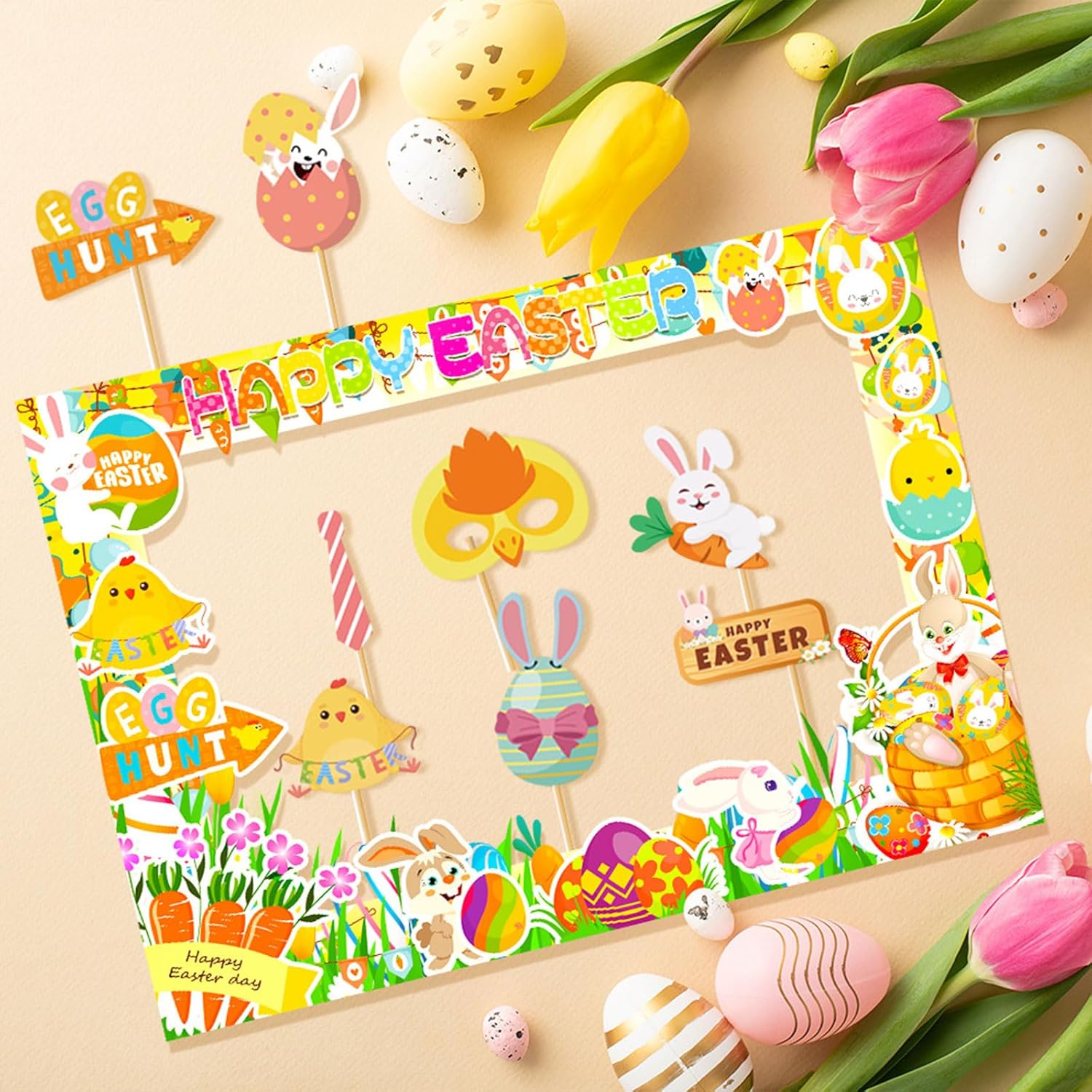 Festeggia le vacanze di primavera con la nostra cornice per foto e oggetti di scena fotografici portatili, migliorando le tue riunioni del festival e creando opportunità fotografiche memorabili Trasforma le tue foto in ricordi cari con la nostra cornice portafoto a forma di coniglietti colorati e oggetti di scena fotografici Molto adatto per bambini, adulti, soprattutto famiglia e appassionati di fotografia. Migliora la decorazione delle feste con un tocco di fascino Realizzate in carta, queste cornici colorate con coniglietti e decorazioni fotografiche presentano una varietà di motivi colorati che facili da montare e utilizzare Ampiamente usati per feste di primavera, decorazioni per feste di compleanno, riunioni di famiglia, eventi scolastici, riunioni a tema, questi oggetti di scena aggiungono un tocco divertente e festivo a ogni occasione