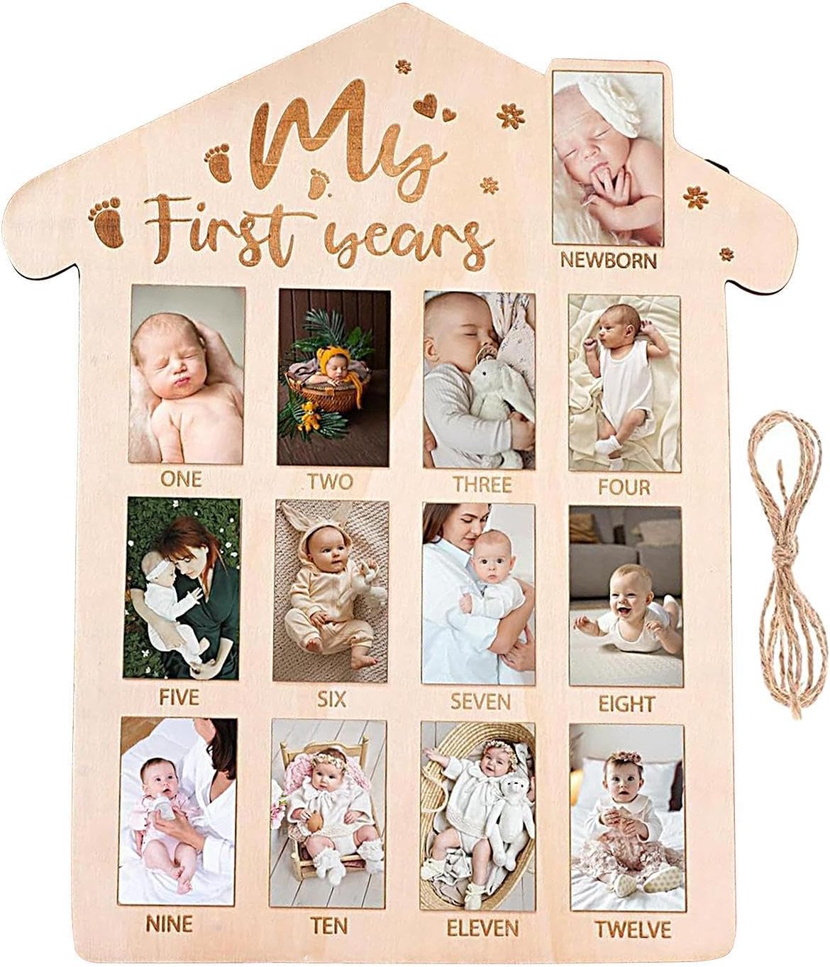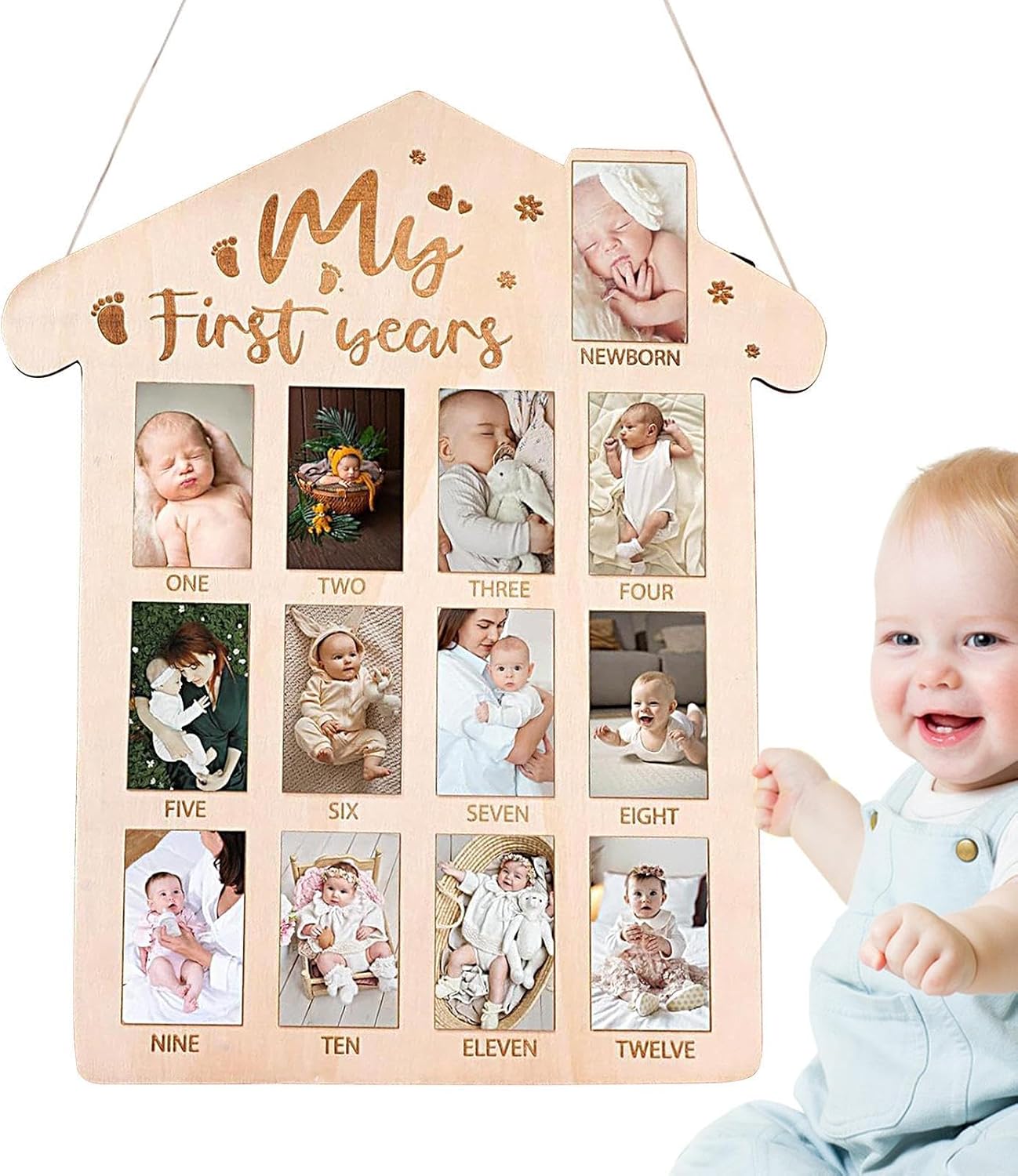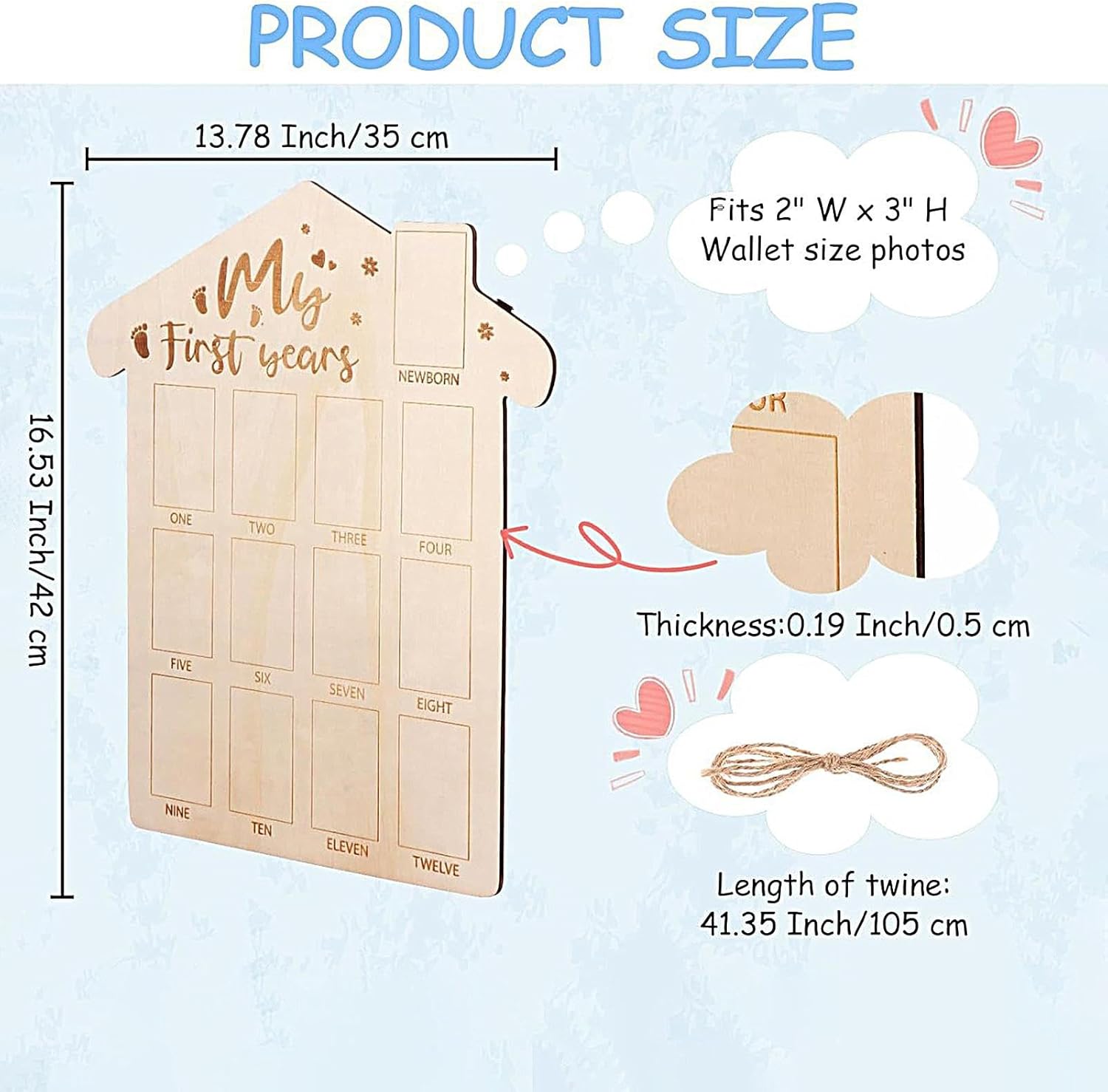 MEMORIA ELEGANTE: Realizzata in materiale di legno liscio e riutilizzabile, questa cornice per foto del primo anno presenta motivi squisiti e nomi di mesi per fornire un delizioso promemoria della crescita del tuo bambino, garantendo che la cornice rimanga intatta e non sbiadisca negli anni a venire con sicurezza. Valorizza ogni momento: documenta e apprezza la crescita mensile di tuo figlio nel primo anno con la nostra cornice per il primo anno. Decorato con bellissimi motivi, presenta un design che lo rende un ricordo di festa squisito e indimenticabile. UN ESPOSITORE DI PREZIOSO: migliora la tua esperienza ricordo con la nostra cornice per foto del primo anno dal design elegante. Misura circa 42 x 35 cm, realizzato in legno spesso 0,5 cm, adatto per un'immagine di dimensioni 5 x 7,5 cm, si trasforma da semplice portafoto a uno splendido espositore di ricordi preziosi. Decorazione: aggiungi un tocco di fascino ai tuoi ricordi del primo anno con questa cornice per foto. Si abbina facilmente a qualsiasi tema di festa di compleanno, rendendolo una decorazione perfetta e significativa per la stanza del tuo bambino e un fantastico accessorio per la decorazione della casa che crea una nostalgia eterna. 【Ampia applicazione】 Festeggia l'amore di una madre con questa cornice per foto del primo anno. È versatile per ogni occasione: un regalo premuroso per la festa della mamma, baby shower o altri eventi importanti nella vita di un bambino e altro ancora.