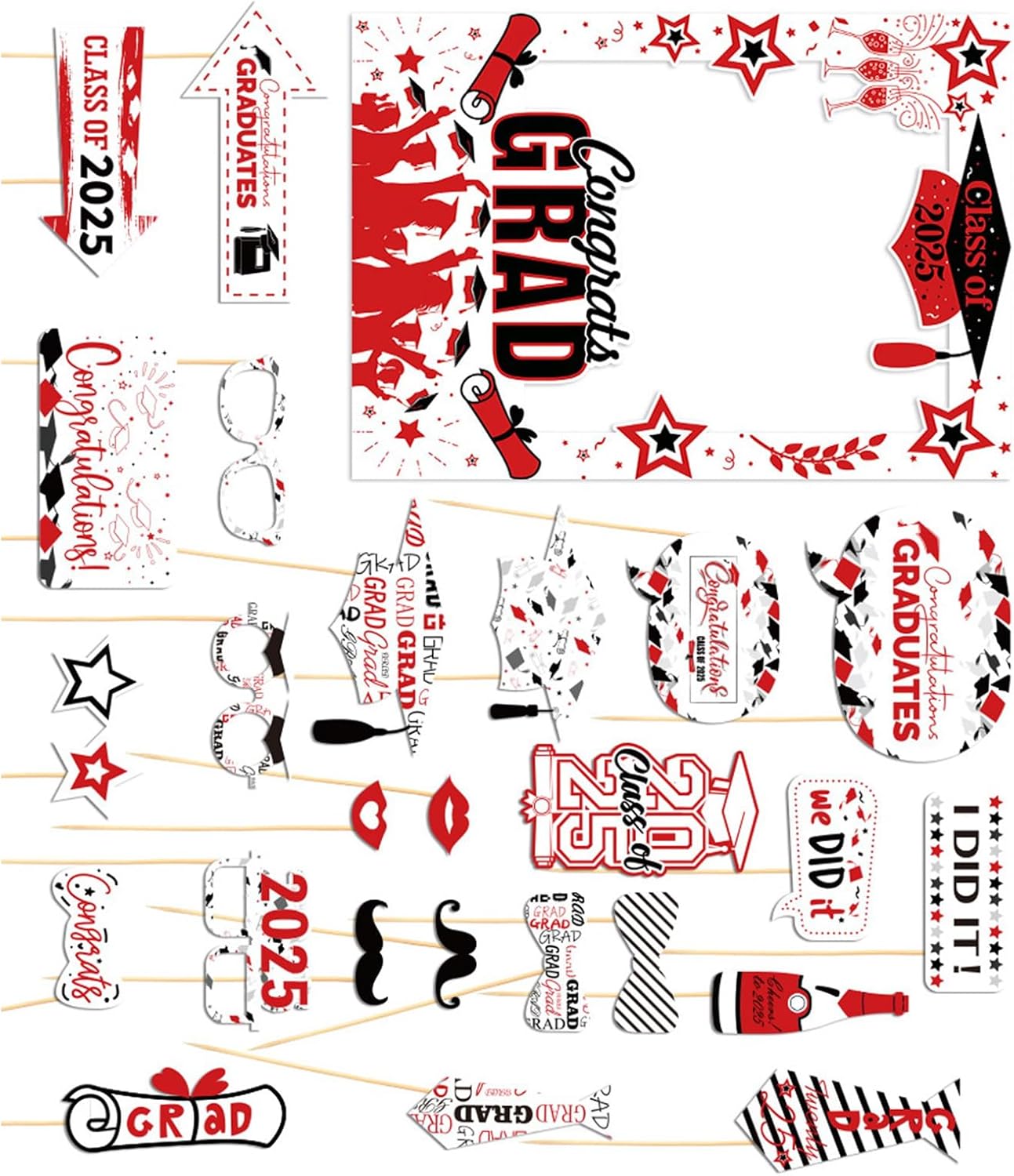 per ospiti di feste, organizzatori di eventi e chiunque desideri aggiungere un tocco festivo ai loro raduni Festeggia l'arrivo della stagione della laurea con il nostro set di accessori per cabina fotografica, presenta una cornice unica e divertenti oggetti di scena per migliorare la tua festa Ideali per feste di laurea, riunioni di famiglia o qualsiasi celebrazione, questi oggetti di scena renderanno le tue foto accattivanti Realizzati in carta e legno, questi accessori per cabina fotografica sono progettati per una facile maneggevolezza e un uso duraturo Crea ricordi duraturi con questo set di cabine fotografiche, un'aggiunta essenziale alla tua collezione di forniture per feste