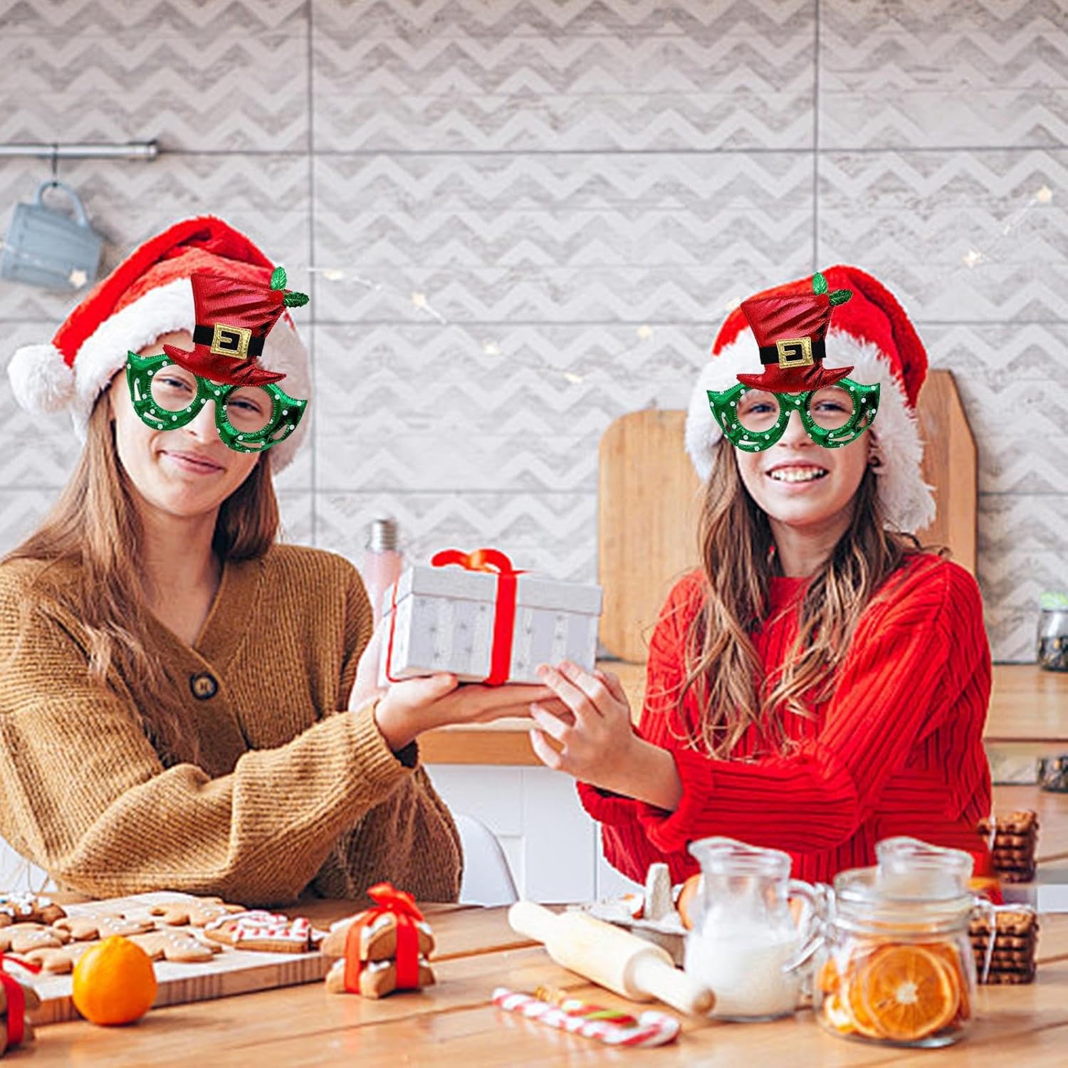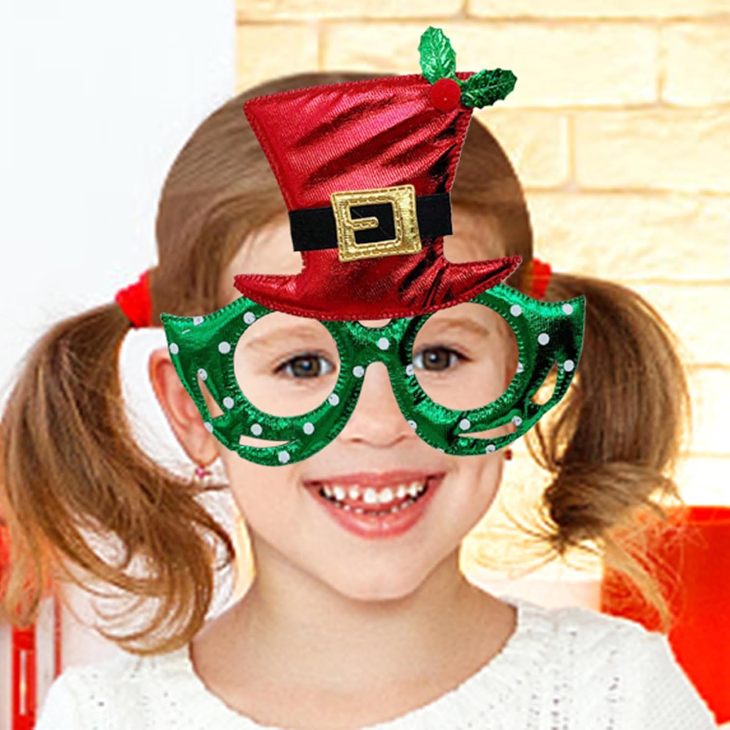 Questi occhiali da vista natalizi sono perfetti per le tue feste a tema natalizio! Con una classica combinazione di colori rosso, verde e oro e un design semplice ma festoso, questi occhiali sono leggeri e confortevoli. Adatto a che amano travestirsi per le feste e cercano di aggiungere un po' di divertimento alle loro celebrazioni! Informazioni sul prodotto Materiale: ABS, tessuto non tessuto Peso: 13,6 g Dimensioni del prodotto: circa 14,4x15,1 cm/5,67x5,94 pollici Lista imballaggio Occhiali natalizi per bambini*1