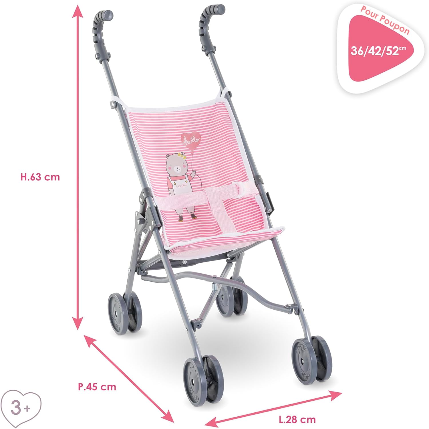 ACCESSORIO REALISTE PER PASSEGGARE IL SUO POUPON: Il Passeggino Canne Rose è ideale per portare il suo grande poupon da 36 a 42 cm in giro! ACCESSORIO FACILE DA USARE: Progettato per bambini di 3 anni, il passeggino a canna rosa è leggero, pieghevole e facile da trasportare. Per fare come "i grandi", il suo cappuccio è retrattile. Caratteristiche: adatto per bambole e bambole da 36 a 42 cm. Sicurezza: due punti di chiusura per proteggere le piccole dita dai pizzichi. Da 3 anni. CREAZIONE FRANCAISE: Uno stile "alla francese" immaginato dal 1979 a Langeais, nel cuore della Touraine.