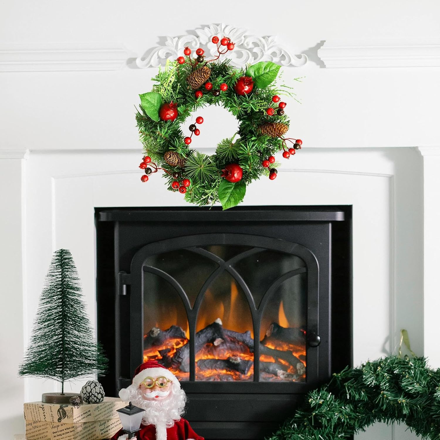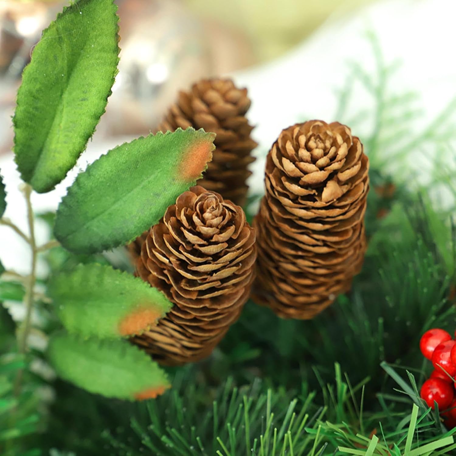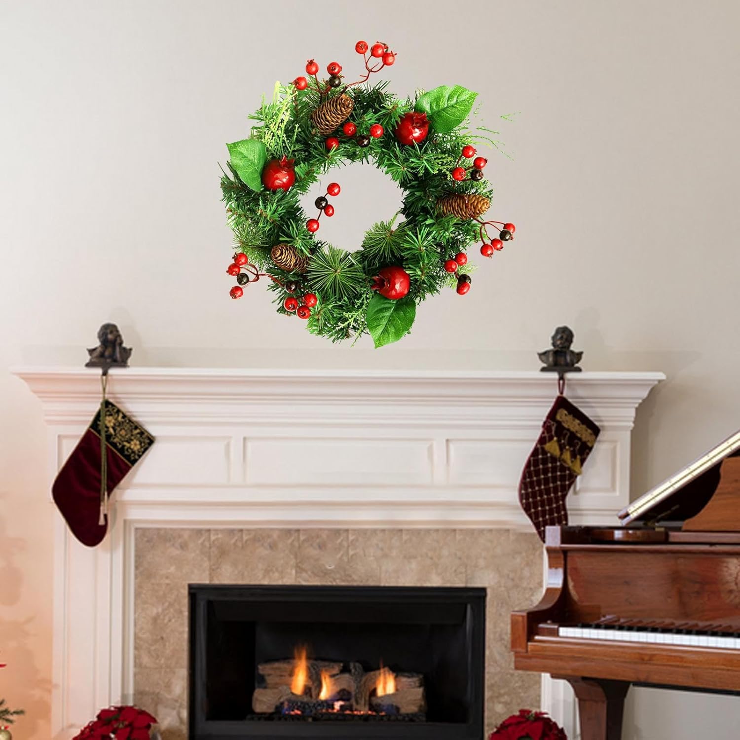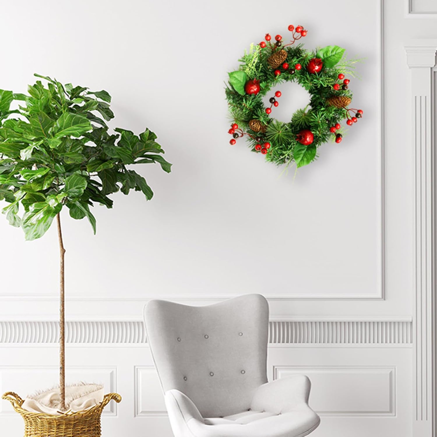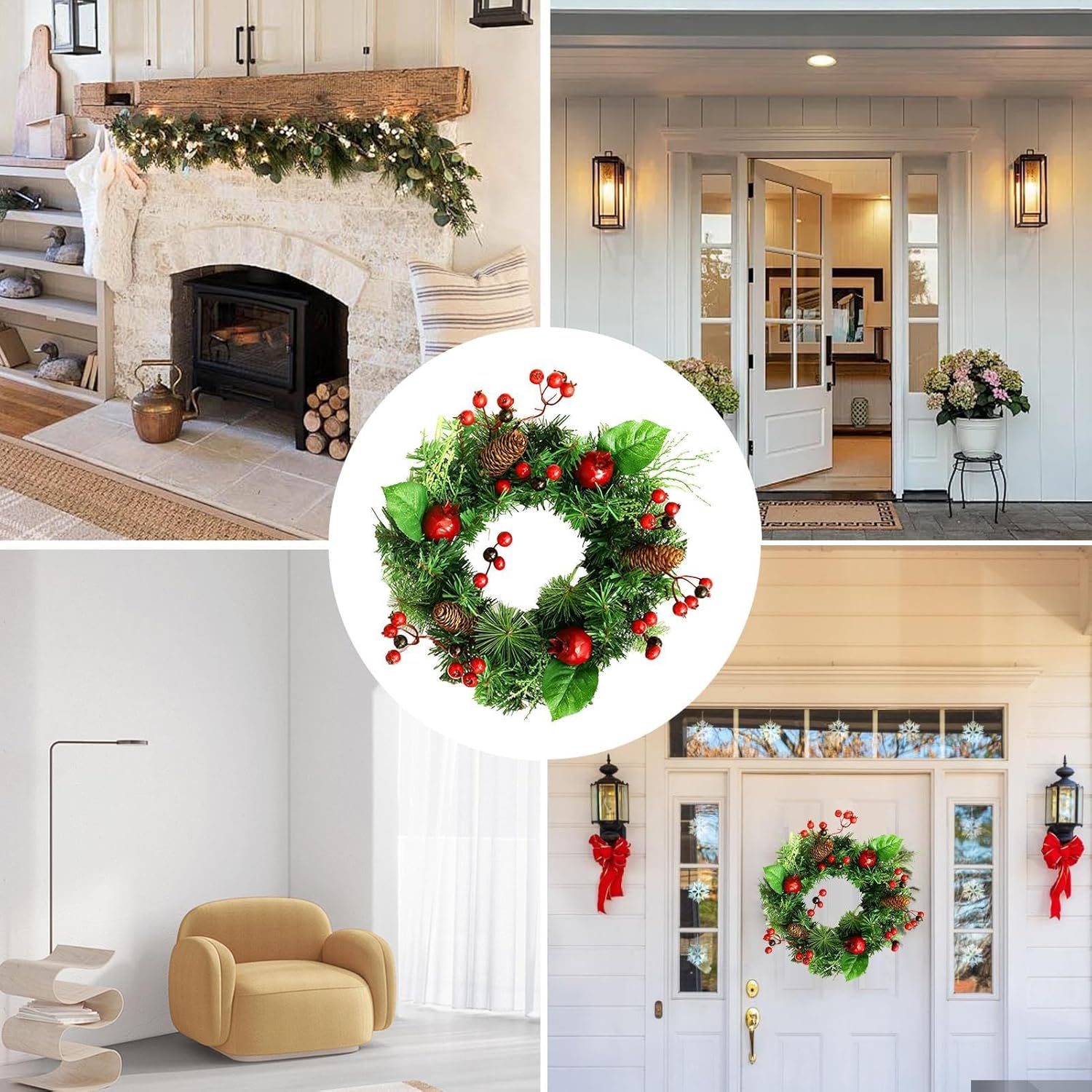 Aggiornamento Stile Ingresso: La ghirlanda natalizia valorizza la tua porta dingresso aggiungendo un dettaglio decorativo e affascinante trasformando un ingresso anonimo in un accogliente accesso che invita familiari e amici a celebrare sotto la sua atmosfera festosa grazie alla composizione equilibrata e ai colori tradizionali che esprimono lo spirito del Natale moderno Decorazione Versatile per Posizionamento: La corona di Natale per la porta è progettata per decorare molti luoghi senza sforzo, consentendo di abbellire il portico anteriore, la porta d'ingresso, la finestra, il , la mensola o la parete con facilità; la sua funzionalità adattabile garantisce un tocco festivo in vari ambienti, offrendo la comodità di una facile installazione e rimozione per uso stagionale, ideale per aggiungere un'atmosfera natalizia in diverse aree della casa con massima p Accento Stagionale Elegante: La corona natalizia aggiunge fascino a qualsiasi ambiente con la sua capacità di diffondere allegria stagionale durante Ringraziamento, Natale, matrimoni e feste del raccolto, migliorando sia spazi interni che esterni e favorendo un'atmosfera in diversi ambienti celebrativi, creando momenti indimenticabili con il suo appeal senza e una decorazione raffinata per tutte le feste. Tocco Festivo Classico: Questa corona di Natale per porta d'ingresso combina natalizi popolari come bacche rosse e pigne con realistici aghi di pino artificiali, offrendo un look senza che gli ingressi e favorisce un'atmosfera stagionale accogliente e invitante per riunioni e incontri festivi, arricchendo la casa con un stile tradizionale e caloroso durante il Natale. Decorazione di Lunga Durata: Caratterizzata da una fine lavorazione e materiali di qualità come pigne e componenti in PE, questa ghirlanda rimane resiliente ai e alla perdita di colore, offrendo un fascino duraturo per abbellire porte d'ingresso, pareti o caminetti per tutta la stagione . La sua capacità di mantenere i colori vivaci e la struttura integra la rende una scelta pratica per decorazioni natalizie che resistono all'usura, valorizzando ambienti interni ed esterni c