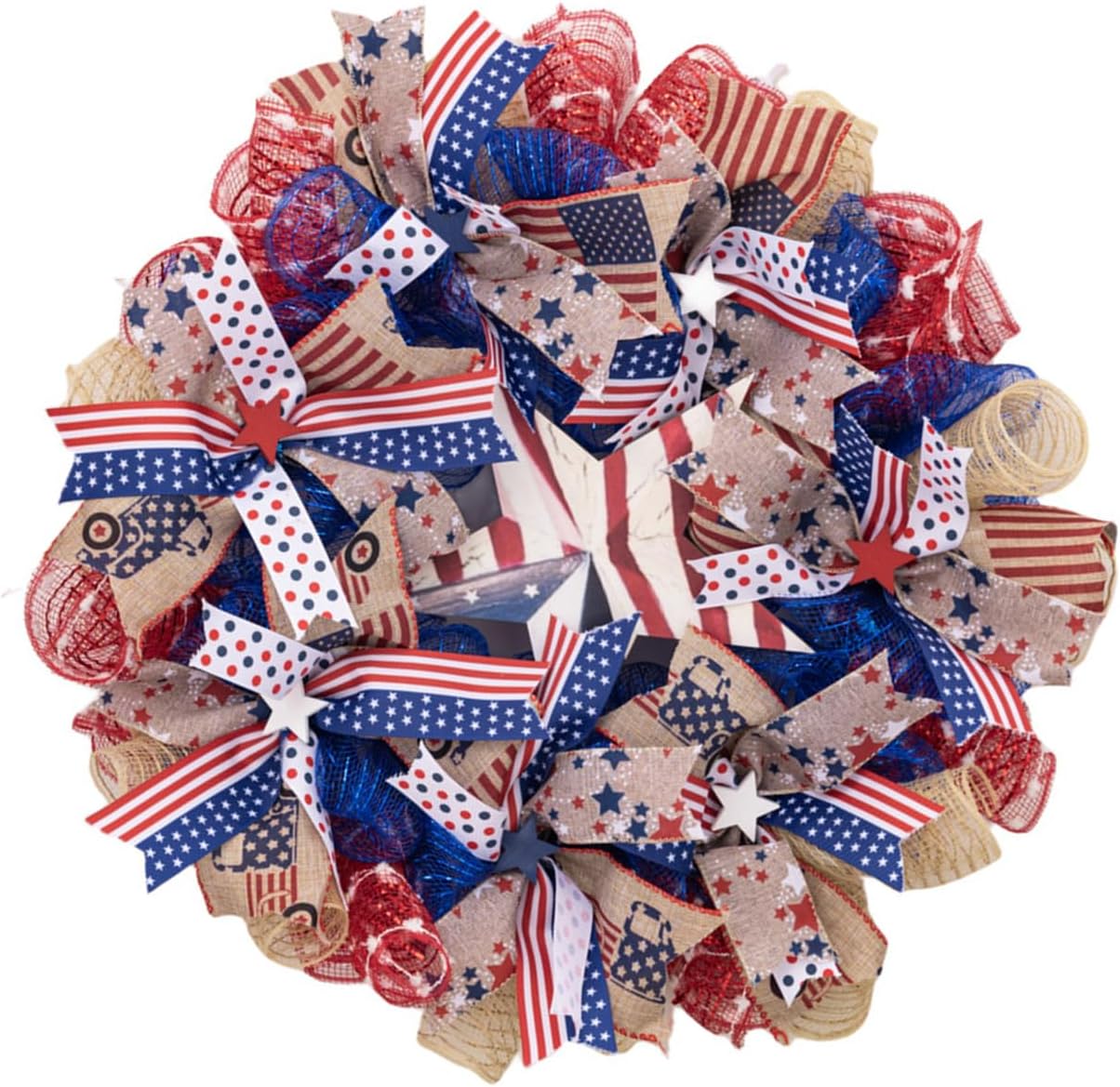 Contenuto della confezione: 1 ghirlanda patriottica, la squisita ghirlanda indispensabile ornamento per decorare la tua festa, casa il giorno dell'indipendenza Dimensioni: misura 7 cm di spessore. Da utilizzare per la tua festa di vacanza che sarà un festival creativo Ampie applicazioni: la ghirlanda è adatta per decorazioni tutto l'anno, adatta per festival, decorazioni per la casa, feste, per aumentare il patriottismo per celebrare l'inaugurazione della casa dei soldati, compleanno Corona patriottica, principalmente di colore bianco e blu, prende la bandiera americana come tema e modellato in un bellissimo fiore. questa è una corona romanza, unica e patriottica per celebrare il 4 luglio, il giorno dei veterani e il giorno dei memoriali, creando una forte vacanza per la festa e trasmettendo i tuoi forti orgoglio per la nazionalità Materiali, la ghirlanda patriottica è realizzata e in tessuto, con colori brillanti e non richiede pulizie speciali e la manutenzione dura