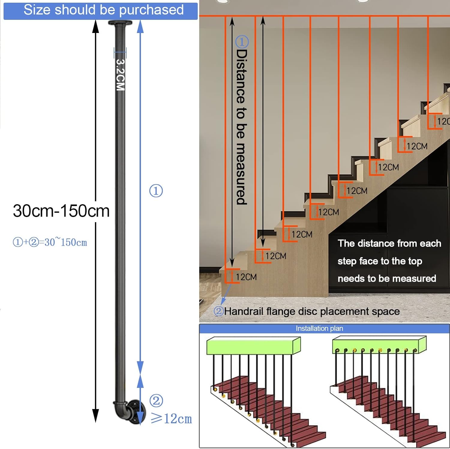 Corrimano robusto Corrimano per scale rustico La maniglia della barra è realizzata in robusto tubo zincato in ferro battuto, rivestimento resistente alla ruggine, doppia protezione. Ogni staffa supporta 200 kg, abbastanza sicura. Assistenza domiciliare - Sicurezza, fornendo bambini, anziani o disabili. Questo corrimano è un eccellente assistente per le persone che hanno difficoltà a salire e scendere le scale. Ringhiere per interni ed esterni - Maggiore sicurezza come corrimano in corridoio e sale, scantinati, giardino, scale. Adatto per uso domestico e aziendale. Dimensioni selezionabili - Lunghezza: è possibile selezionare 30 cm ~ 150 cm. Diametro del tubo tondo: 3,2 cm, distanza dalla parete: 7 cm; Kit completo, facile installazione. Facile da installare: scegli la dimensione giusta da acquistare: fai dei fori nella superficie di montaggio, quindi fissala con il kit completo incluso, installazione facile e flessibile. (Metodo di misurazione: misurare la distanza dalla superficie del gradino alla parte superiore + 12 cm)