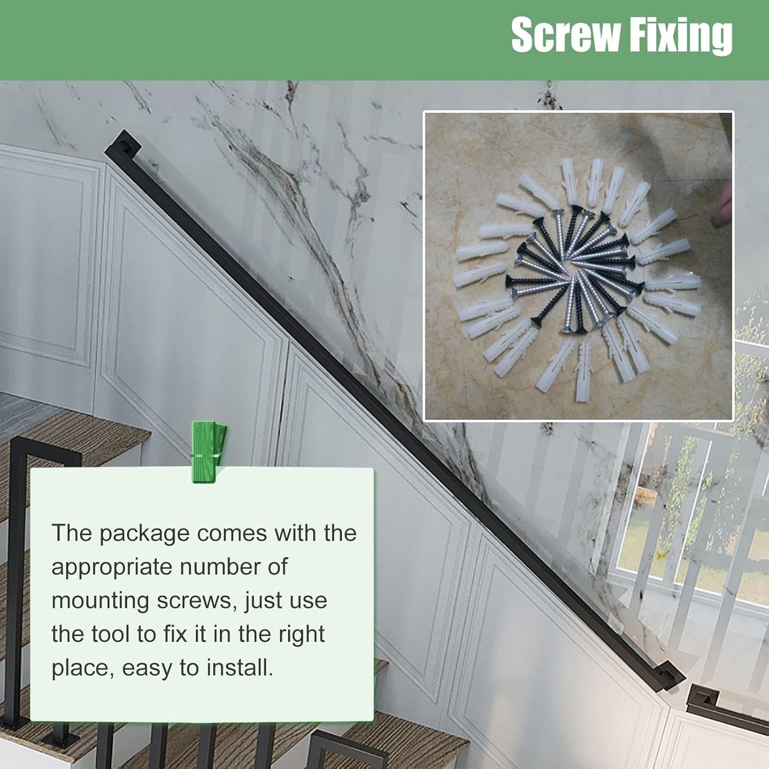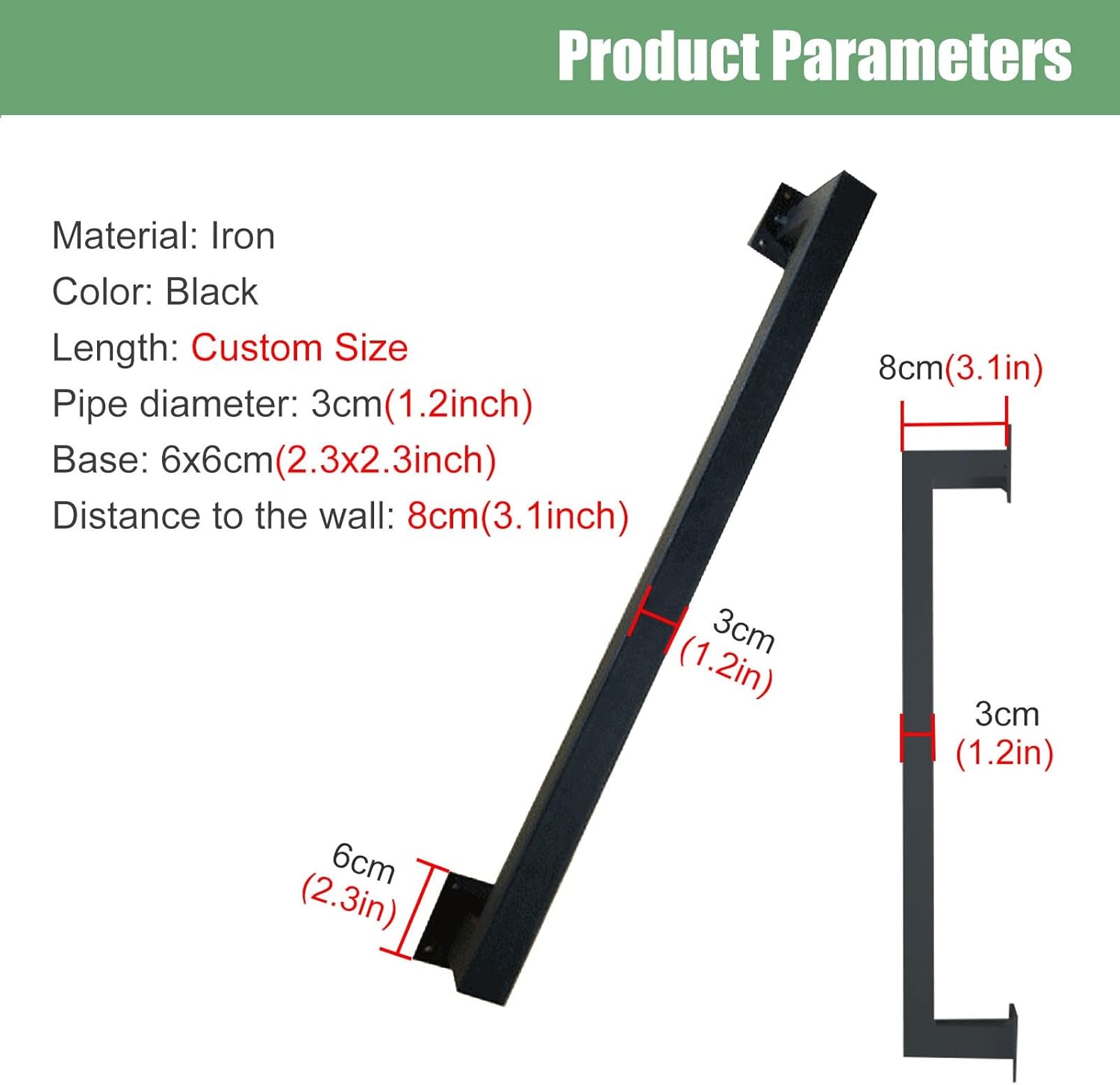 【Dimensioni】: la lunghezza varia da 0,5 m (1,5 piedi) a 6 m (19,7 piedi). Diametro del corrimano: 3 cm (1,2 pollici), distanza dal muro: circa 8 cm (3,1 pollici). Nota: se ordini un corrimano superiore a 150 cm, lo divideremo in più sezioni per la consegna. 【Ferro battuto】: realizzato in ferro battuto con robusta staffa a parete. Superficie liscia resistente ai graffi e all'abrasione. Ogni staffa supporta 200 kg. 【Metodi di installazione】: installalo nella posizione desiderata, come balaustra orizzontale, inclinata o verticale. Include kit completo. 【Multifunzione】: puoi usarlo su scale, corridoi, ville, loft, bar, appartamenti, ecc. I corrimano sono adatti a donne incinte, bambini, anziani e disabili per migliorare la loro sicurezza. 【Servizio soddisfacente】: ci impegniamo a fornire ai clienti prodotti di qualità, se hai domande, puoi contattarci direttamente, ti forniremo una guida speciale per 24 ore.