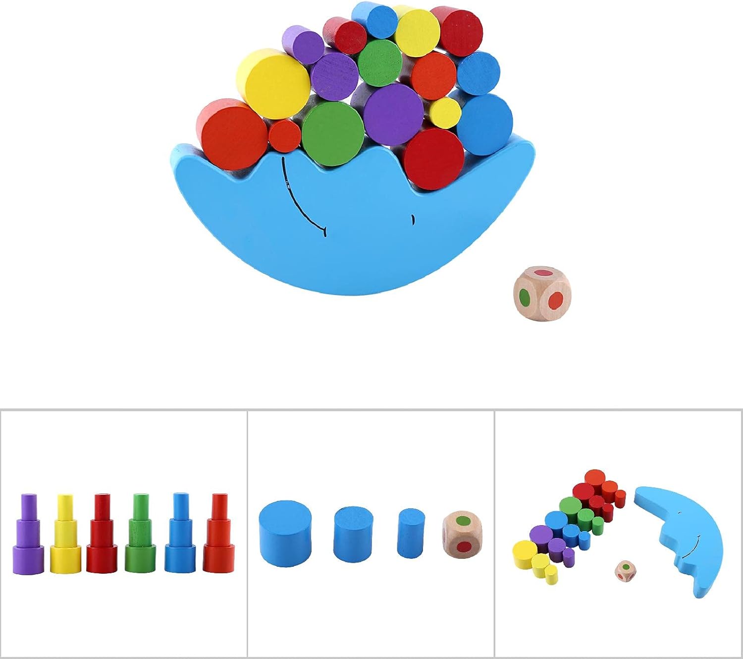 【Materiali sicuri】 I giocattoli per bambini sono realizzati in legno di alta qualità e dipinti con vernice ecologica, assicurando che siano sicuri per i tuoi piccoli da usare, dando ai genitori la pace. 【Colori versatili】 Questo set include 2 colori a blocchi a forma di luna opzionali, blu e giallo, dando scelte per bambini e consentendo il gioco creativo migliorando al contempo le loro preferenze di colore e individualità. 【Sviluppo dell'equilibrio】 Con un design unico di luna e cilindri, i blocchi per i più piccoli promuovono le capacità di equilibrio e coordinamento, rendendoli strumenti eccellenti per migliorare le capacità fisiche di tuo figlio divertendosi. 【Interazione sociale】 Giocare con gli amici che usano i giocattoli di apprendimento per i più piccoli aiutano a rafforzare le capacità verbali e le capacità comunicative di tuo figlio, promuovendo il lavoro di squadra e le capacità di socializzazione durante le date di gioco. 【Riconoscimento del colore】 I colori vibranti dei puzzle per i bambini 2-4 stimolano l'immaginazione e la creatività del bambino, aiutando il riconoscimento del colore e migliorando il loro sviluppo cognitivo complessivo durante il gioco.