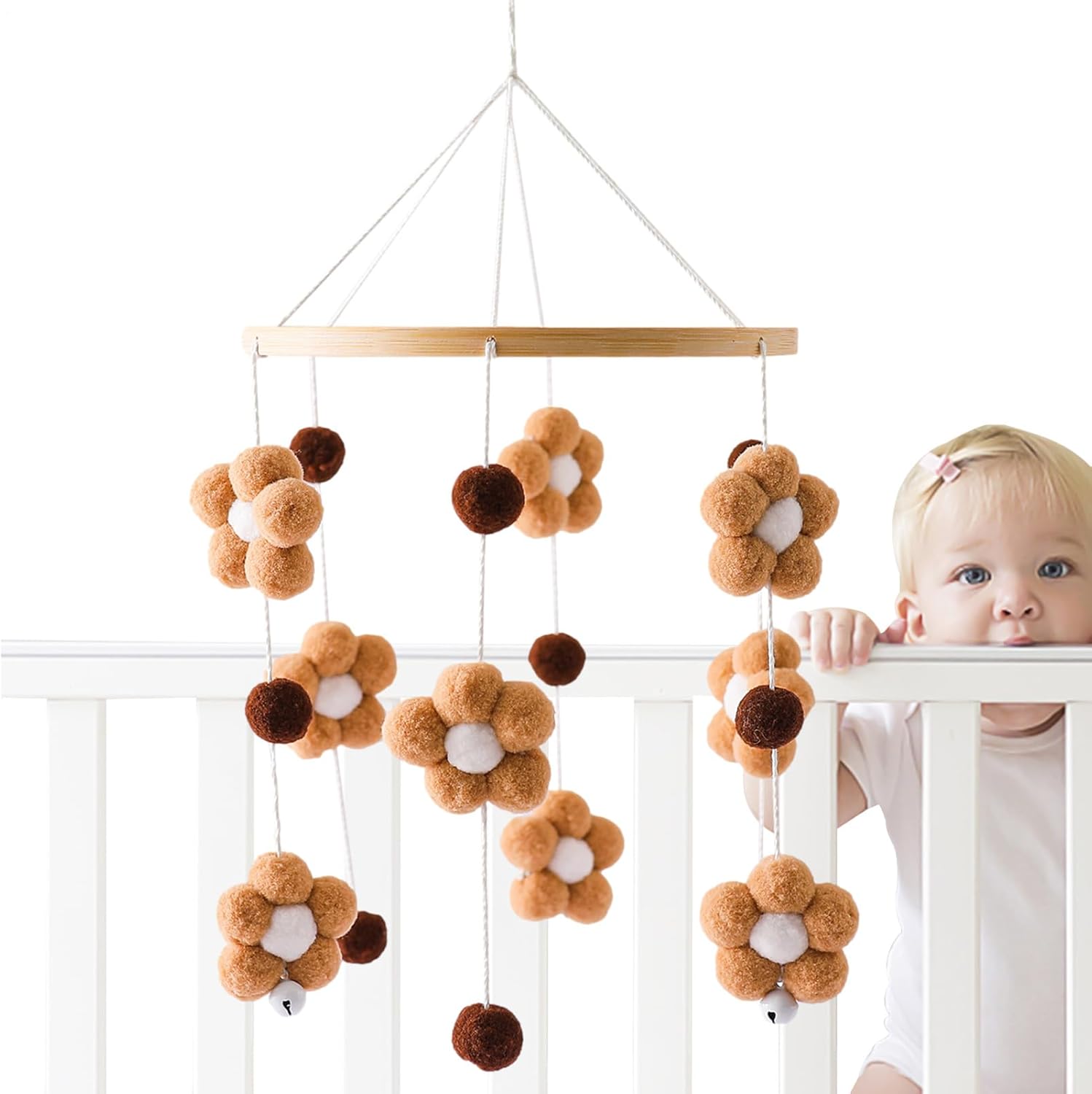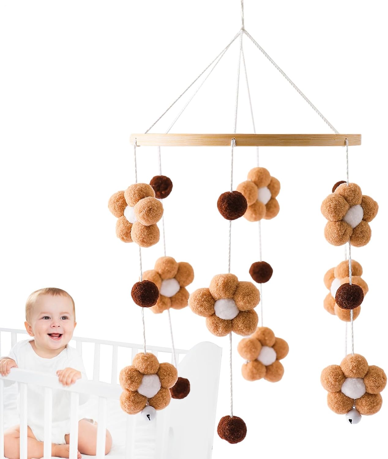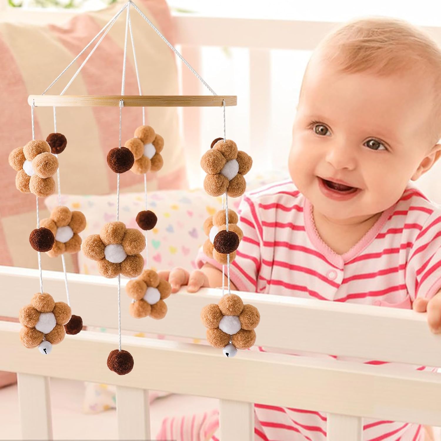 Tocco artistico: goditi la bellezza intricata del nostro cellulare per lettino fatto a mano, aggiungendo un tocco di calore alla tua stanza. Coinvolgi la presa del tuo bambino e assisti al suo sviluppo mentre ascolta il campanello del vento. Promuovi la scansione: questa culla mobile incoraggia il tuo bambino a esplorare fornendo stimoli colorati e attraenti. I fiori, le campane e le palline di pelliccia sono progettati per stimolare l'interesse e la curiosità del tuo piccolo bambino, promuovendo un senso di scoperta e osservazione. Ampiamente usato: questo piccolo e delicato cellulare della culla renderà il soggiorno, la camera da letto, la scuola materna e altri salotti belli Puoi sospenderlo sulla finestra o sul comodino per aggiungere divertimento alla tua vita. Catturerà e creerà un suono rilassante. Regalo perfetto: porta felicità e gioia ai genitori e ai neonati con questo adorabile lettino mobile. È un ottimo regalo per baby shower, compleanni, Natale e festa dei bambini, e può essere utilizzato come giocattolo o decorazione per la culla. Materiale di alta qualità: con l'uso di materiali naturali e sicuri da parte della nostra culla con cerchi lisci e palline di pelliccia, la sicurezza del tuo bambino è garantita. Goditi i colori e i suoni rilassanti e allo stesso tempo sono consapevoli dell'ambiente.