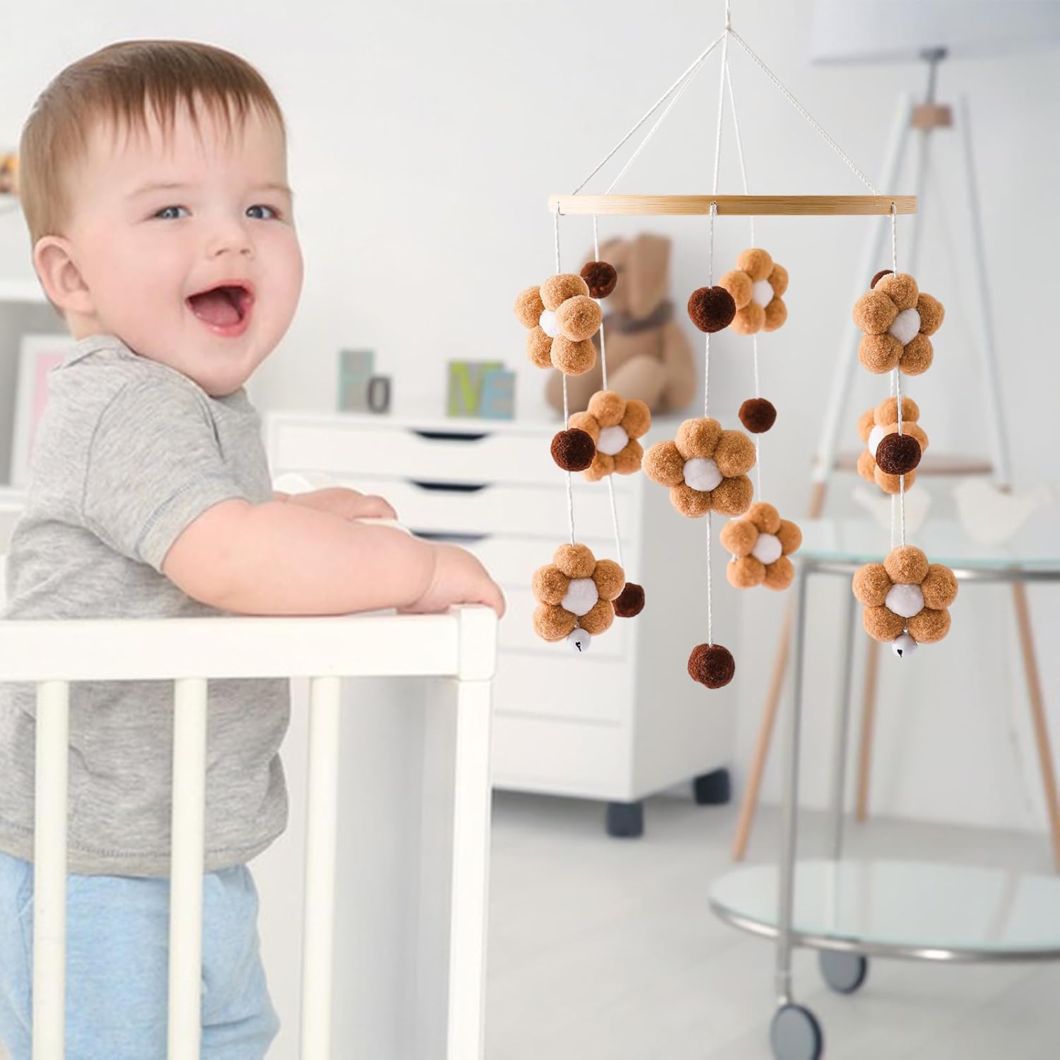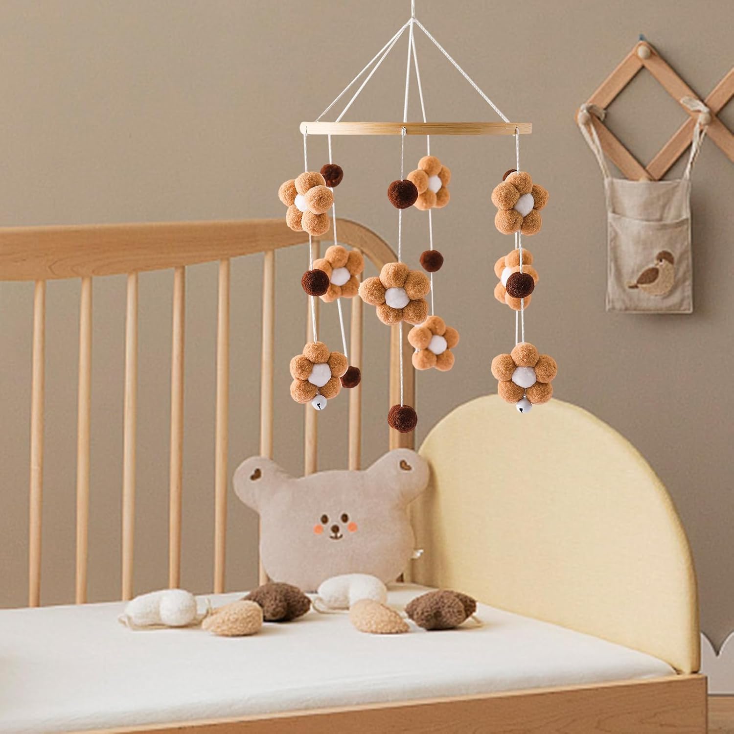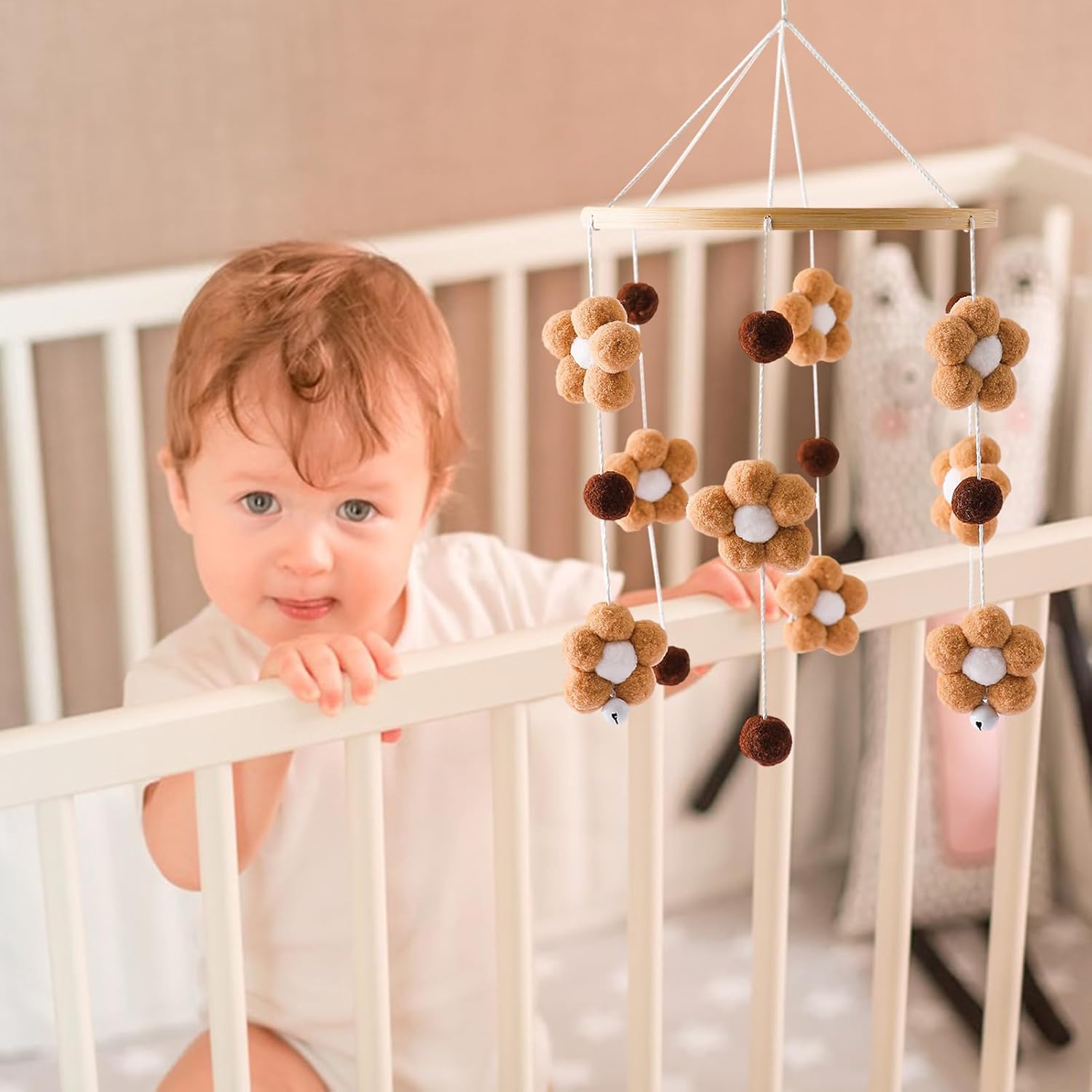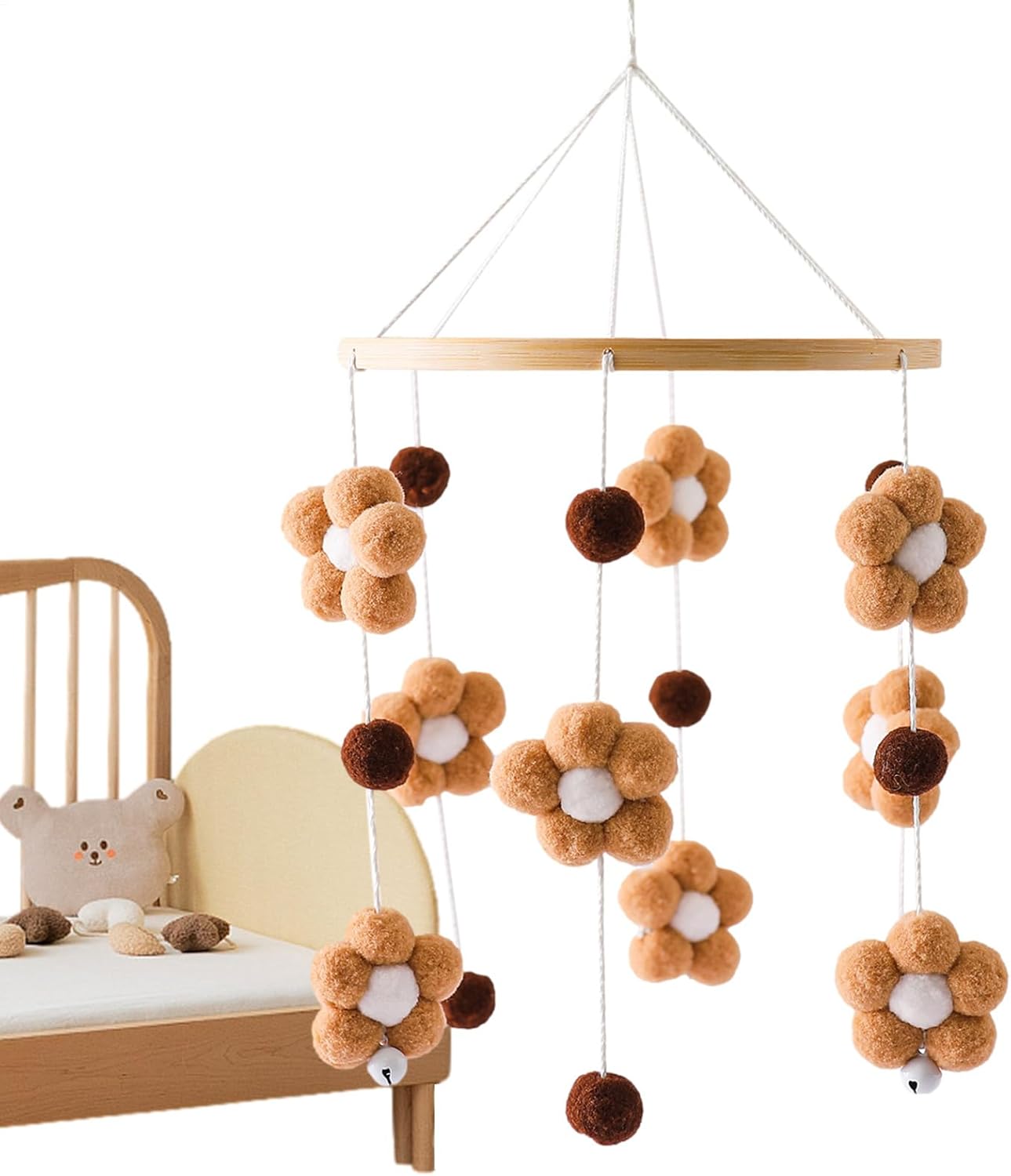 Tocco artistico: goditi la bellezza intricata del nostro cellulare per lettino fatto a mano, aggiungendo un tocco di calore alla tua stanza. Coinvolgi la presa del tuo bambino e assisti al suo sviluppo mentre ascolta il campanello del vento. Promuovi la scansione: questa culla mobile incoraggia il tuo bambino a esplorare fornendo stimoli colorati e attraenti. I fiori, le campane e le palline di pelliccia sono progettati per stimolare l'interesse e la curiosità del tuo piccolo bambino, promuovendo un senso di scoperta e osservazione. Ampiamente usato: questo piccolo e delicato cellulare della culla renderà il soggiorno, la camera da letto, la scuola materna e altri salotti belli Puoi sospenderlo sulla finestra o sul comodino per aggiungere divertimento alla tua vita. Catturerà e creerà un suono rilassante. Regalo perfetto: porta felicità e gioia ai genitori e ai neonati con questo adorabile lettino mobile. È un ottimo regalo per baby shower, compleanni, Natale e festa dei bambini, e può essere utilizzato come giocattolo o decorazione per la culla. Materiale di alta qualità: con l'uso di materiali naturali e sicuri da parte della nostra culla con cerchi lisci e palline di pelliccia, la sicurezza del tuo bambino è garantita. Goditi i colori e i suoni rilassanti e allo stesso tempo sono consapevoli dell'ambiente.