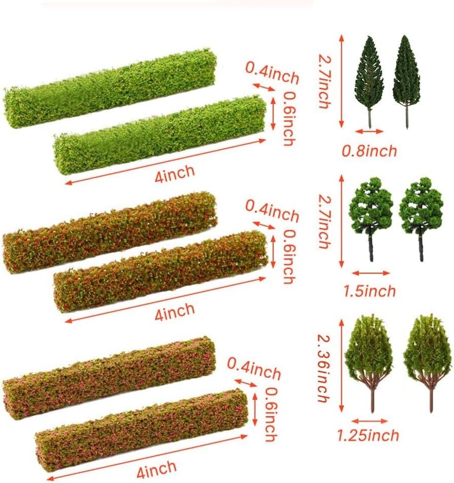 [9 strisce di arbusti in miniatura e 6 alberi modelli] Questo set include 9 strisce di arbusti in miniatura e 6 alberi modello misto, fornendo una soluzione completa per migliorare il tuo diorama o modello architettonico. Artigianato dettagliato: ogni albero è meticolosamente realizzato per offrire un aspetto realistico, rendendolo perfetto per esposizione o progetti creativi che richiedono effetti visivi sorprendenti. Dimensioni personalizzabili: taglia facilmente questi alberi per soddisfare le tue esigenze di design specifiche, si integrano perfettamente in qualsiasi layout paesaggistico. Materiale: realizzati in plastica robusta, questi alberi e arbusti in miniatura mantengono la loro forma e aspetto nel tempo, ideali per una manipolazione regolare e display duraturi. [PAESAGGIO CREATIVO] Ideale per giardini e decorazioni paesaggistiche, questo set ispira creatività, consentendo di creare scene accattivanti che migliorano qualsiasi ambiente.