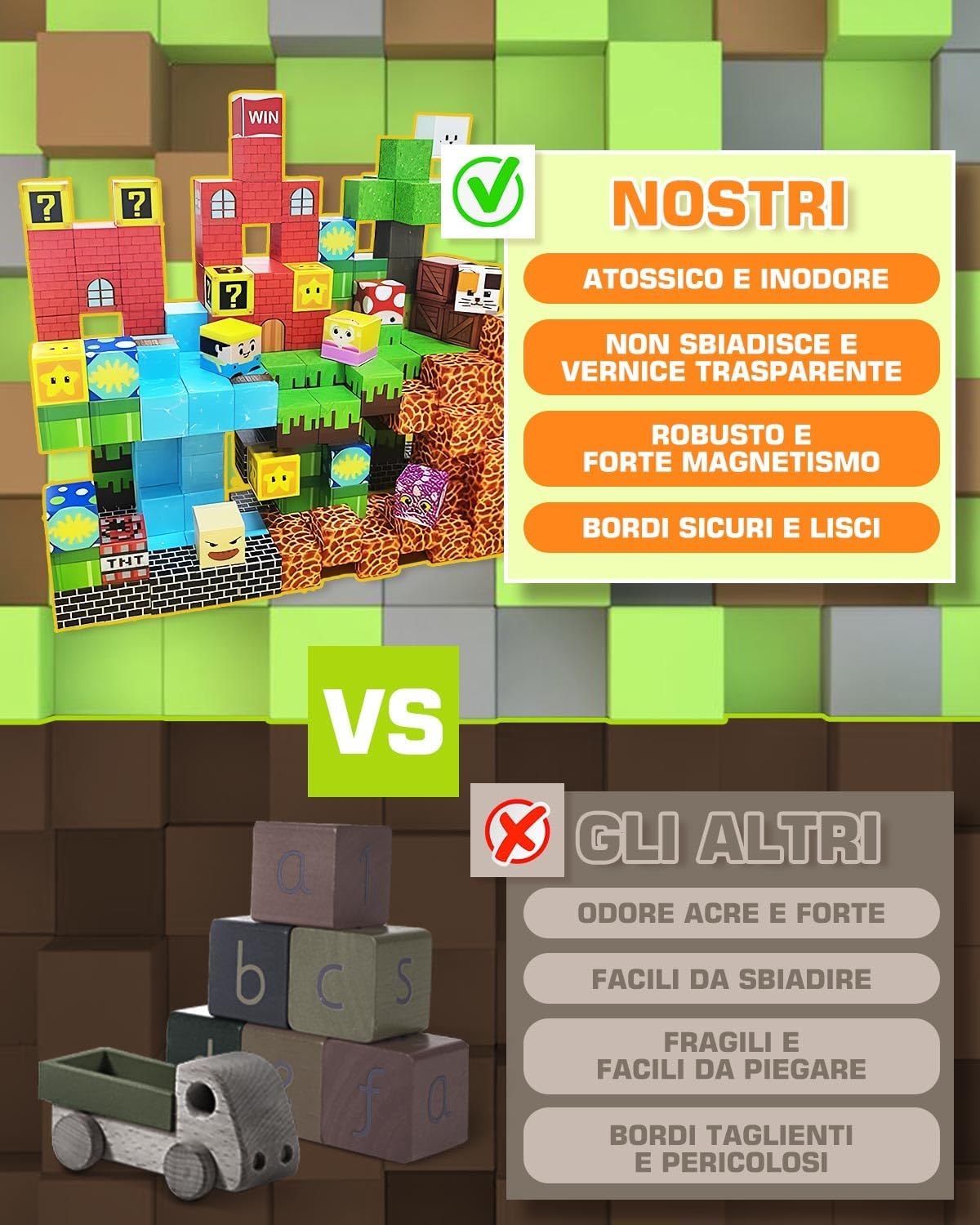 🧩 Libera la Creatività STEM: Con 150 blocchi magnetici in 20 colori vivaci, i bambini possono costruire castelli, animali o razzi spaziali in 2D e 3D! Ogni gioco stimola la curiosità scientifica e sviluppa competenze STEM — scienza, tecnologia, ingegneria e matematica — favorendo pensiero logico e immaginazione senza limiti. 🔒 Sicurezza e Durata Garantite: Realizzati in plastica ABS di qualità alimentare con vernice a base d’acqua, i blocchi magnetici sono atossici e resistenti. I bordi arrotondati proteggono le mani dei più piccoli, mentre la superficie liscia e lucida assicura un’esperienza di gioco piacevole e sicura per bambini dai 3 anni in su. 🧲 Magneti Potenti per Costruzioni Stabili: Ogni blocco contiene 8 magneti super forti che garantiscono una connessione salda e stabile. Addio torri che crollano! Il design sigillato mantiene i magneti fissi all’interno, offrendo ore di costruzioni solide e spettacolari senza rischio di cadute. 👨👩👧 Gioco Educativo & Tempo in Famiglia: Costruire insieme rafforza il legame tra genitori e figli. I bambini migliorano coordinazione mano-occhio, pazienza e capacità di problem solving mentre i genitori partecipano al divertimento creativo — un’esperienza di apprendimento condivisa e senza schermi! 🎁 Regalo Perfetto per Piccoli Costruttori: Il set di costruzioni magnetiche da 150 pezzi è il regalo ideale per compleanni, Natale o occasioni speciali. Un giocattolo educativo e coinvolgente che unisce divertimento e apprendimento, perfetto per bambini e bambine dai 3 ai 10 anni.