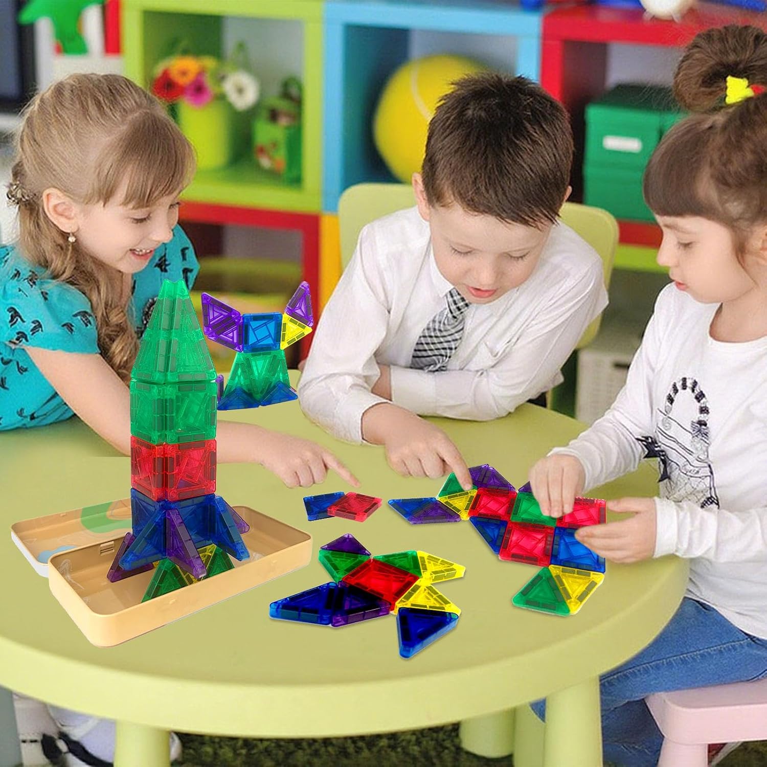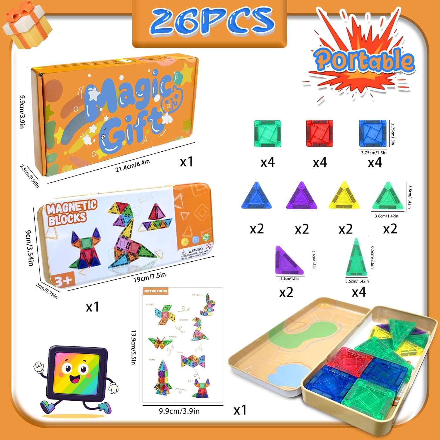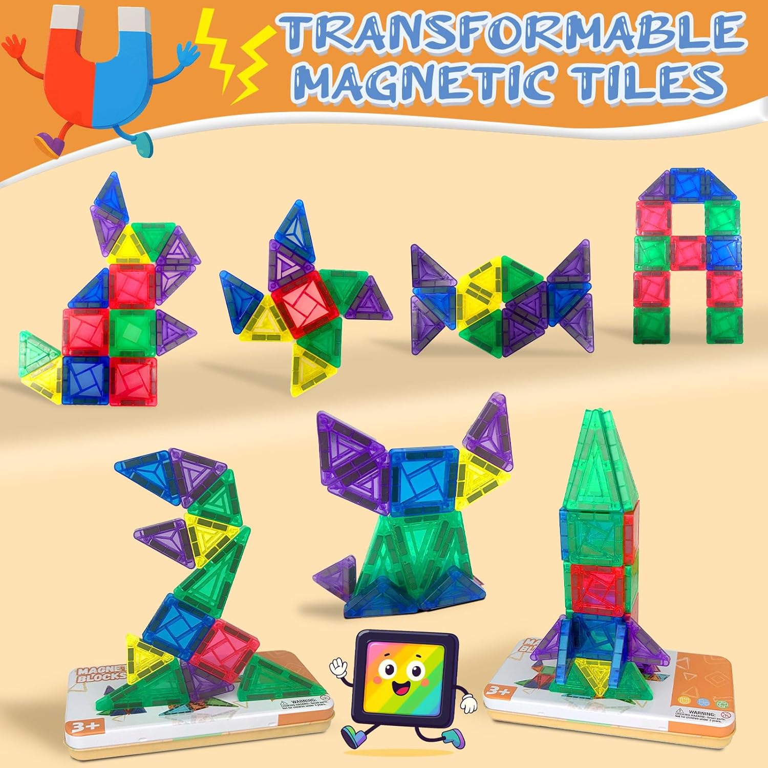 Building Colorati 3D: La nostra costruzioni magnetiche per bambini ha una varietà di colori e forme. I bambini possono creare una forma piatta 2D o costruire una geometria tridimensionale 3D. La costruzioni magnetiche può essere trasformata in castelli, dinosauri, razzi, caramelle e altre forme, che possono effettivamente esercitare l'intelligenza dei bambini Buon Compagno di Viaggio: Che si tratti di prendere un aereo, un treno o un'auto, giochi magnetici per bambini è un compagno indispensabile per i pranzo di viaggi e ristoranti di famiglia, permettendo ai bambini di sviluppare pienamente la loro creatività mentre viaggiano e giocano e sperimentano il divertimento dell'apprendimento Conveniente da Trasportare: La nostra magnetic tiles viene fornita con una scatola di ferro liscia che può facilmente adattarsi a una tasca per borse o zaino. Tutto blocchi magnetici può essere posizionato ordinatamente nella scatola, il che è molto comodo da trasportare Potente Design Magnetico: Piastrelle magnetiche bambini ha una forte forza magnetica e ha bordi e angoli arrotondati per proteggere le mani del bambino dai danni Adatto ai Regali:Il colore traslucido di magnetic building blocks può presentare ombre colorate al sole, rendendolo molto adatto come regalo giocattolo per i bambini
