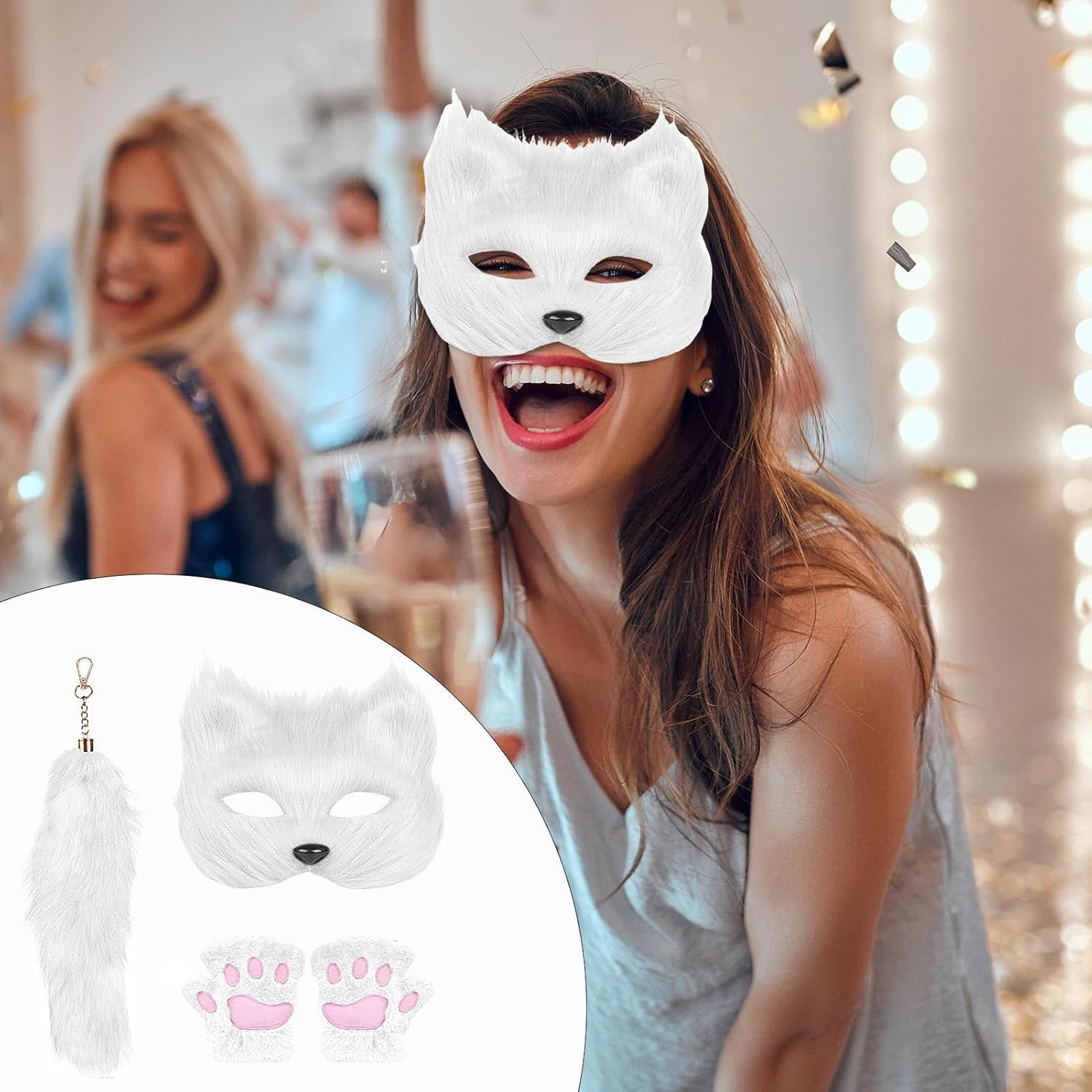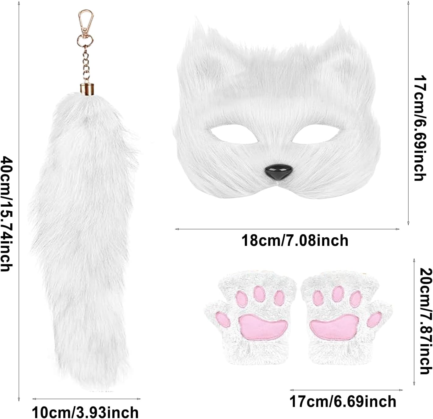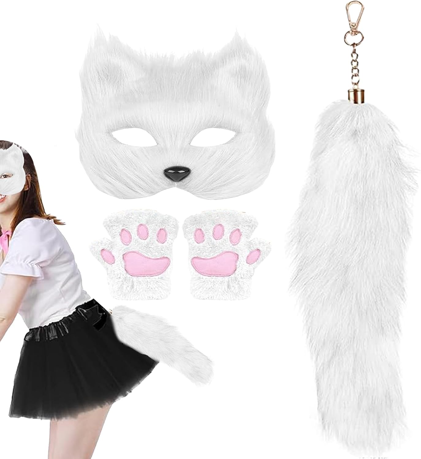 Costume Animale | Set Di Maschere Halloween | Accessori Decorativi per Cosplay Guanti con Zampe Maschera Coda per Carnevale Halloween