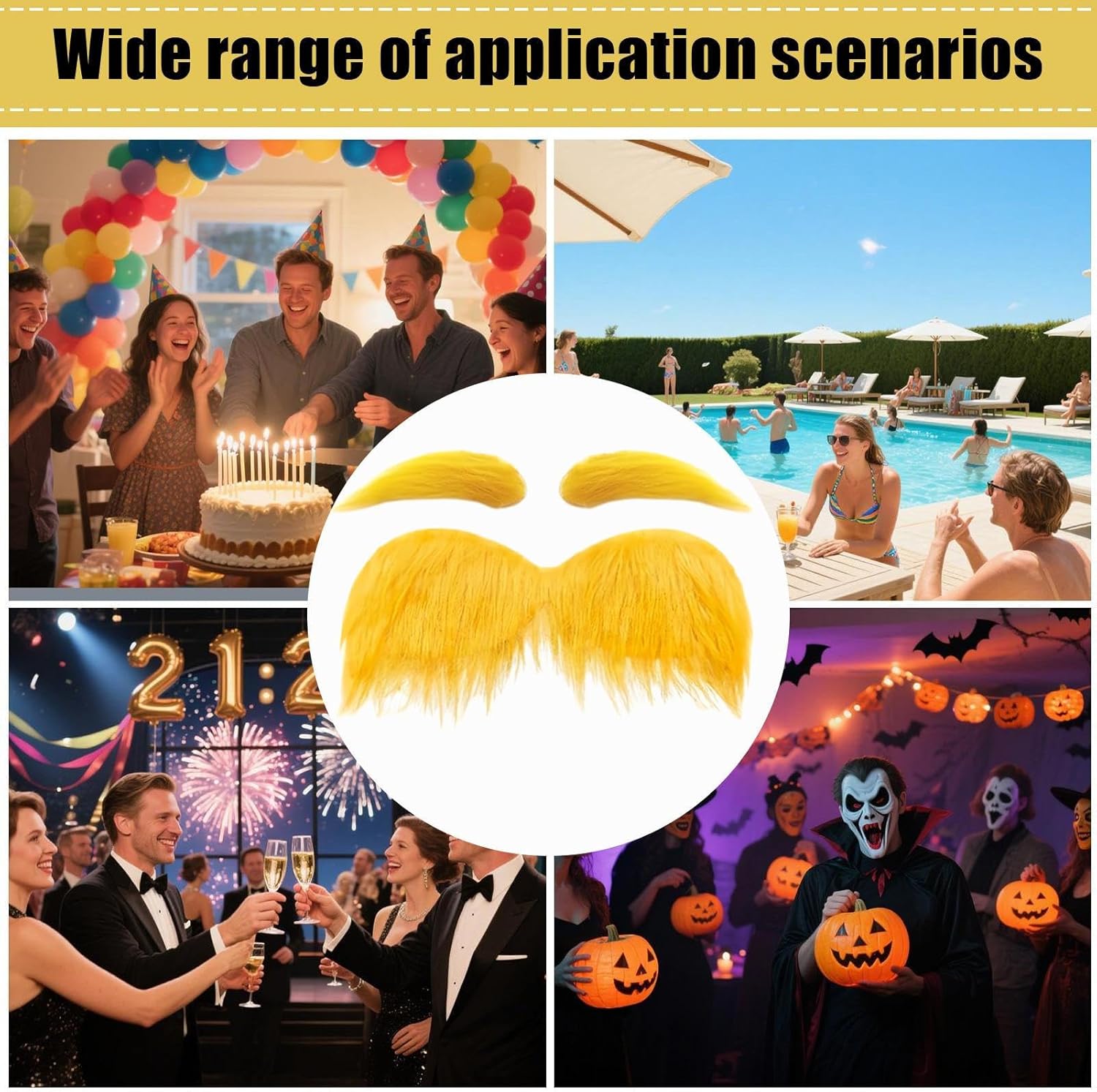 Design facile da applicare: baffi e sopracciglia gialli forniscono un attacco rapido senza attrezzi per un facile utilizzo, migliorando la comodità con la loro vestibilità sul viso con retro adesivo e il design che li rende ideali per festival, servizi fotografici o attività di gioco di ruolo improvvisate Versatile Cosplay Fit: Yellow Mustache combina un design realistico della trama dei capelli con una lavorazione meticolosa, fornendo a chi lo indossa la possibilità di adottare senza soluzione di continuità un'estetica audace e retrò adatta per cosplay, atti teatrali ed eventi a tema, elevando la loro rappresentazione generale del personaggio senza sforzo Ampia gamma di usi: le sopracciglia gialle e i baffi servono come accessorio per aumentare il fidanzamento con un vivace contorno delle sopracciglia, adatto per uso multi-scenario come foto di carnevale di famiglia, aggiungendo fascino unisex giallo brillante per migliorare il divertimento e la creatività in riunioni sociali ed eventi a tema Comodo accessorio per baffi: questi baffi sono realizzati con materiali compatibili con la pelle sensibile che offrono un'esperienza di usura senza sensazioni estranee, rendendolo ideale per ore di utilizzo durante riunioni o spettacoli a tema mantenendo un comfort duraturo Accessorio festivo salvaspazio: caratterizzato da una struttura compatta e pieghevole, questo accessorio per baffi è adatto per risparmiare spazio e garantire un rapido utilizzo durante le occasioni festive; i baffi del costume di Halloween si distinguono come una scelta pratica ma artistica per aggiungere divertimento e specialità alle tue celebrazioni