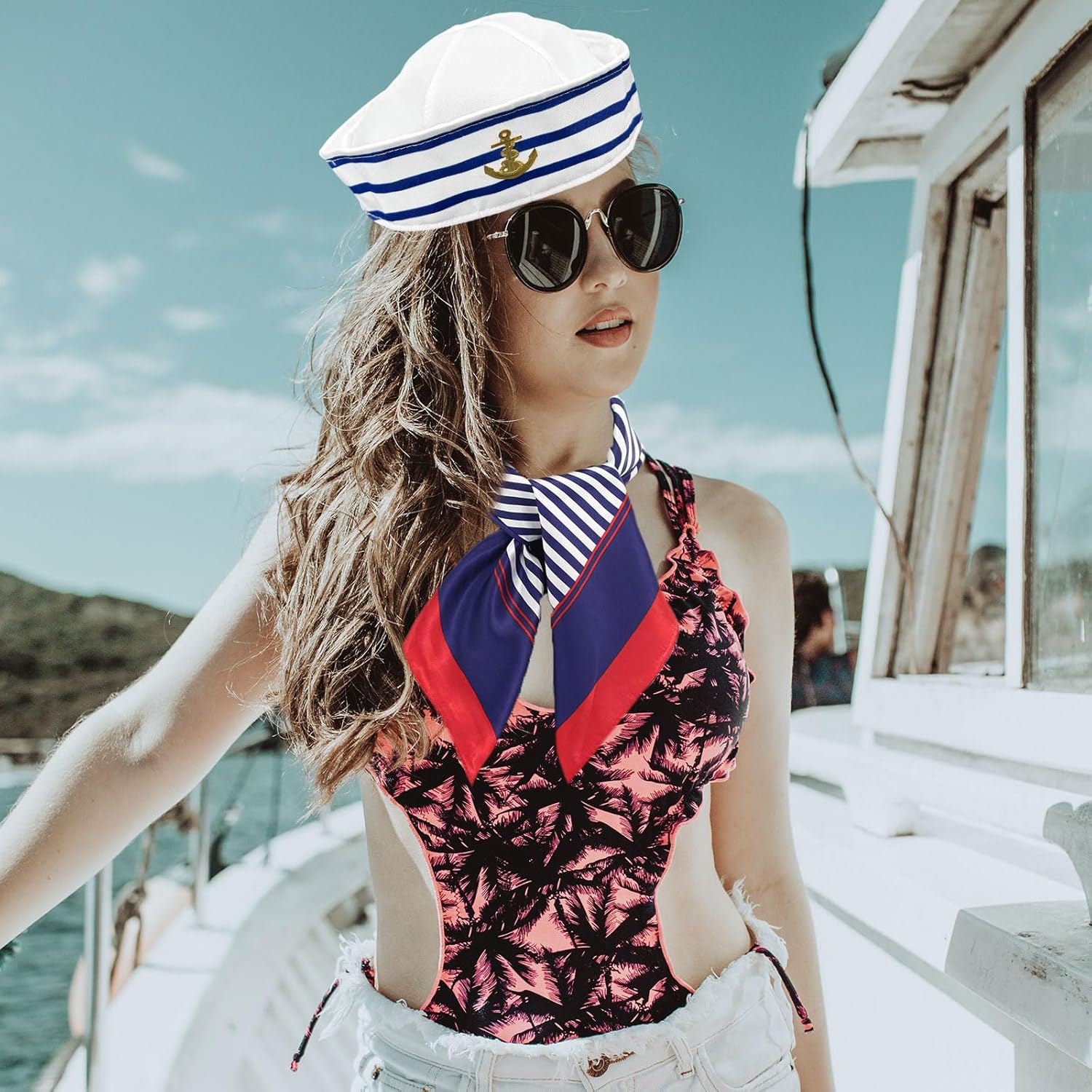 Descrizione: Materiale: poliestere. Dimensioni: cappello marinaio: altezza 7,5 cm, circonferenza 56 cm; sciarpa: 50 x 50 cm. Colore: cappello marinaio: blu e bianco strisce; sciarpa: rosso bordo blu bar La confezione include: 1 cappello da marinaio+1 sciarpa Nota: 1. A causa della differenza di luce e schermo, il colore dell'articolo potrebbe essere leggermente diverso dall'immagine. 2. A causa della misurazione manuale, si prega di consentire una differenza di 1-2 cm.
