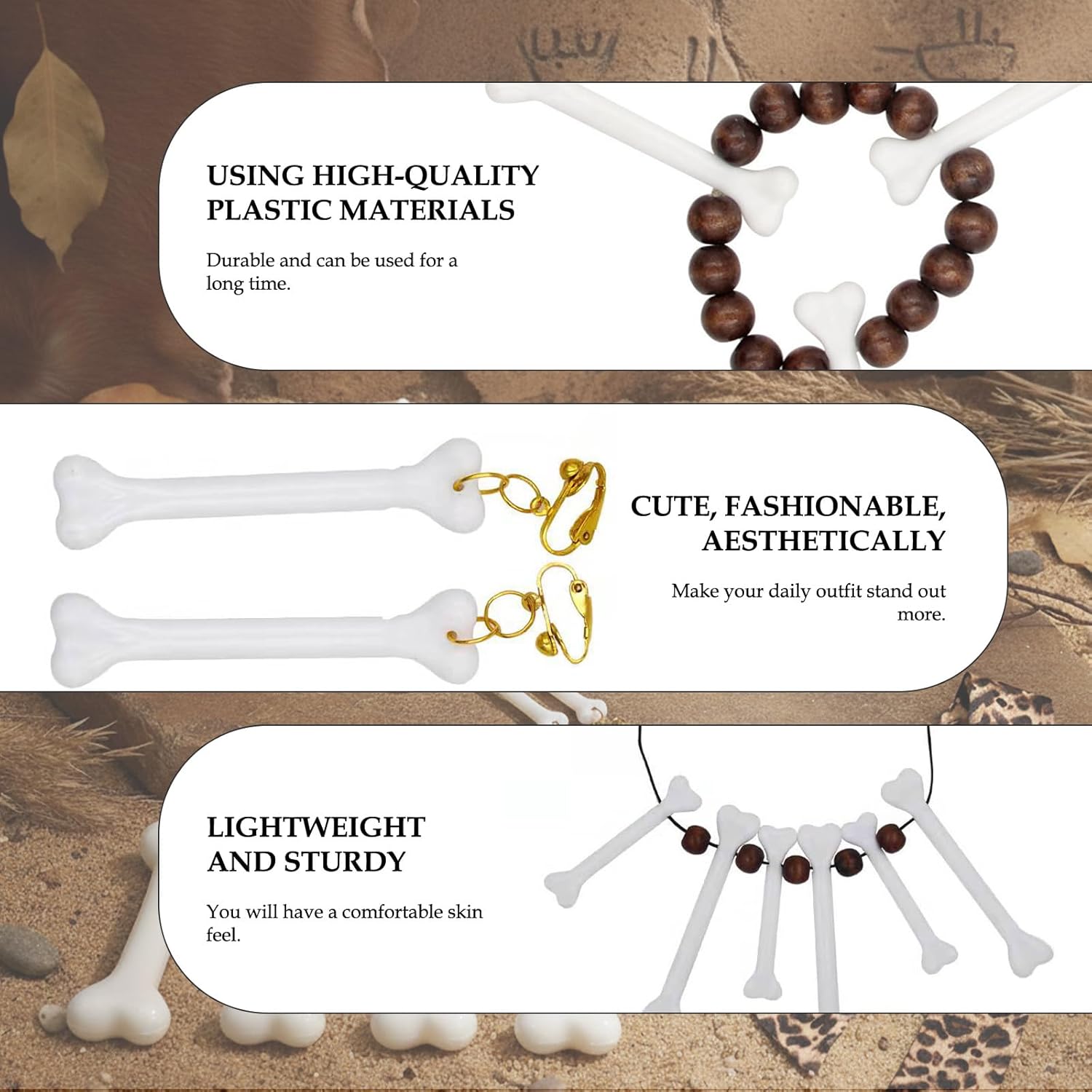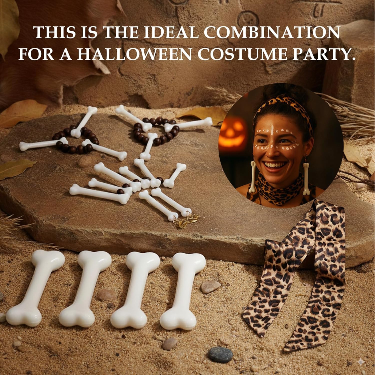 Set completo e pratico: Questo costume cavernicolo bambino include 12 accessori assortiti: 4 clip per capelli a forma di osso, una collana osso, un paio di orecchini osso, un paio di orecchini zanna, una sciarpa leopardata e 2 braccialetti osso: un kit ideale per travestimenti di Halloween, feste a tema preistorico e spettacoli scolastici, permettendo di creare un look realistico e originale che conquisterà tutti gli invitati e renderà speciale ogni occasione. Materiali resistenti e leggeri: Le clip per capelli e gli accessori di questo costume cavernicolo sono realizzati in plastica di qualità, robusta e durevole nel tempo, con una superficie liscia che garantisce comfort e sicurezza durante l’uso: ogni dettaglio è studiato per offrire un’esperienza d’uso piacevole, evitando fastidi alla pelle anche dopo molte ore di divertimento, così da garantire libertà di movimento ai più piccoli. Design accattivante e realistico: Le decorazioni bianche a forma di osso e le zanne riproducono fedelmente lo stile primitivo, aggiungendo un tocco di originalità al costume cavernicolo bambino: il motivo maculato della sciarpa leopardata esalta l’effetto selvaggio e preistorico, regalando un look unico e riconoscibile che renderà indimenticabile ogni festa a tema e ogni evento di travestimento. Perfetto per molteplici occasioni: Questo costume cavernicolo bambino è perfetto per Halloween, carnevale, feste in maschera, compleanni, spettacoli teatrali scolastici, serate a tema e attività di gioco di ruolo: grazie alla sua versatilità potrai sfruttare il set in tante occasioni diverse, stimolando la creatività e l’immaginazione dei bambini e rendendo ogni momento più divertente e coinvolgente. Facile da indossare e combinare: Gli accessori di questo set cavernicolo si applicano con facilità ai capelli o al costume, senza bisogno di strumenti aggiuntivi: ogni pezzo è leggero e facile da trasportare, ideale per essere combinato con altri costumi o trucchi per un effetto ancora più sorprendente, permettendo ai bambini di trasformarsi in piccoli uomini delle caverne con pochi semplici gesti.