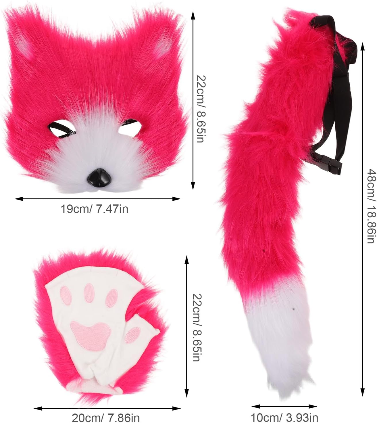 Descrizione prodotto Elenco dei pacchetti 1 maschera da festa, 1 coda, 1 paio di Caratteristiche -Materiale: costume da animale in tessuto Maschera di volpe: i materiali morbidi ed ergonomici offrono un comfort ottimale, permettendoti di indossarlo a lungo in occasione di eventi o feste. - Dimensioni: 22,00 x 19,00 x 6,00 cm / 8,65 x 7,47 x 2,36 pollici (code di animali) - Taglia universale per adulti: progettato per adattarsi alla maggior parte degli adulti, questo set garantisce un facile vestirsi per persone di tutte le taglie. Maschera di Halloween - Dimensioni: 48 x 10 x 10 cm / 18,86 x 3,93 x 3,93 pollici (coda di animale per cosplay) -Creativo: abbinalo a diversi abiti per creare un costume da volpe unico che si distinguerà in qualsiasi evento o riunione. Kit maschera volpe - Dimensioni: 22 x 20 x 5 cm / 8,65 x 7,86 x 1,97 pollici (Cosplay) Accessori pratici per i viaggi: leggero e compatto, questo set è facile da portare con te, rendendolo ideale per eventi in costume lontano da casa. Maschera di pelliccia - Informazioni sul prodotto: Set costume di volpe - Colore: Maschera e coda di pelliccia di volpe rosa Descrizione prodotto Costume di volpe per cosplay. Questo costume da volpe è versatile e facile da usare, rendendolo adatto a varie occasioni. Che tu stia partecipando a un carnevale, organizzando una festa a tema o interpretando un gioco di ruolo, questo costume ti farà risaltare con il suo design unico. Basta abbinare la maschera, la coda e i capelli al tuo outfit per creare un look completo. Avviso di sicurezza 1