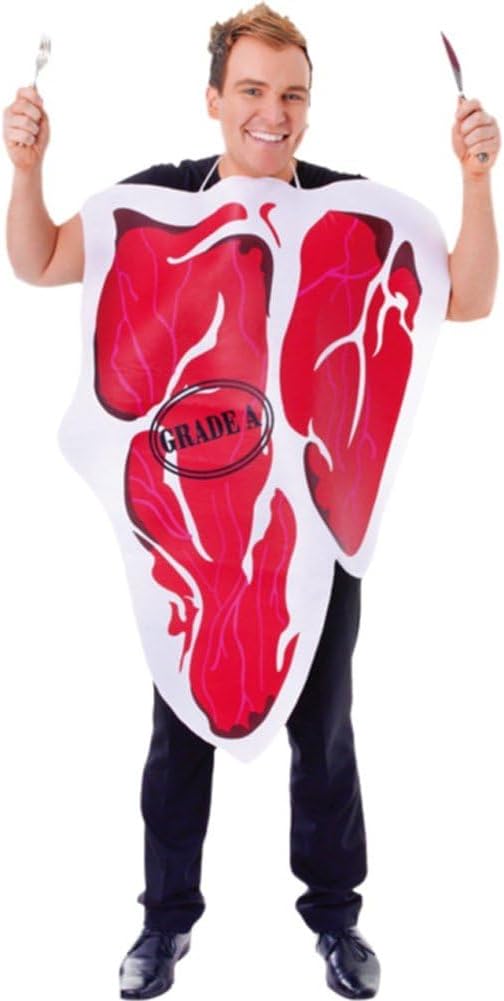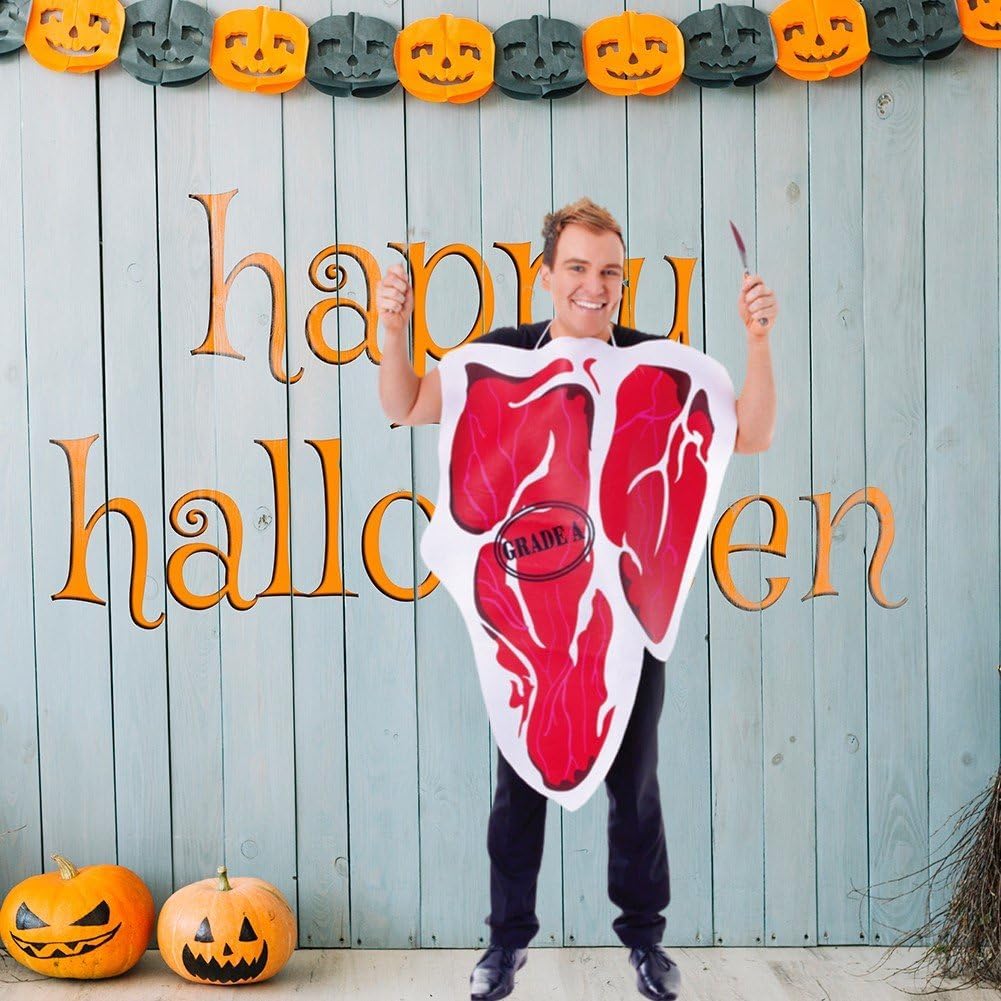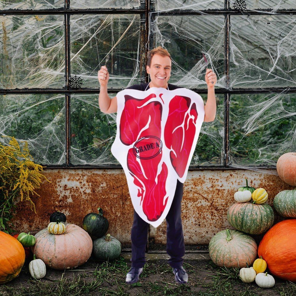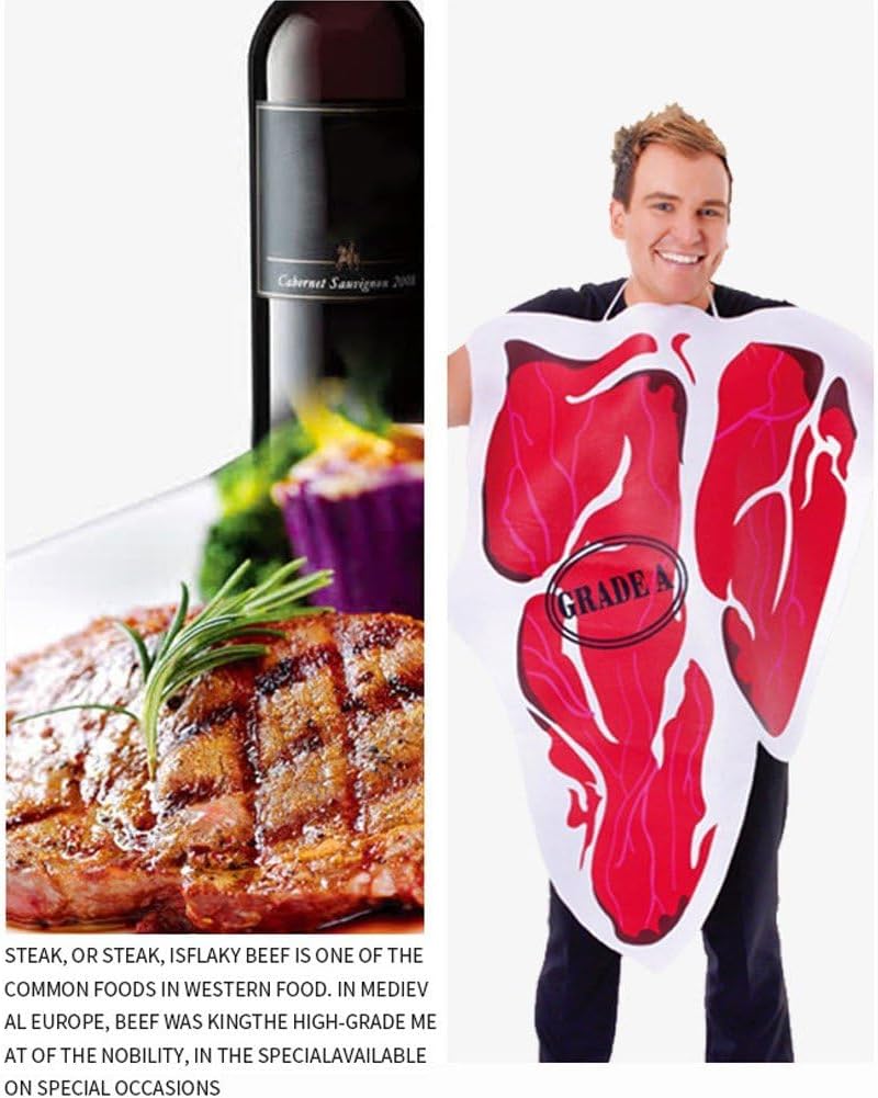 IL COSTUME COMPRENDE: 1*abito da bistecca, taglia unica per la maggior parte delle persone CURA DELL'ABBIGLIAMENTO: lavare solo a mano, per mantenere la forma dell'indumento e prolungarne la durata. SCENARIO DI UTILIZZO: Adatto per Halloween, cene di famiglia, spettacoli e altro, questo outfit ti farà divertire molto. DESIGN DIVERTENTE: questo è un vestito delizioso e incredibilmente colorato, che tu stia andando ad Halloween, a uno spettacolo o a qualsiasi altro evento che richieda un costume da bistecca, sarai la persona eccezionale. QUALITÀ: i vestiti sono realizzati in tessuto poliestere di alta qualità, il tessuto della fodera è morbido, la pelle è comoda ed elastica, la tintura è ecologica, il che garantisce che i colori brillanti favoriscano anche la protezione dell'ambiente.