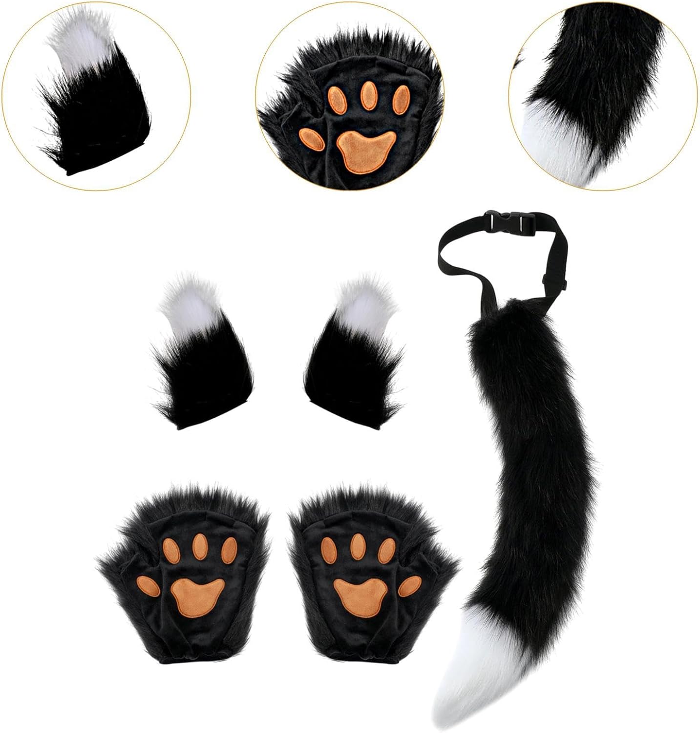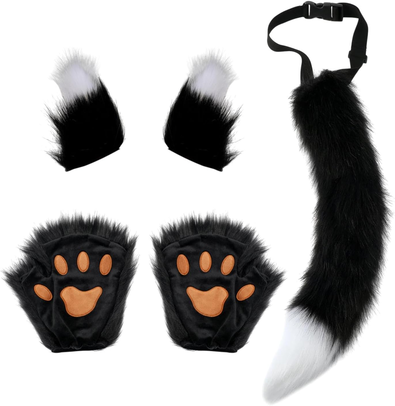 La confezione include: il set viene fornito con 1 coda, 1 paio di orecchie e 1 paio di guanti Materiale di qualità: realizzato in peluche e pelle, morbido al tatto ma abbastanza robusto per un uso a lungo termine Adatto per vari eventi: ideale per giochi di ruolo, feste in costume, feste di Halloween o altri eventi divertenti per aggiungere eccitazione e divertimento Dimensioni del prodotto: la coda misura 65 cm x 10 cm, rendendola un'aggiunta accattivante al tuo outfit cosplay. Adatto per la maggior parte degli adulti Accessorio versatile per cosplay: questo set di costumi da lolita artificiali con orecchie, coda e guanti di Halloween è un accessorio comune per le convenzioni cosplay. Aggiunge un'aura vivace e carina al tuo personaggio, ideale per giochi di ruolo come gatti, volpi