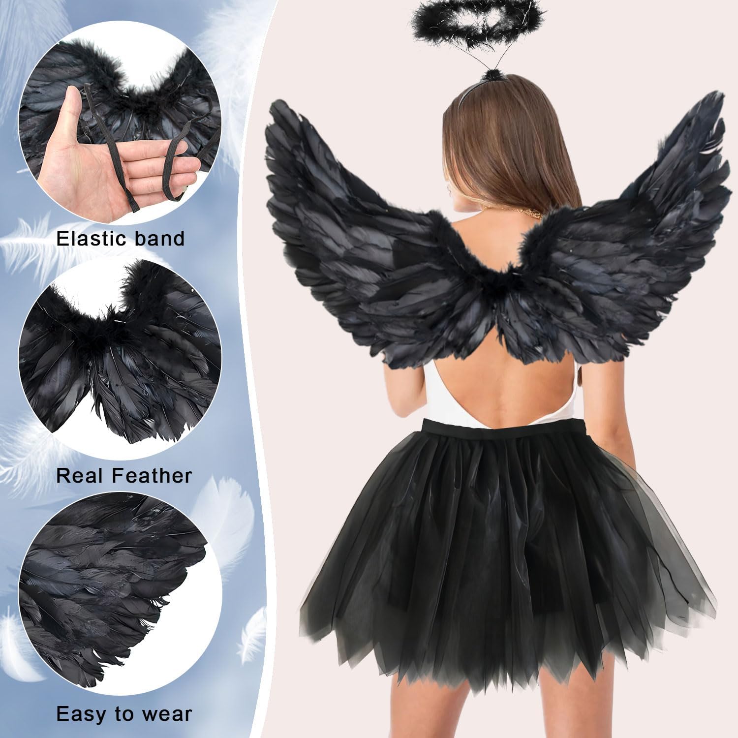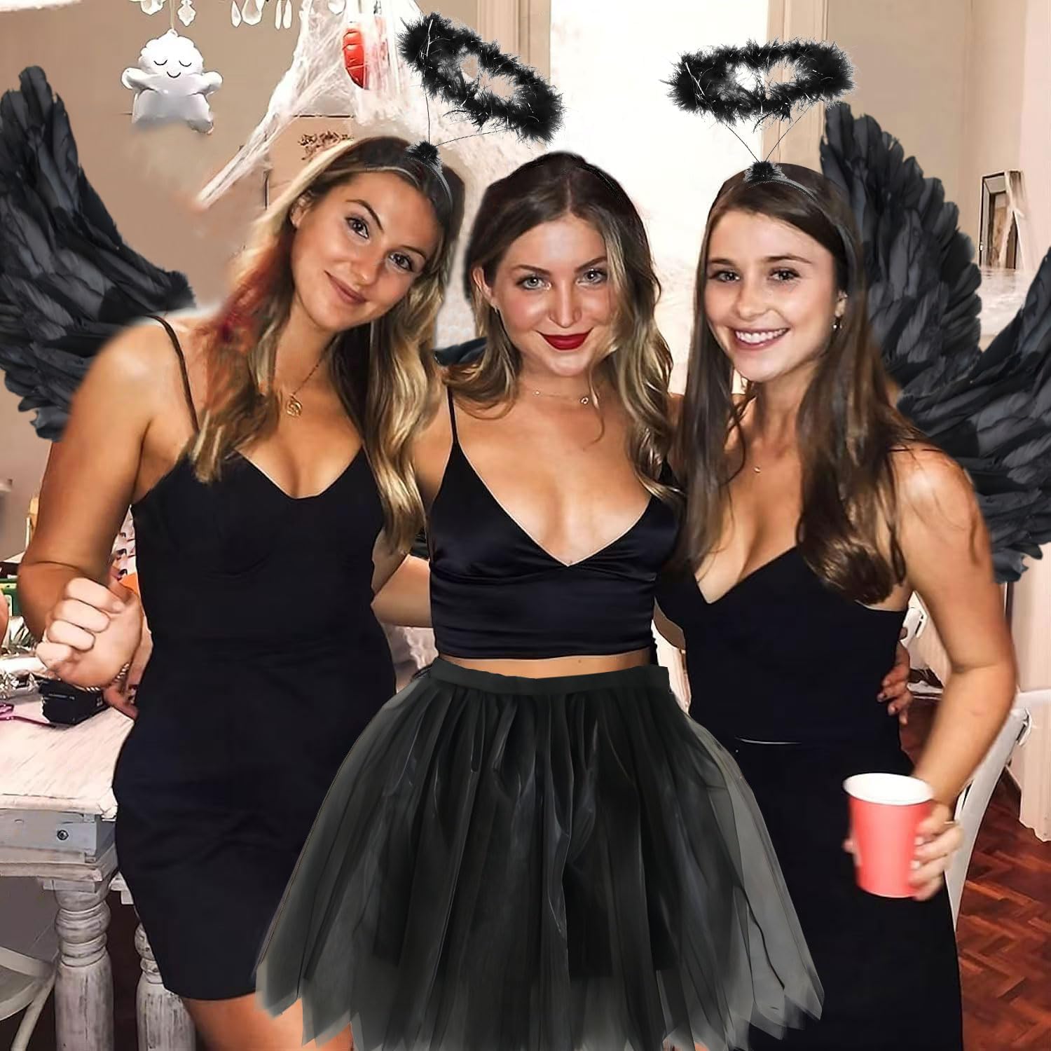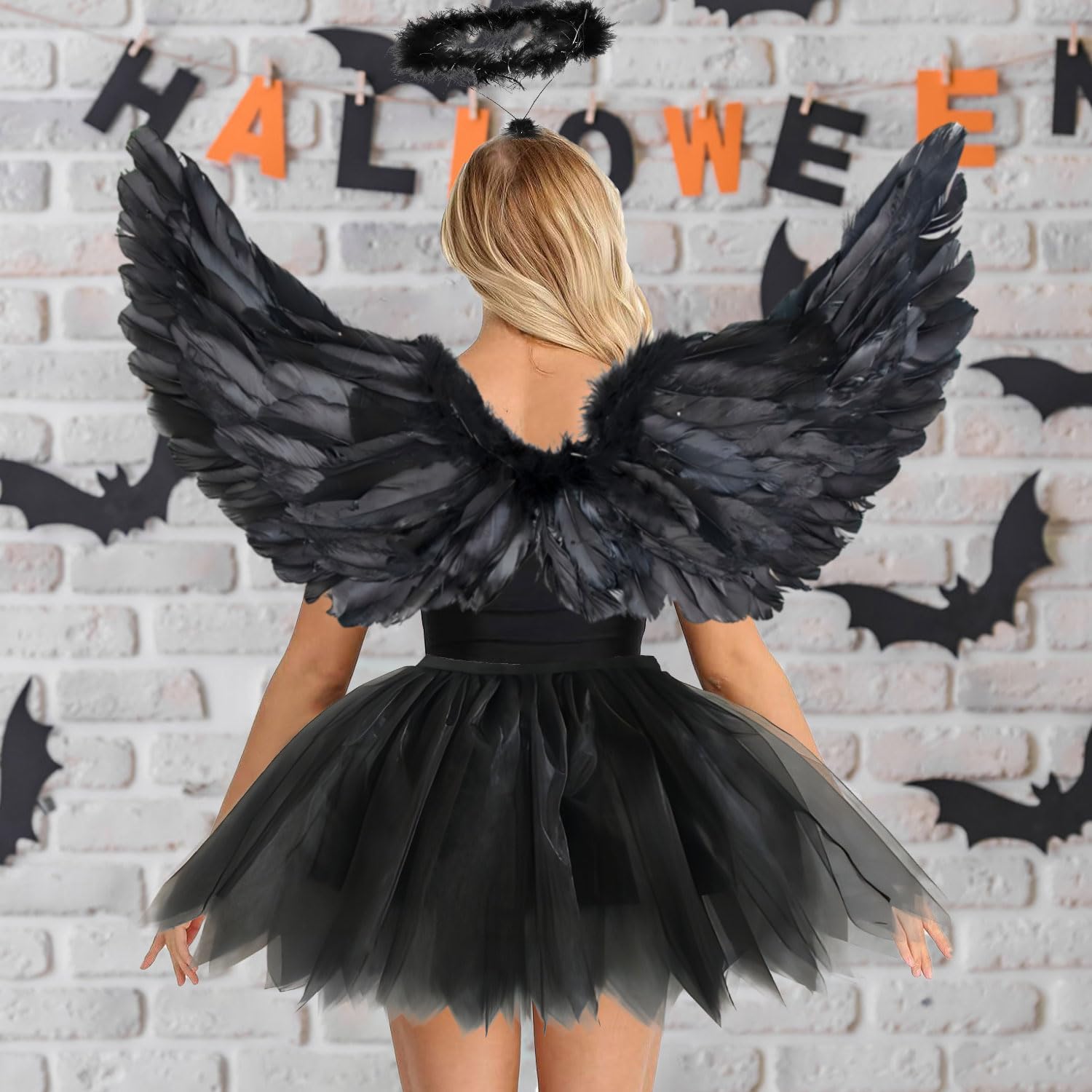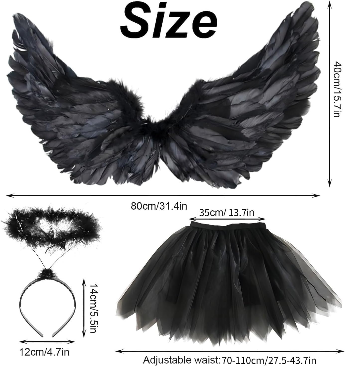 Ottimo per feste in costumi e feste a tema: ali d'angelo e alone, ideale per costumi e feste a tema, costumi di Halloween, feste natalizie, giochi scolastici, servizi fotografici o per vestirsi. Per Halloween, Natale e altre feste da indossare, ma anche per le prestazioni palcoscenico. Sono state prese in considerazione anche gonne tutur: la gonna in tulle è adatta per una circonferenza della vita di 70-100 cm. Morbida fodera e sottogonna con strati muti e in stile irregolare, ottimo servizio per il vostro carnevale, Halloween, feste di angelo Facile da indossare: le ali d'angelo sono progettate con elastico regolabile, che è facile da vestire e comodo per un lungo periodo di tempo. Spallacci elastici, ali pieghevoli al centro permettono di indossare due modi diversi, più facile e comodo per trasportare le ali del costume. 【Costume da angelo super versatile in 3 pezzi】 Costume da angelo nero con ali d'angelo, combinalo con una semplice maglietta/corsetto e sarai l'angelo più brillante per Halloween, carnevale o una festa a tema angelo 【Regalo di sorpresa】-Queste ali d'angelo sono un regalo di benvenuto, perfette per festeggiare vacanze, compleanni per ragazze, saranno sorpresi di ricevere questo regalo, vestito per le prossime vacanze e feste. Datele la sorpresa più inaspettata.