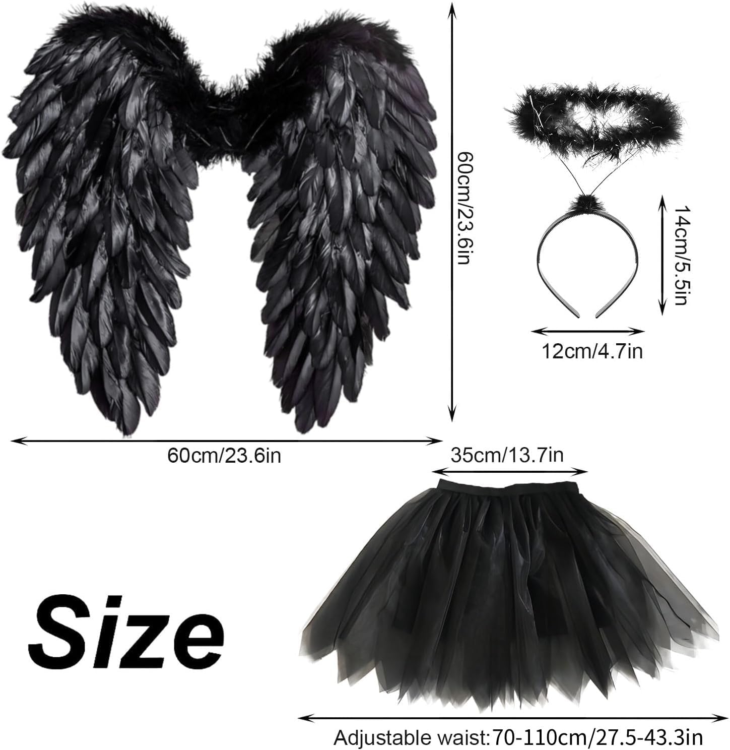 Costume da angelo nero per adulti, 3 pezzi, da donna, 70-110 cm, ali d'angelo, da donna, ali d'angelo, per adulti, costume da diavolo da donna, gonna tutù, ali d'angelo per bambini Sono state prese in considerazione anche gonne tutur: la gonna in tulle è adatta per una circonferenza della vita di 70-110 cm. Morbida fodera e sottogonna con strati muti e in stile irregolare, ottimo servizio per il vostro carnevale, Halloween, feste di angelo Facile da indossare: le ali d'angelo sono progettate con elastico regolabile, che è facile da vestire e comodo per un lungo periodo di tempo. Spallacci elastici, ali pieghevoli al centro permettono di indossare due modi diversi, più facile e comodo per trasportare le ali del costume. 【Costume da angelo super versatile in 3 pezzi】 Costume da angelo nero con ali d'angelo, combinalo con una semplice maglietta/corsetto e sarai l'angelo più brillante per Halloween, carnevale o una festa a tema angelo 【Regalo di sorpresa】-Queste ali d'angelo sono un regalo di benvenuto, perfette per festeggiare vacanze, compleanni per ragazze, saranno sorpresi di ricevere questo regalo, vestito per le prossime vacanze e feste. Datele la sorpresa più inaspettata.