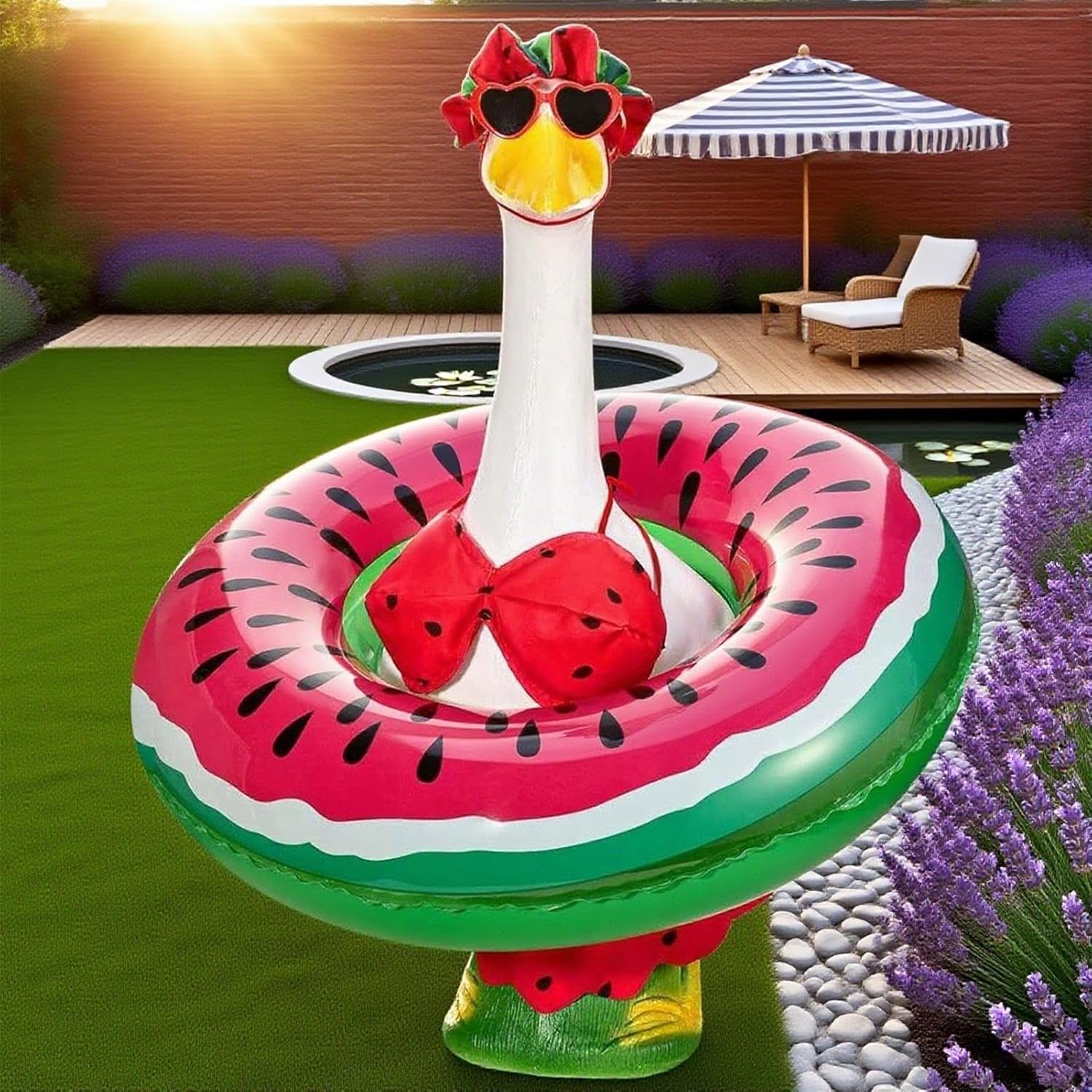 Design durevole comfort ottimale: Strato impermeabile e struttura mantieni-forma uniscono resistenza ed eleganza, per decorare terrazzi. 4. Pulizia Senza Sforzo: Ideato per una manutenzione agevole, questo costume riutilizzabile vanta resistenza scolorimento, proprietà di asciugatura veloce e stampe indelebili per preservarne l'attrattiva lavaggio dopo lavaggio. Impatto Visivo Vivace: Pattern ispirato all'anguria e tocchi occhiali vintage offrono un tema estivo dinamico, ideale per esaltare decorazioni da giardino con anelli piscina sfumati e evocare atmosfere da vacanza. Tocco Festoso: Migliora l'arredo esterno con un'atmosfera gioiosa durante le riunioni grazie a questa opzione regalo giocosa perfetta per chi ama decorazioni per esterni festive e allegre Vestibilità e Rimozione Semplici: Il design a chiusura elastica facilita l'uso quotidiano, offrendo una vestibilità rapida e facile per statue animali da 58 cm, assicurando una posizione stabile con un approccio intuitivo.